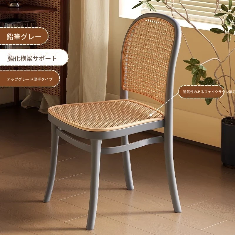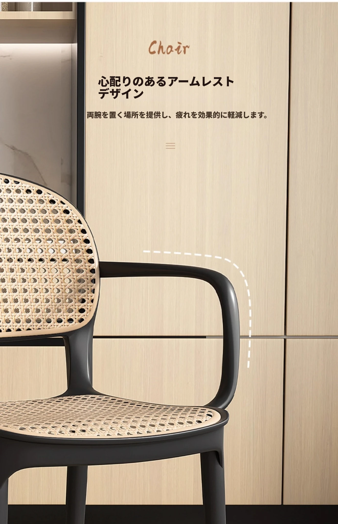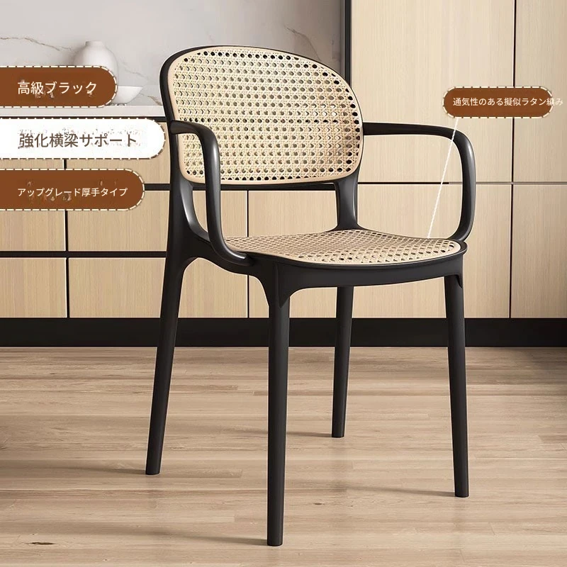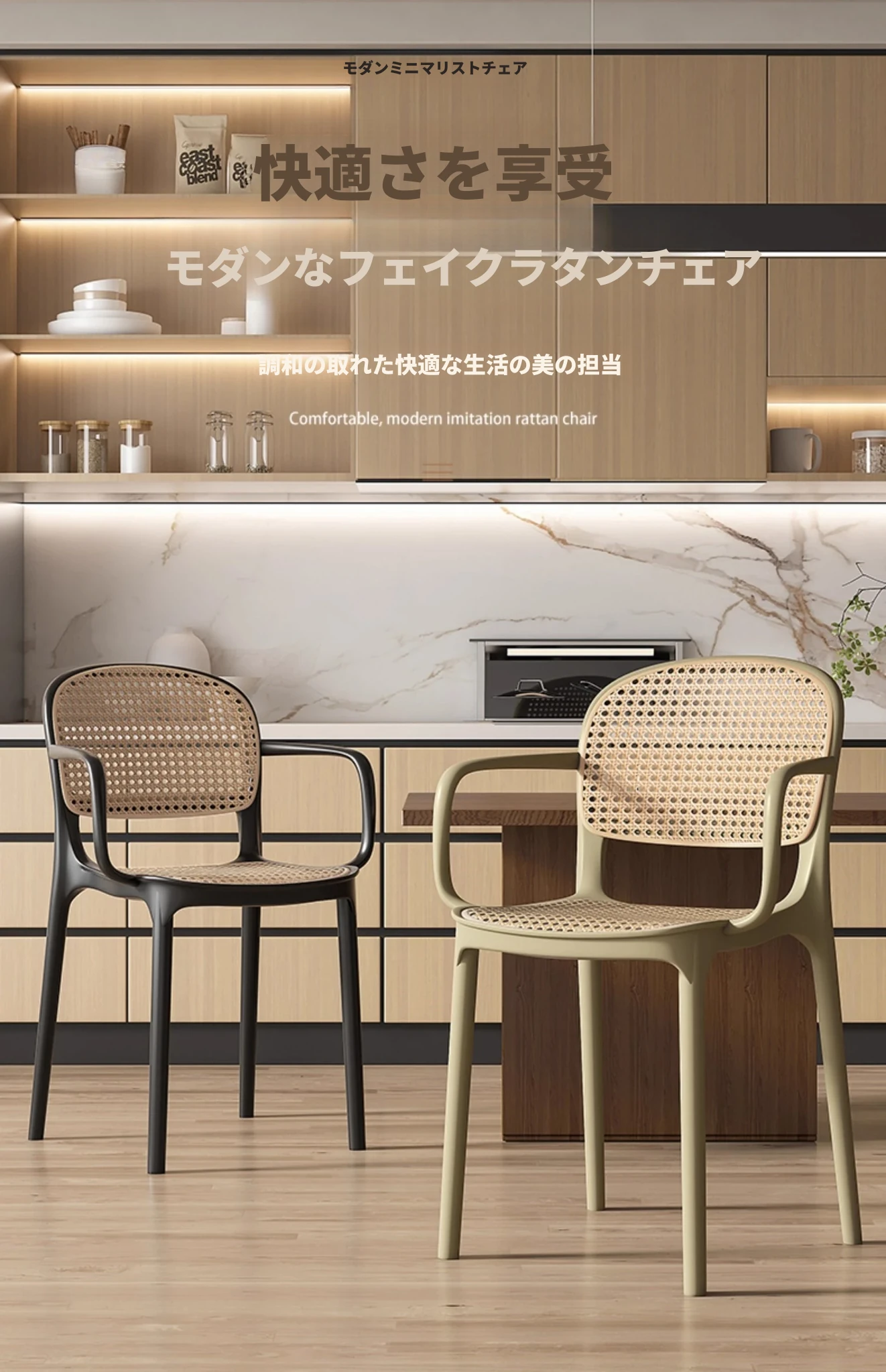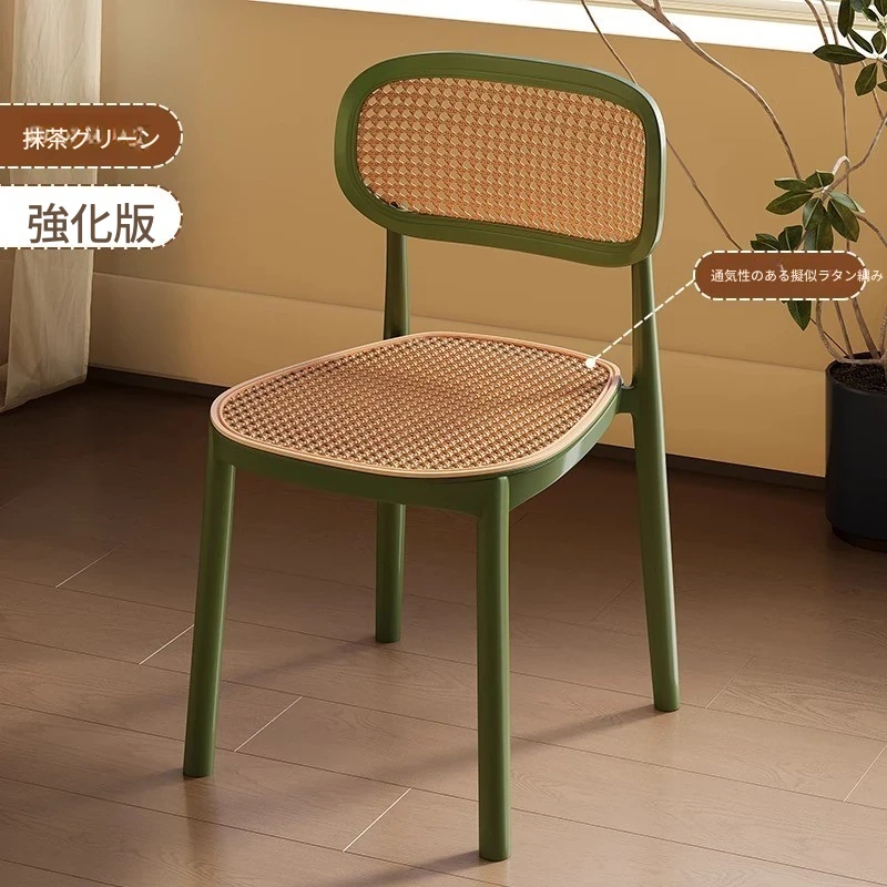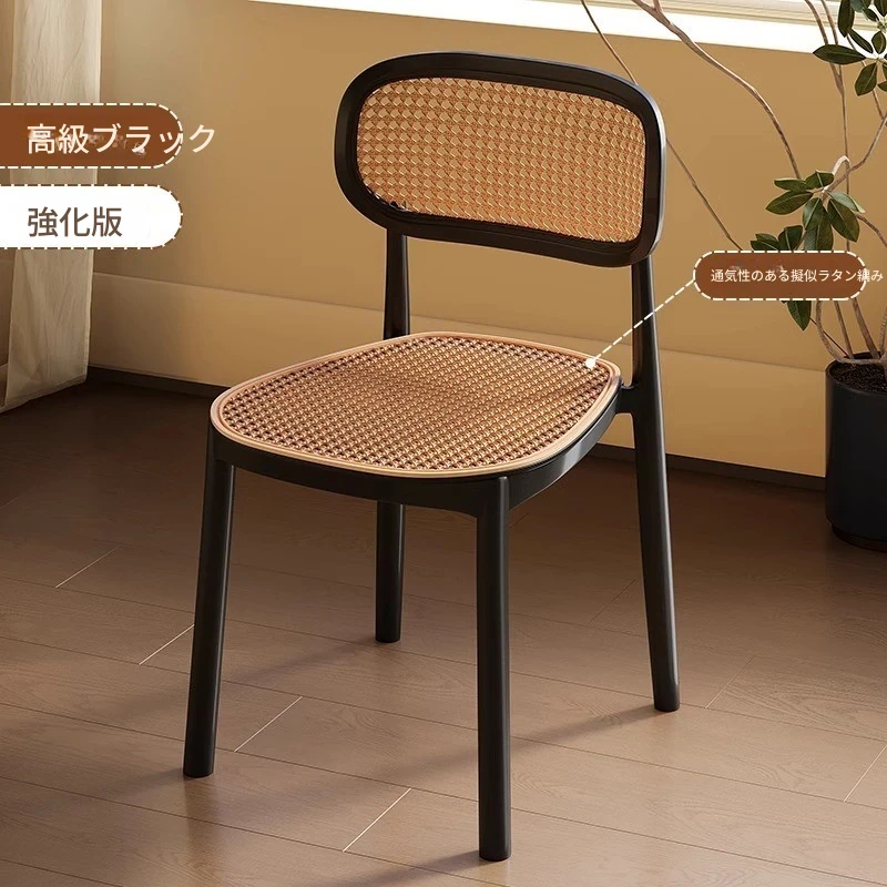 プラスチックラタン編み椅子 イタリアンINSスタイルのシンプルなデザイン 家庭用厚手ダイニングチェア 通気性抜群で快適な商用背もたれチェア