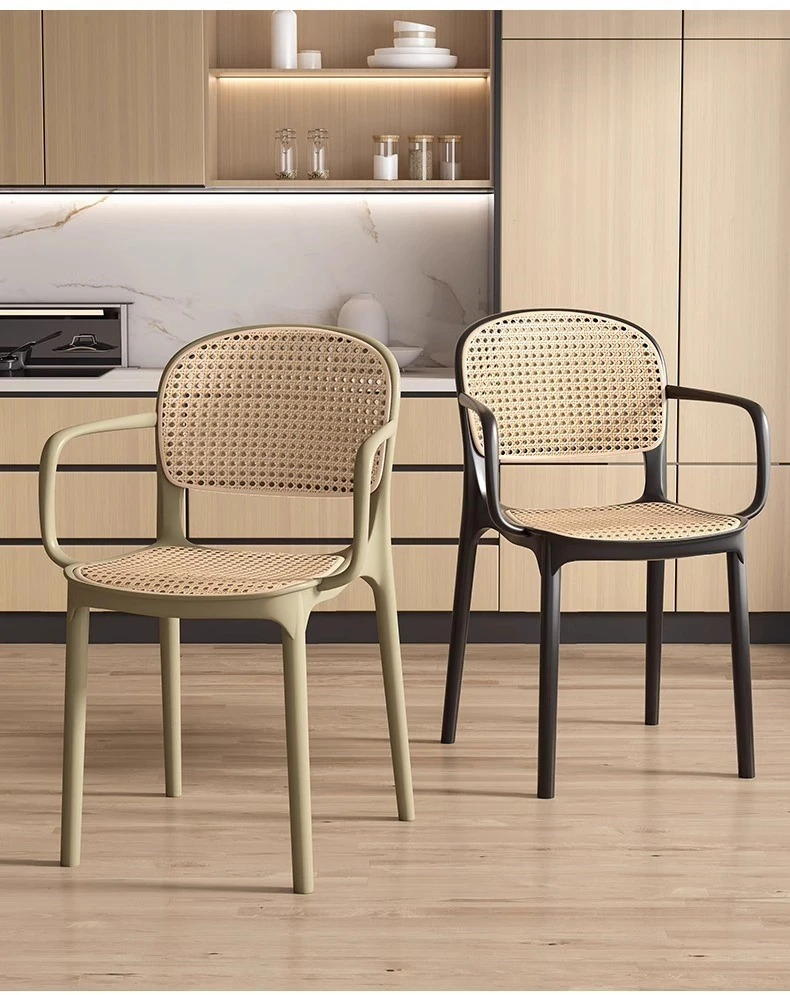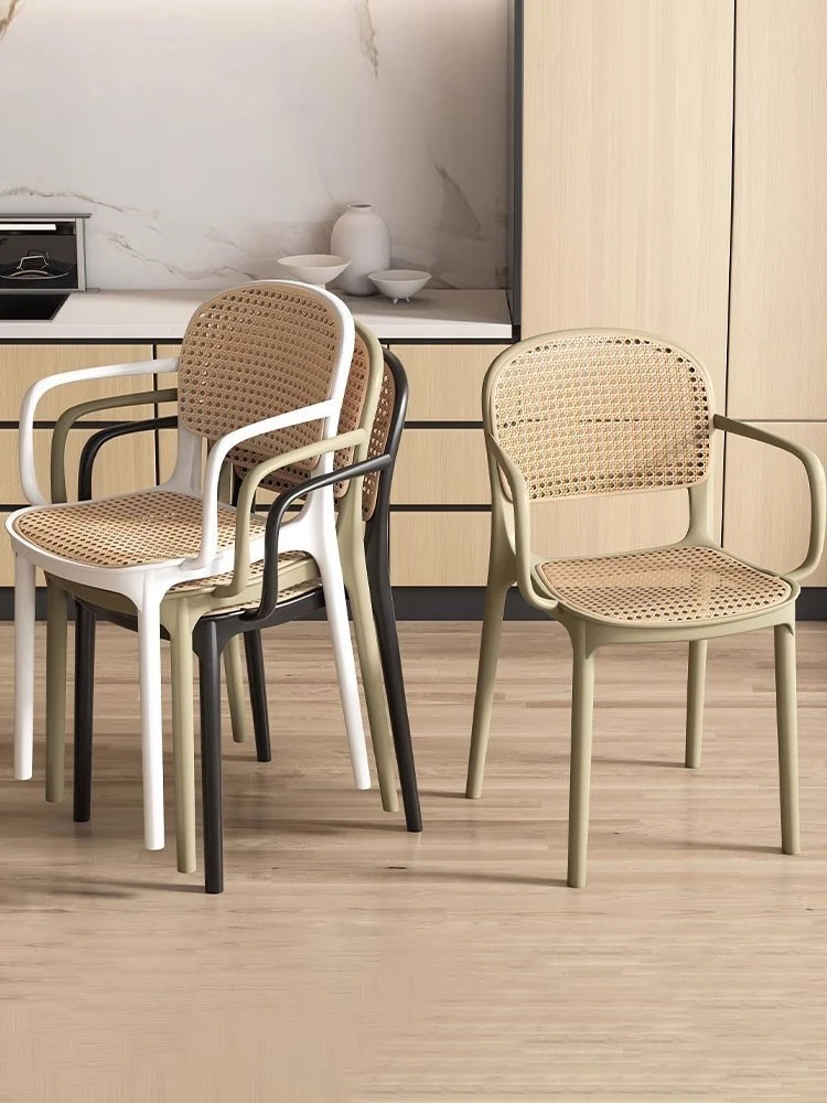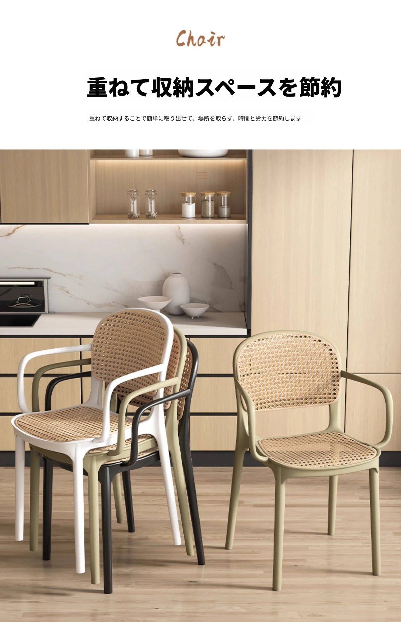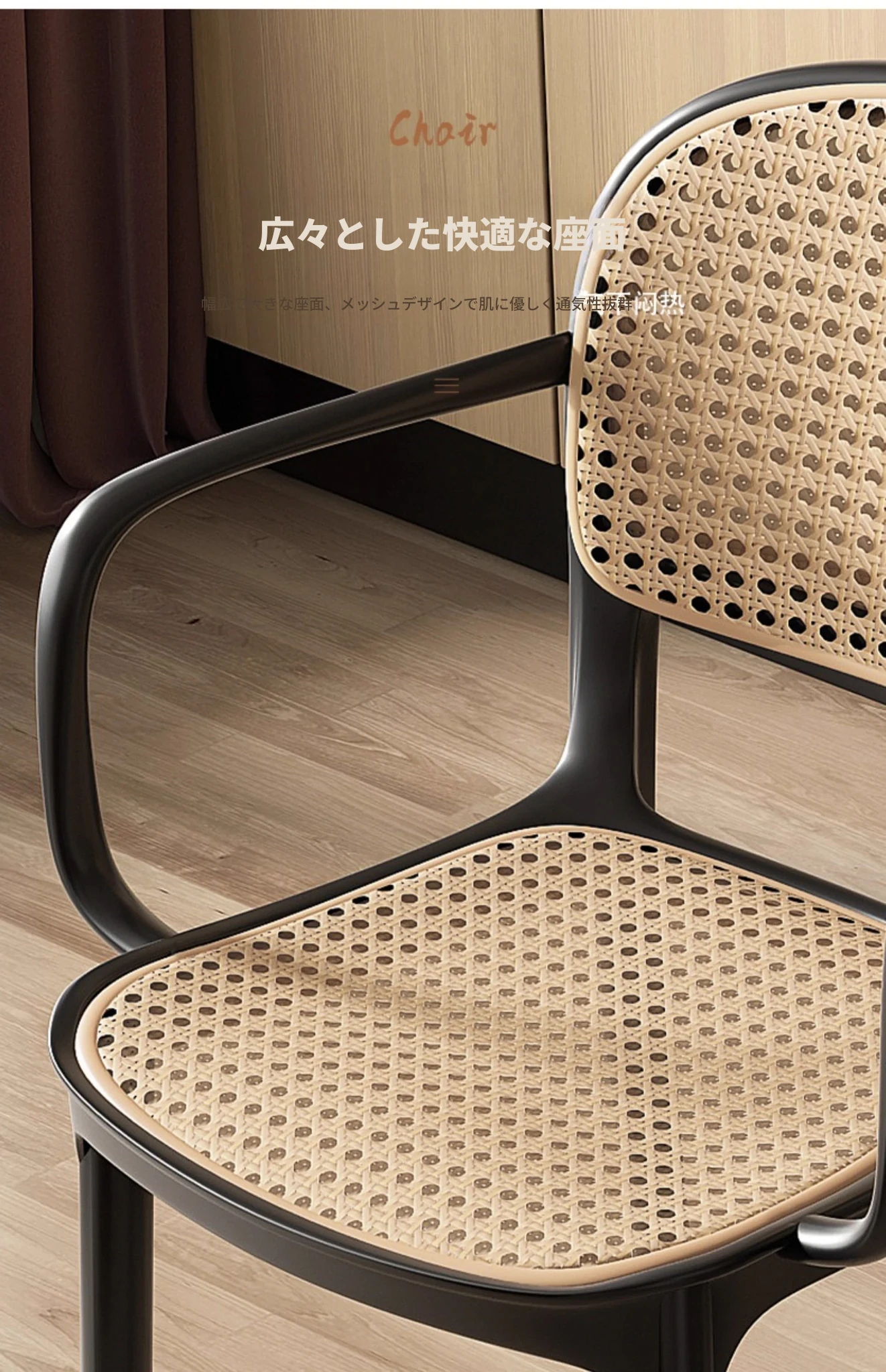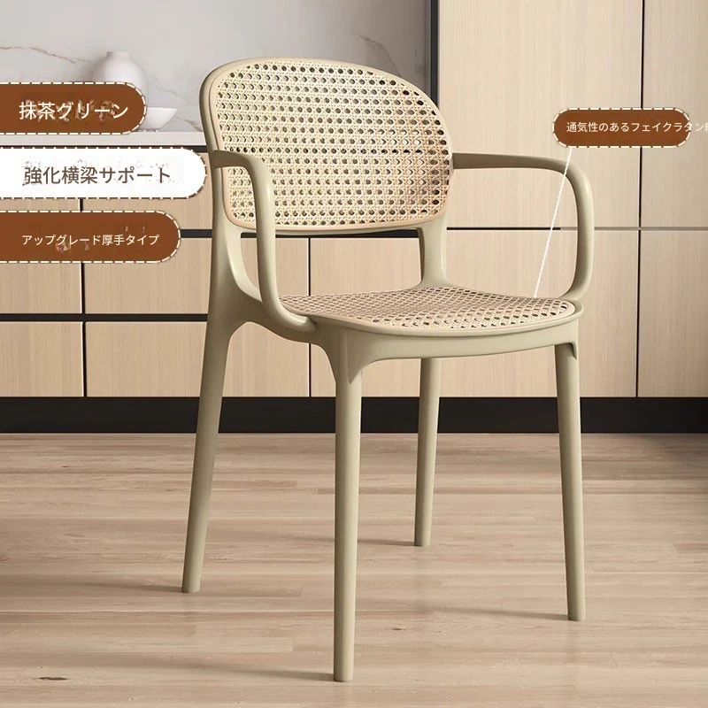 プラスチックラタン編み椅子 イタリアンINSスタイルのシンプルなデザイン 家庭用厚手ダイニングチェア 通気性抜群で快適な商用背もたれチェア