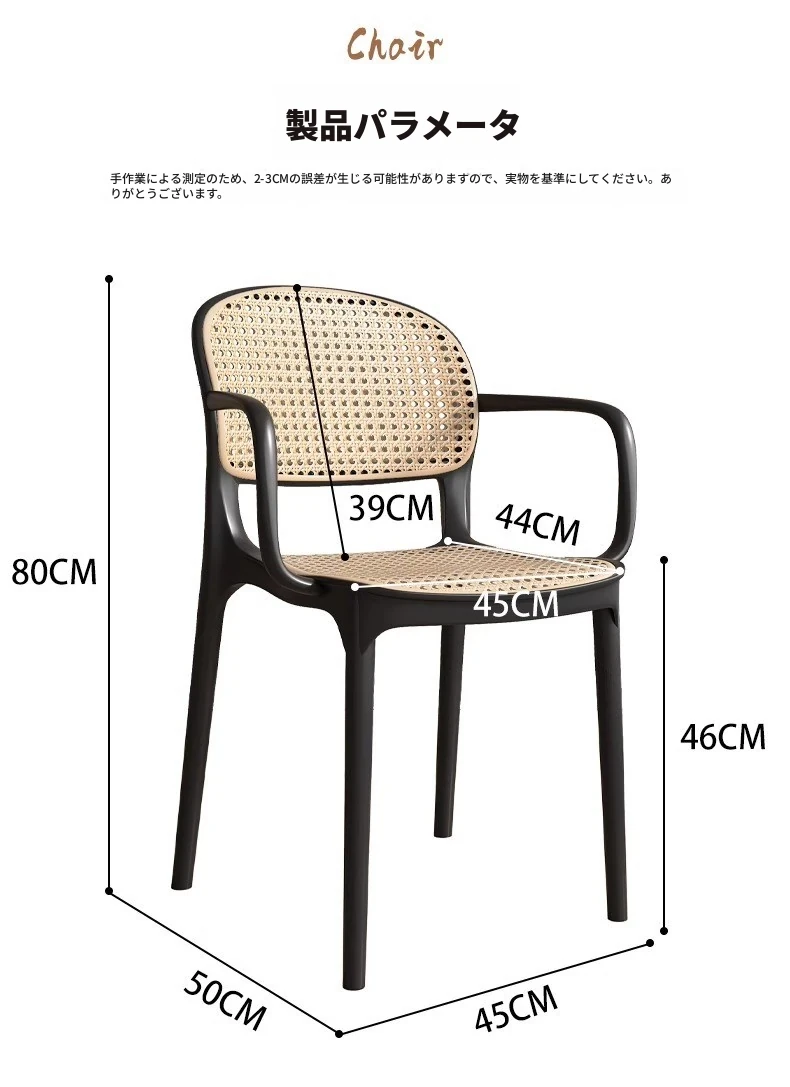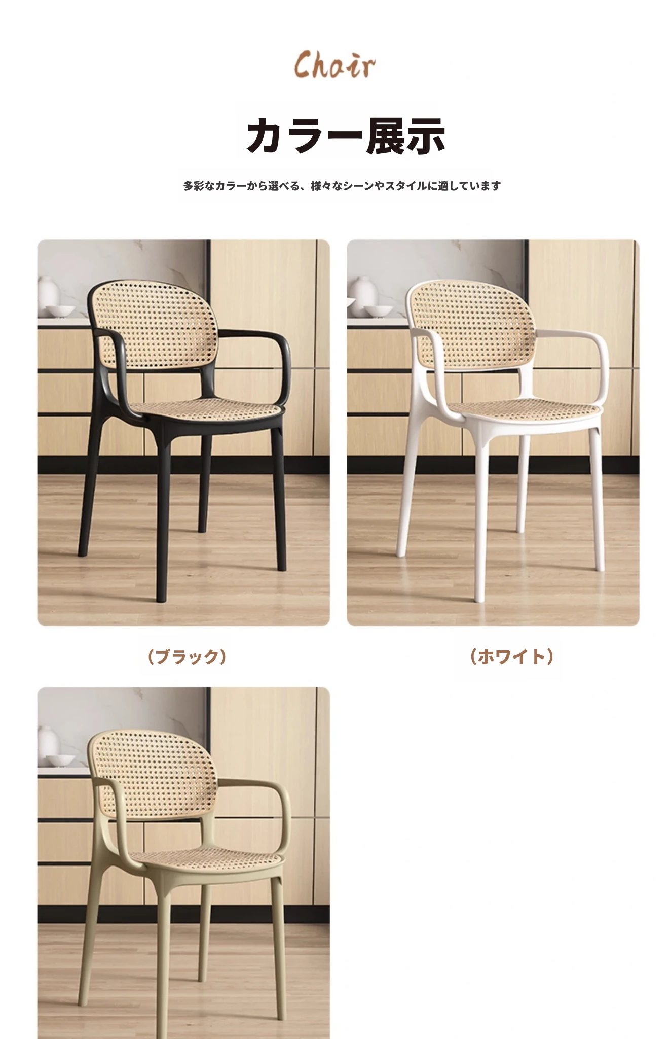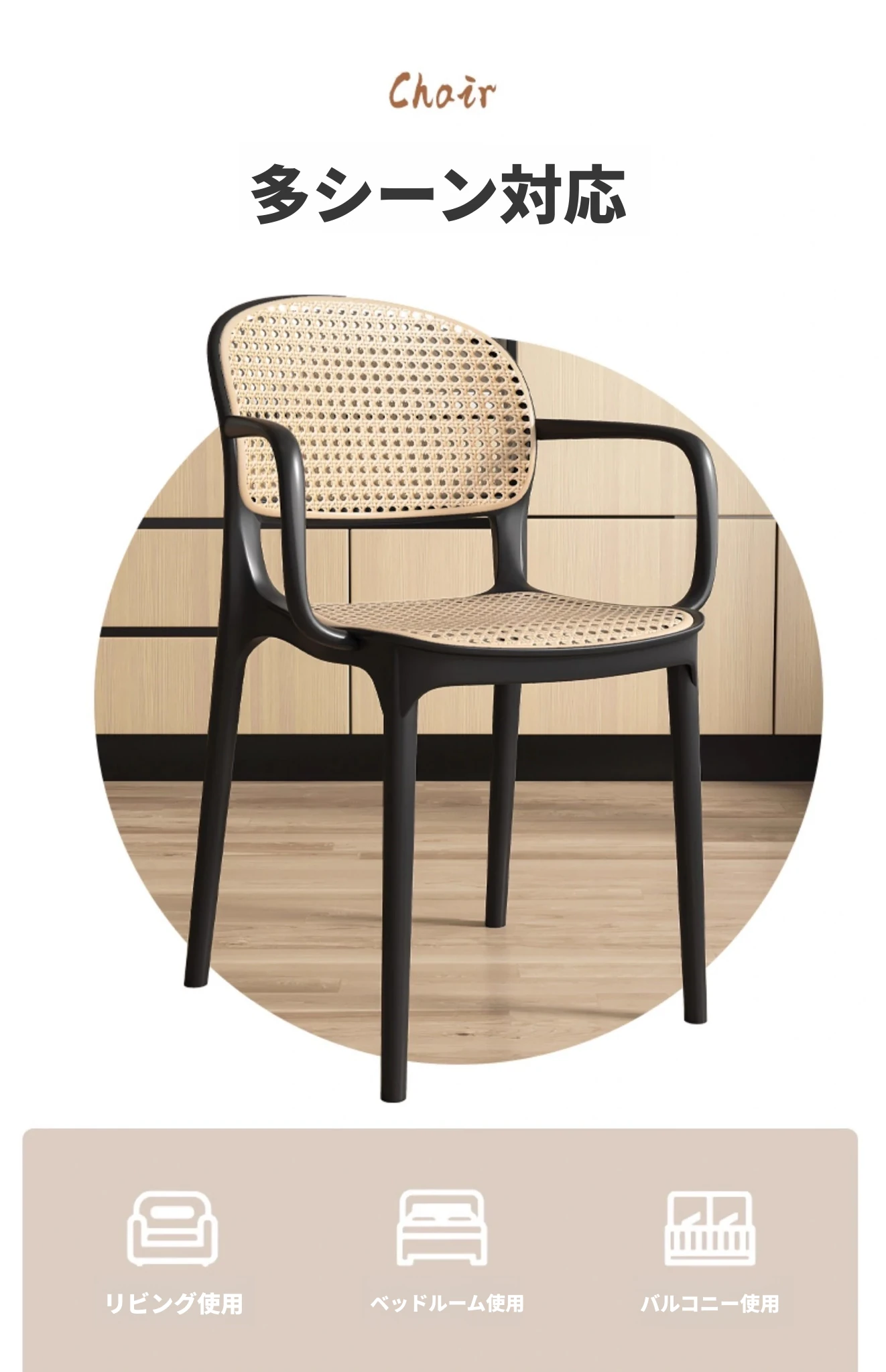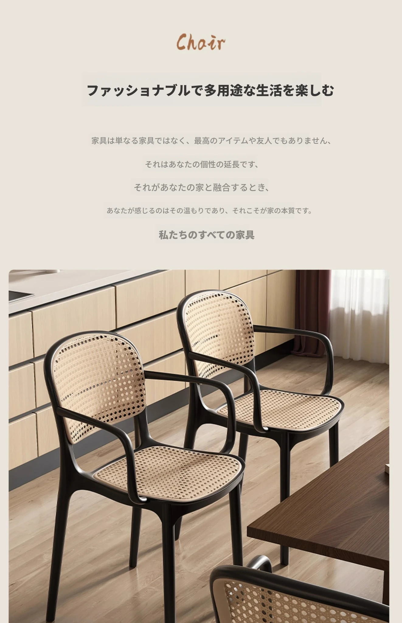 プラスチックラタン編み椅子 イタリアンINSスタイルのシンプルなデザイン 家庭用厚手ダイニングチェア 通気性抜群で快適な商用背もたれチェア