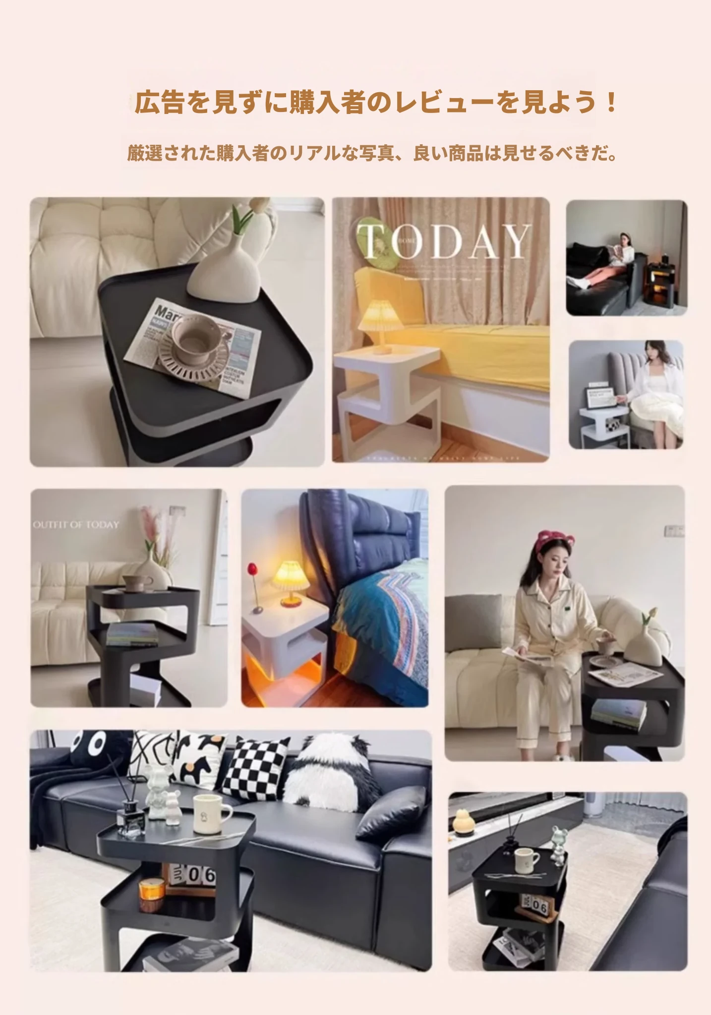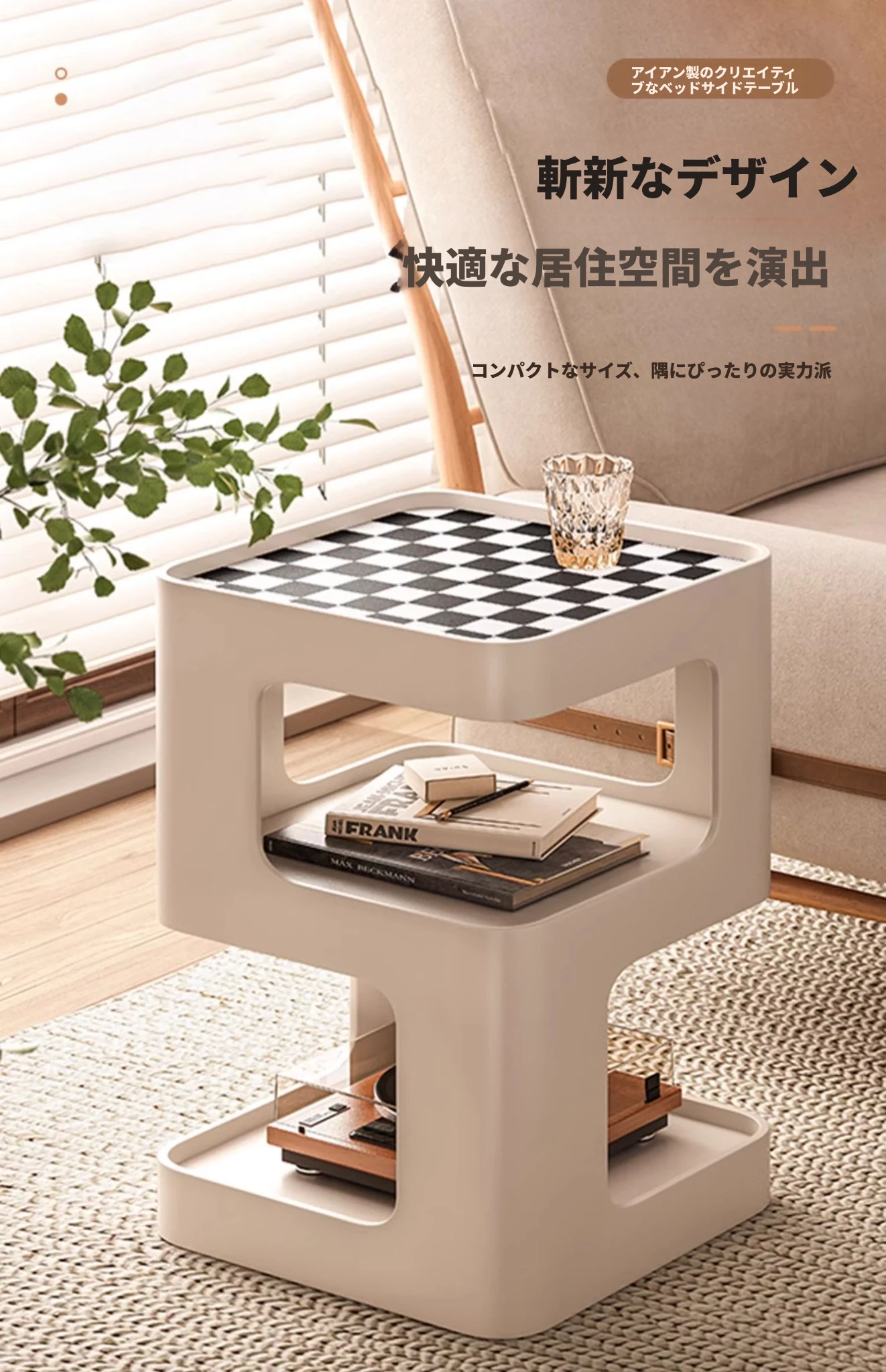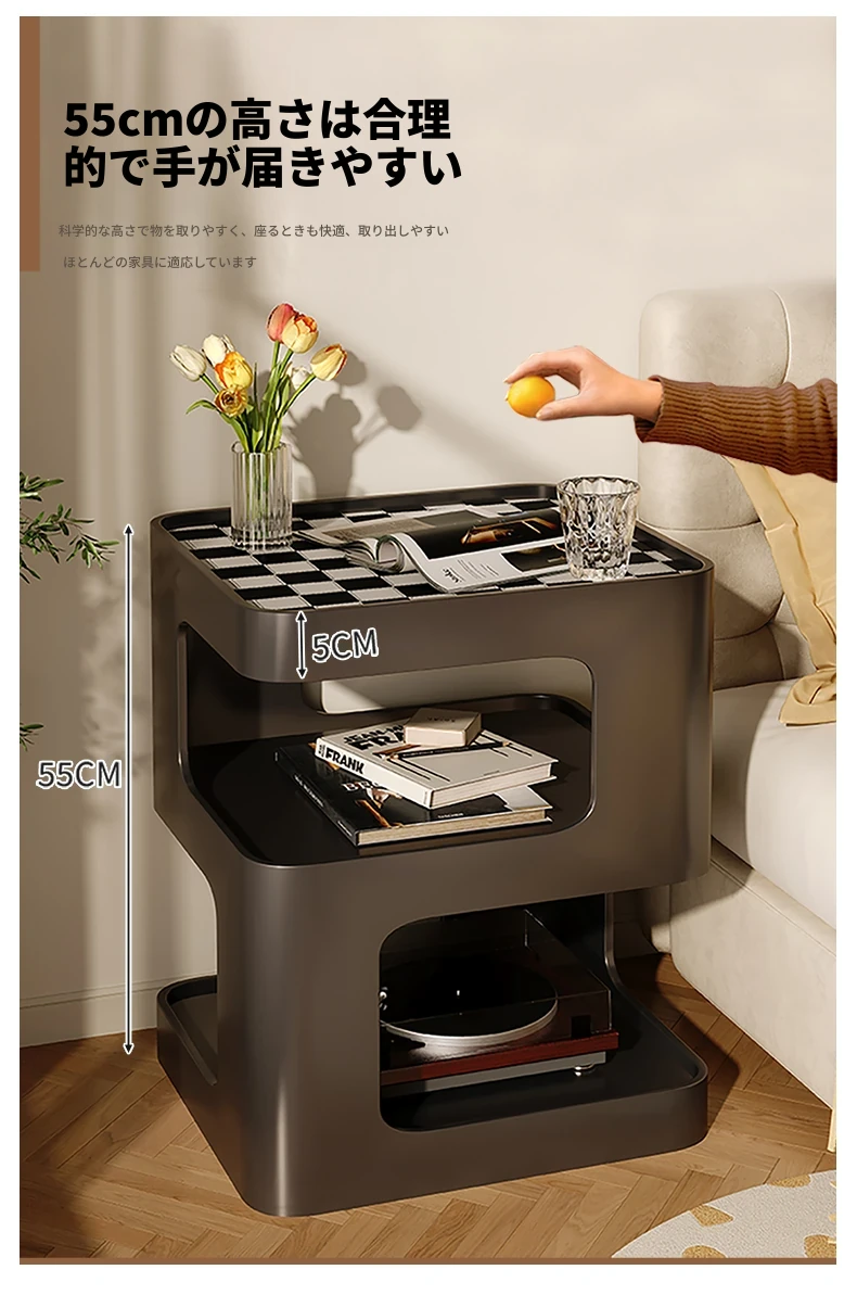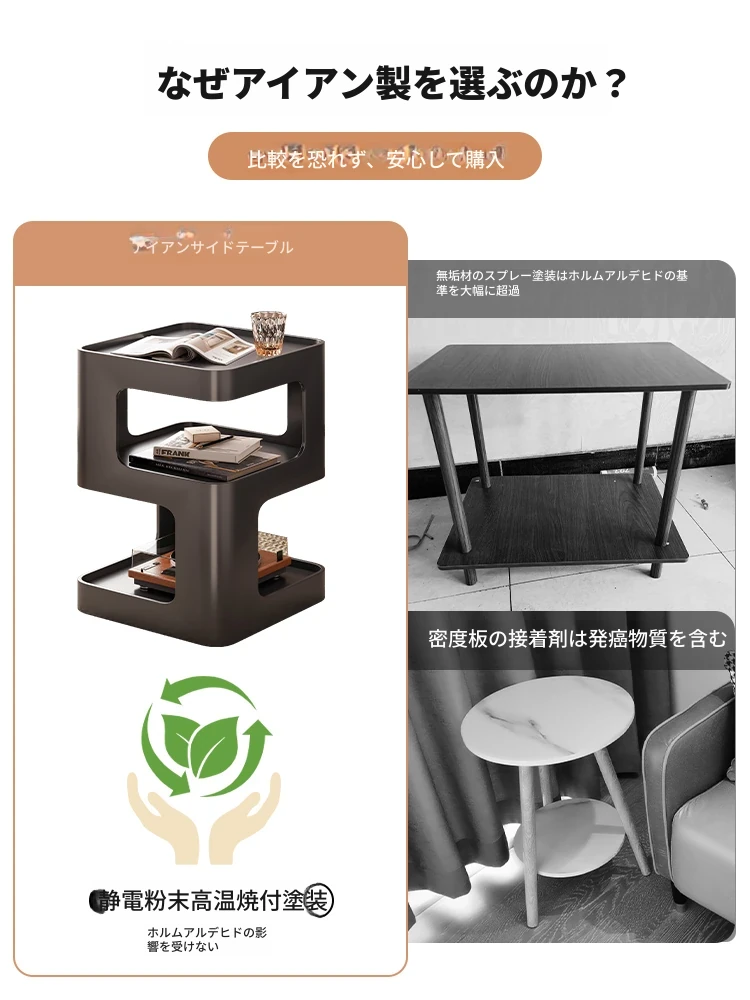 移動可能なアイアン製ナイトテーブル!シンプルでモダンなデザイン、人気のインフルエンサーも愛用。おしゃれな寝室にぴったりの小型サイドテーブル、収納棚としても大活躍!