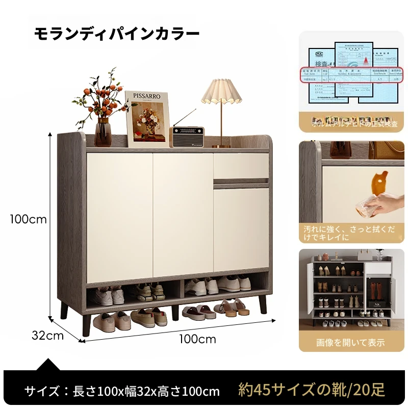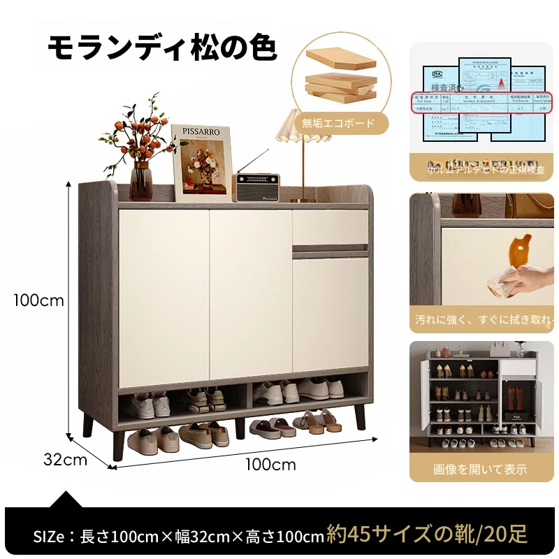 配達【三ドア一引き出し⭐アップグレード耐圧高品質密度ボード】モランディ松色+暖白100*32*100