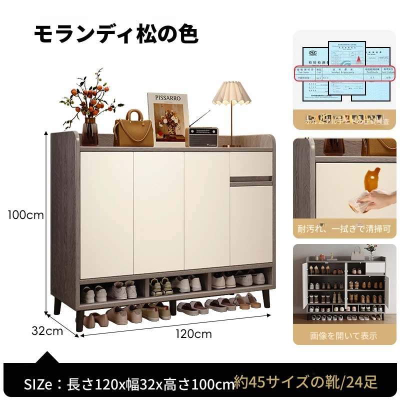配達【四ドア一引き出し⭐アップグレード耐圧高品質密度ボード】モランディ松色+暖白120*32*100