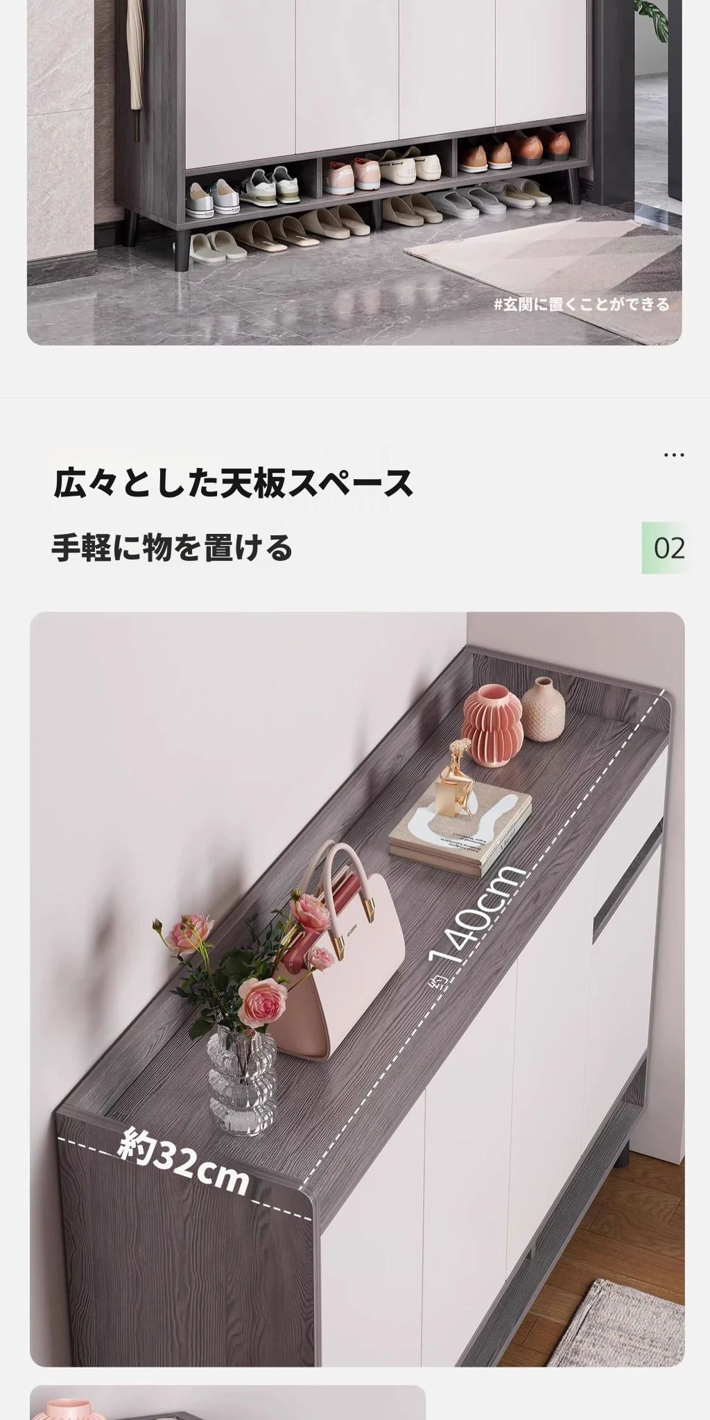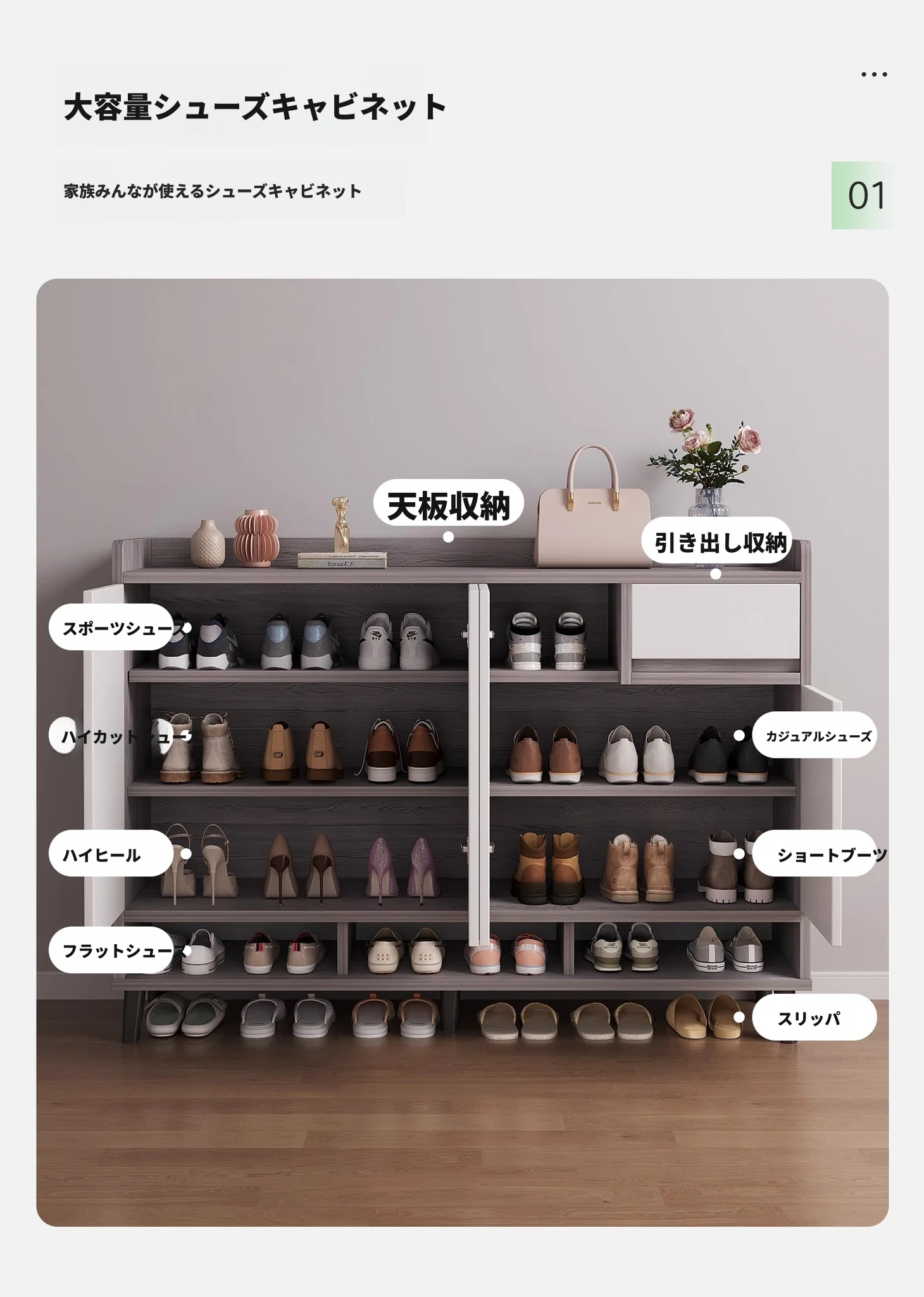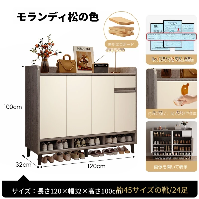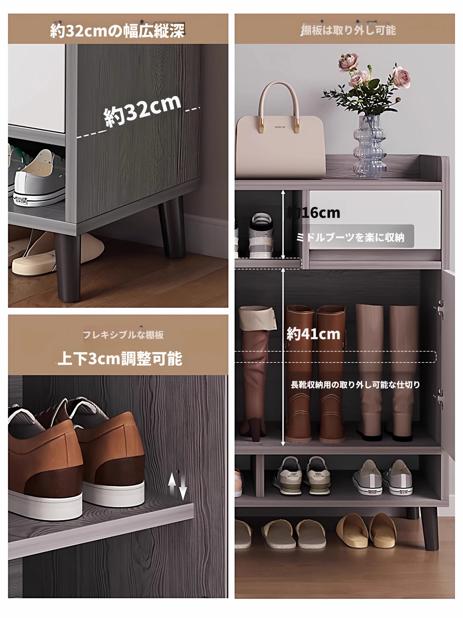 玄関用の高級天然木製シューズキャビネット - 2025年新作!壁に寄せられるデザインで、家の入り口をおしゃれに演出。収納力抜群で、靴をスッキリ整理!