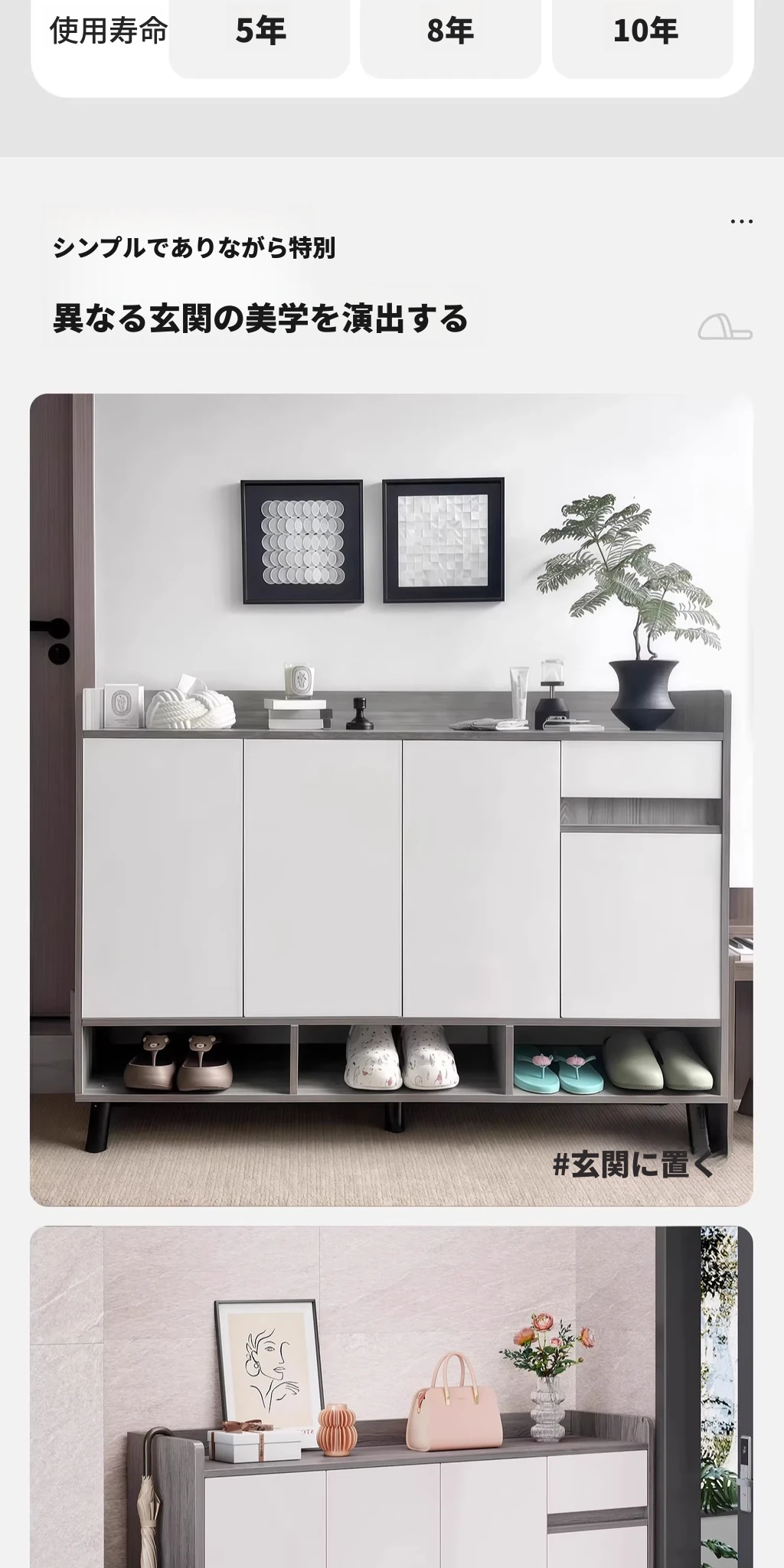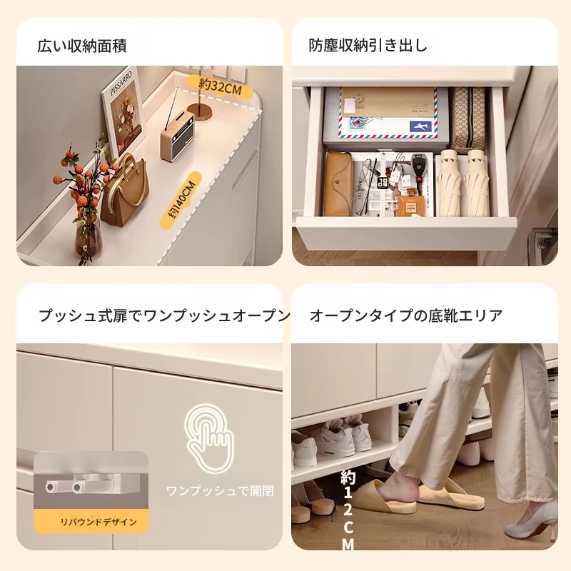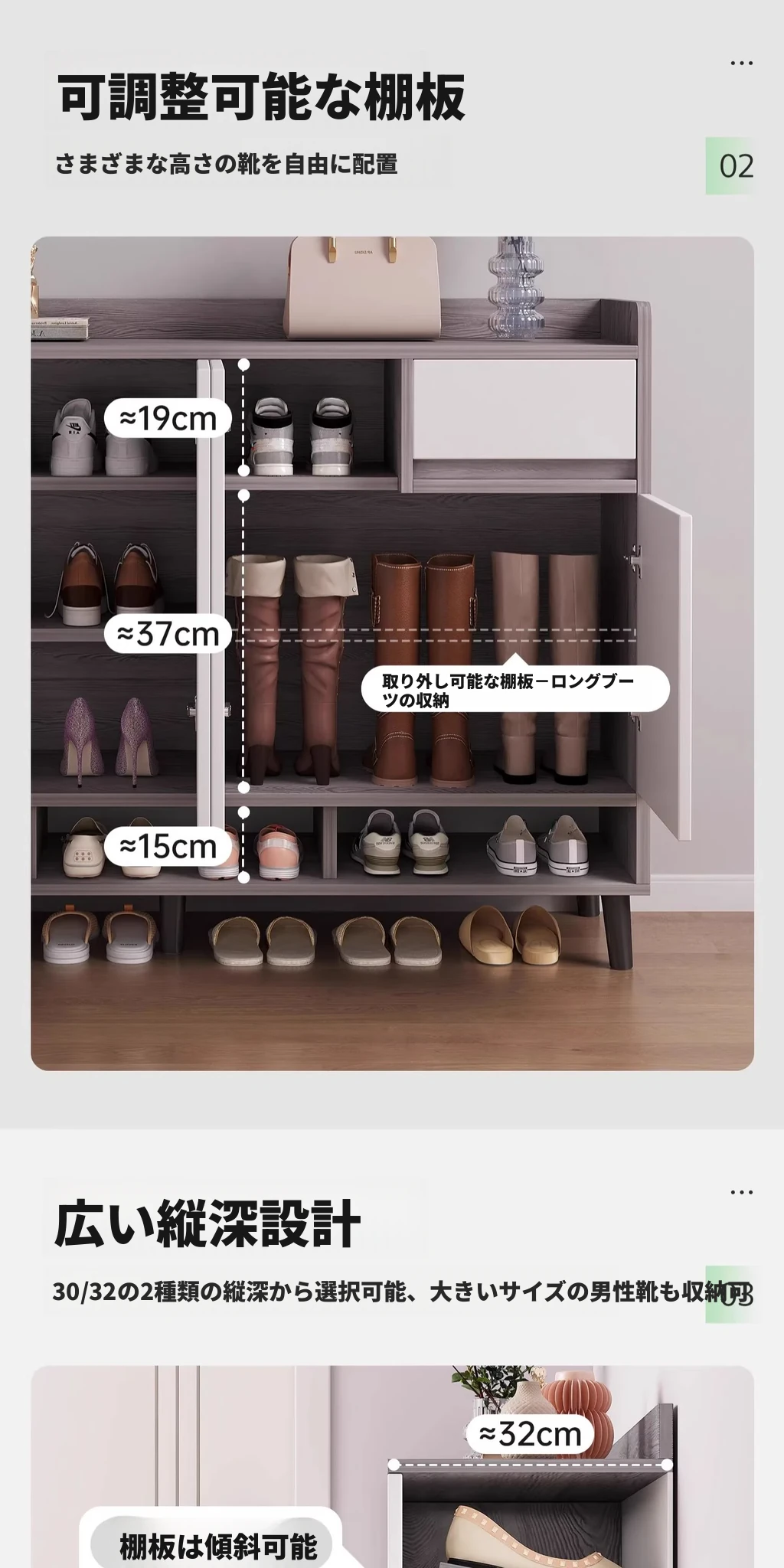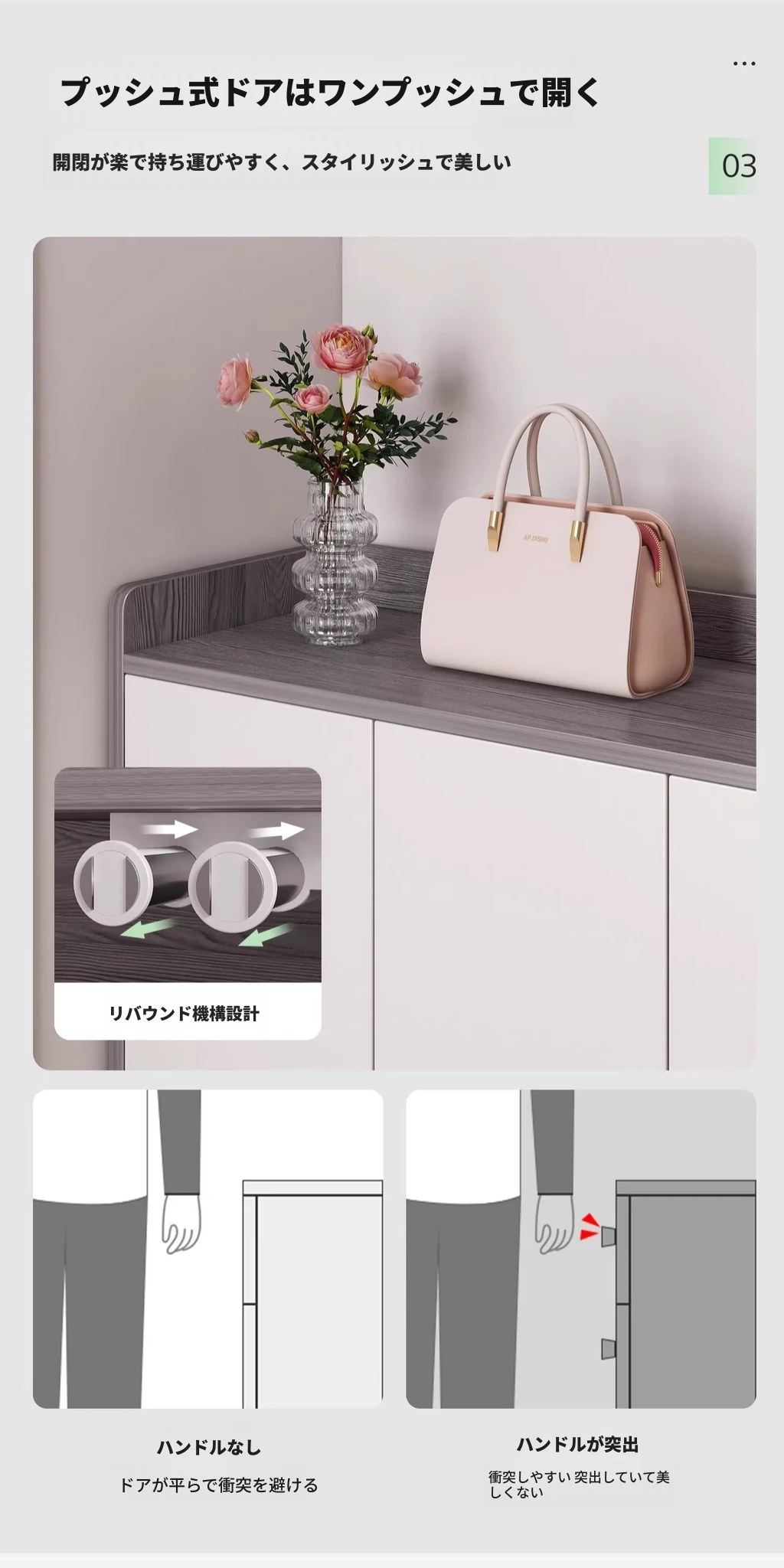 玄関用の高級天然木製シューズキャビネット - 2025年新作!壁に寄せられるデザインで、家の入り口をおしゃれに演出。収納力抜群で、靴をスッキリ整理!
