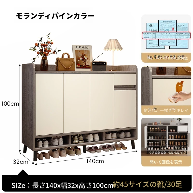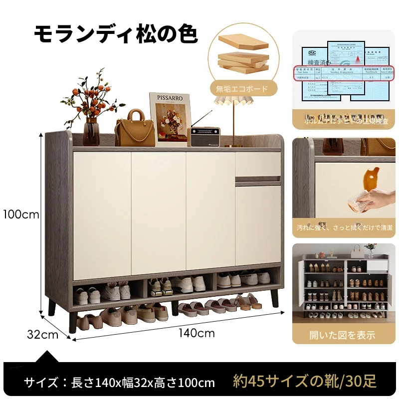 配達【四ドア一引き出し⭐アップグレード耐圧高品質密度ボード】モランディ松色+暖白140*32*100