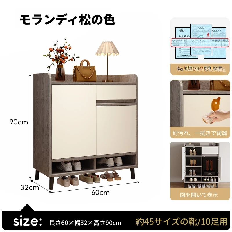 配達【二ドア一引き出し⭐アップグレード耐圧高品質密度ボード】モランディ松色+暖白60-32-90