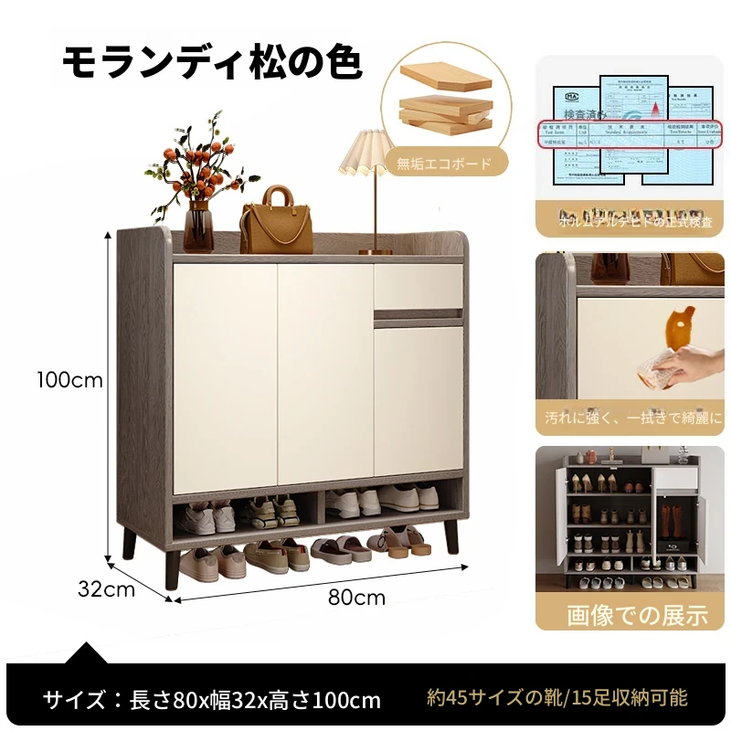 配達【三ドア一引き出し⭐アップグレード耐圧高品質密度ボード】モランディ松色+暖白80*32*100