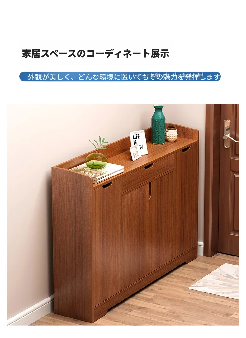 2024年新作!大容量実木製シューズキャビネット - 家庭用玄関収納、バルコニーにも最適な人気の靴ラック!おしゃれで機能的な収納で、玄関をスッキリ整理!