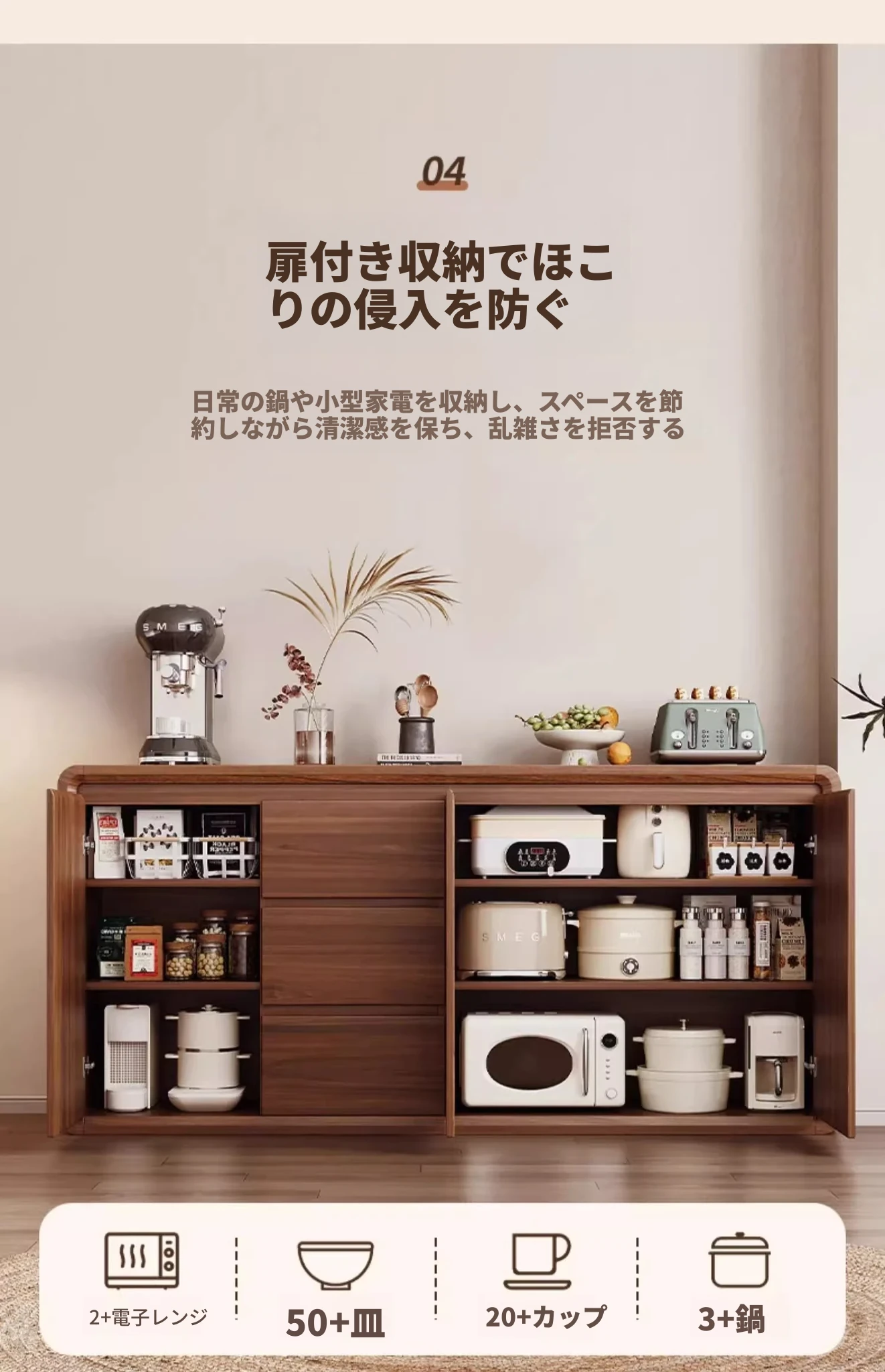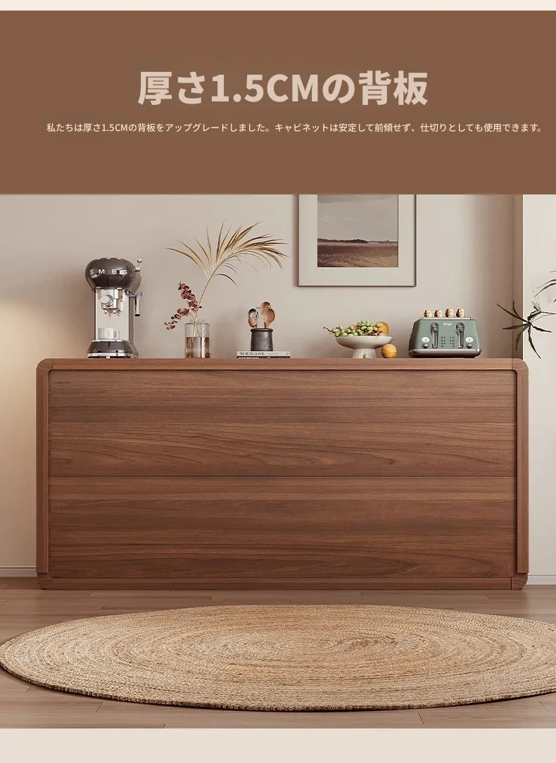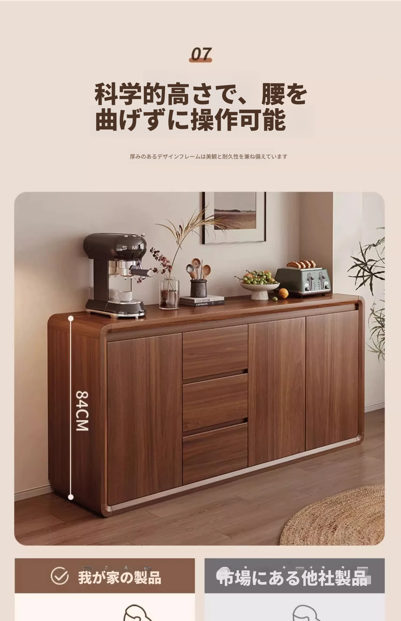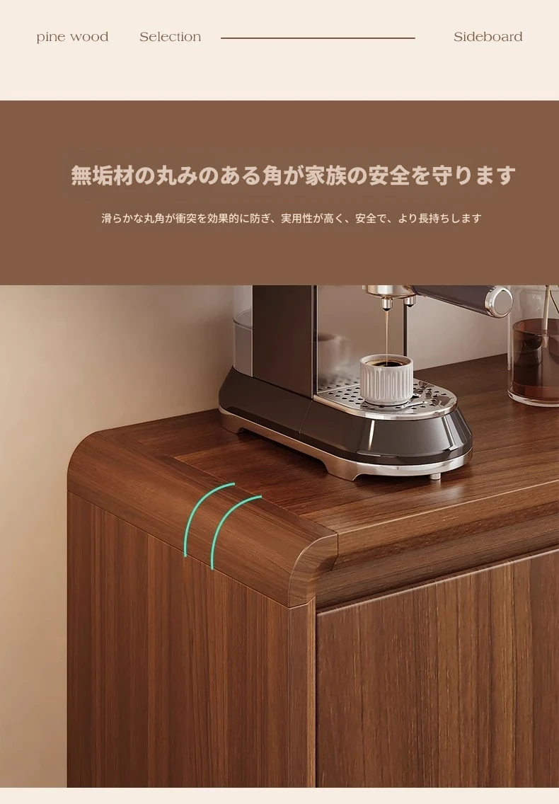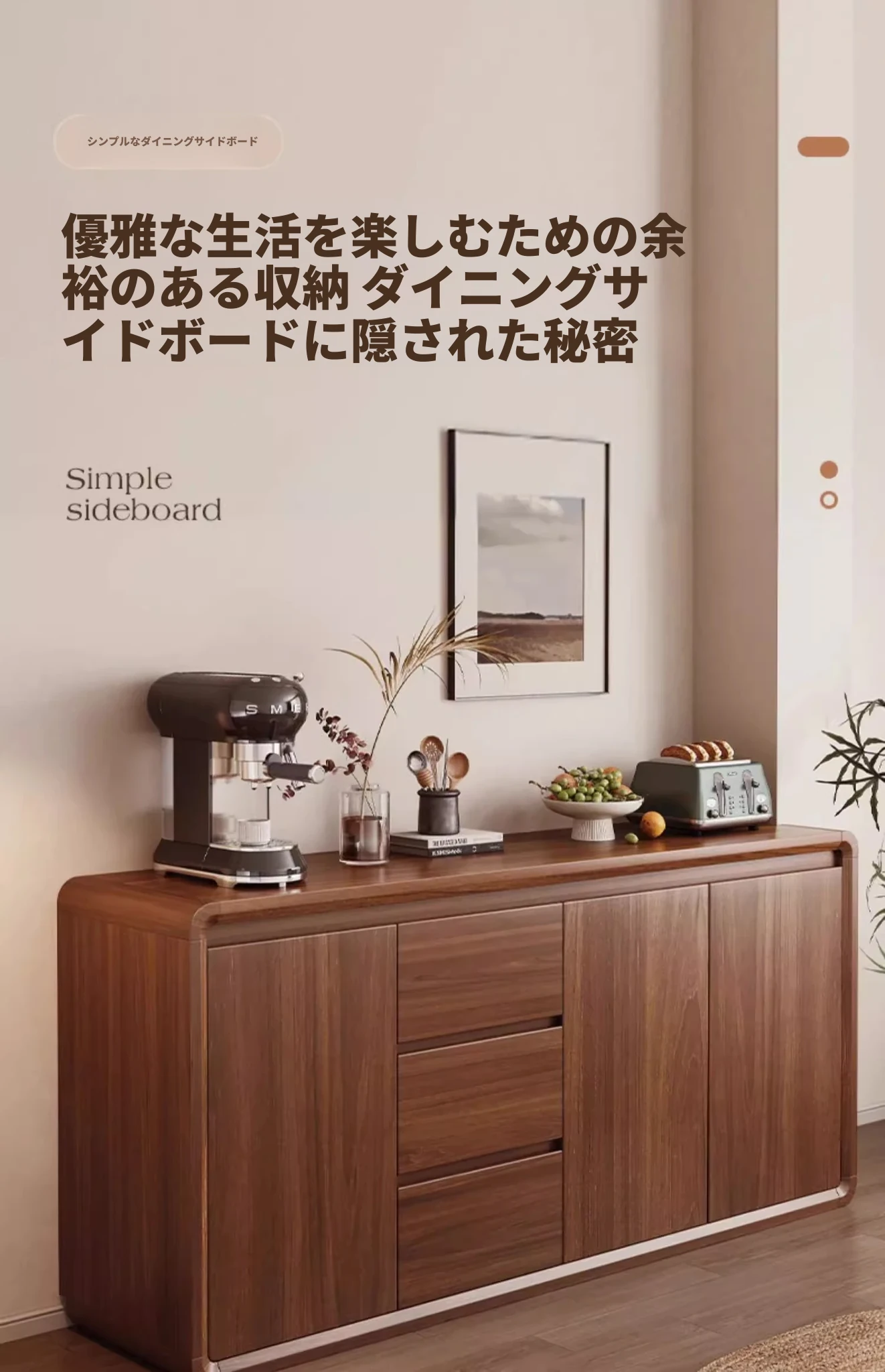 壁に寄せられる一体型収納キャビネット - 高品質の天然木製、スタイリッシュなデザインで、リビングの小物やティー用品をスマートに収納!おしゃれで機能的な収納スペースを実現し、家のインテリアを引き立てます。