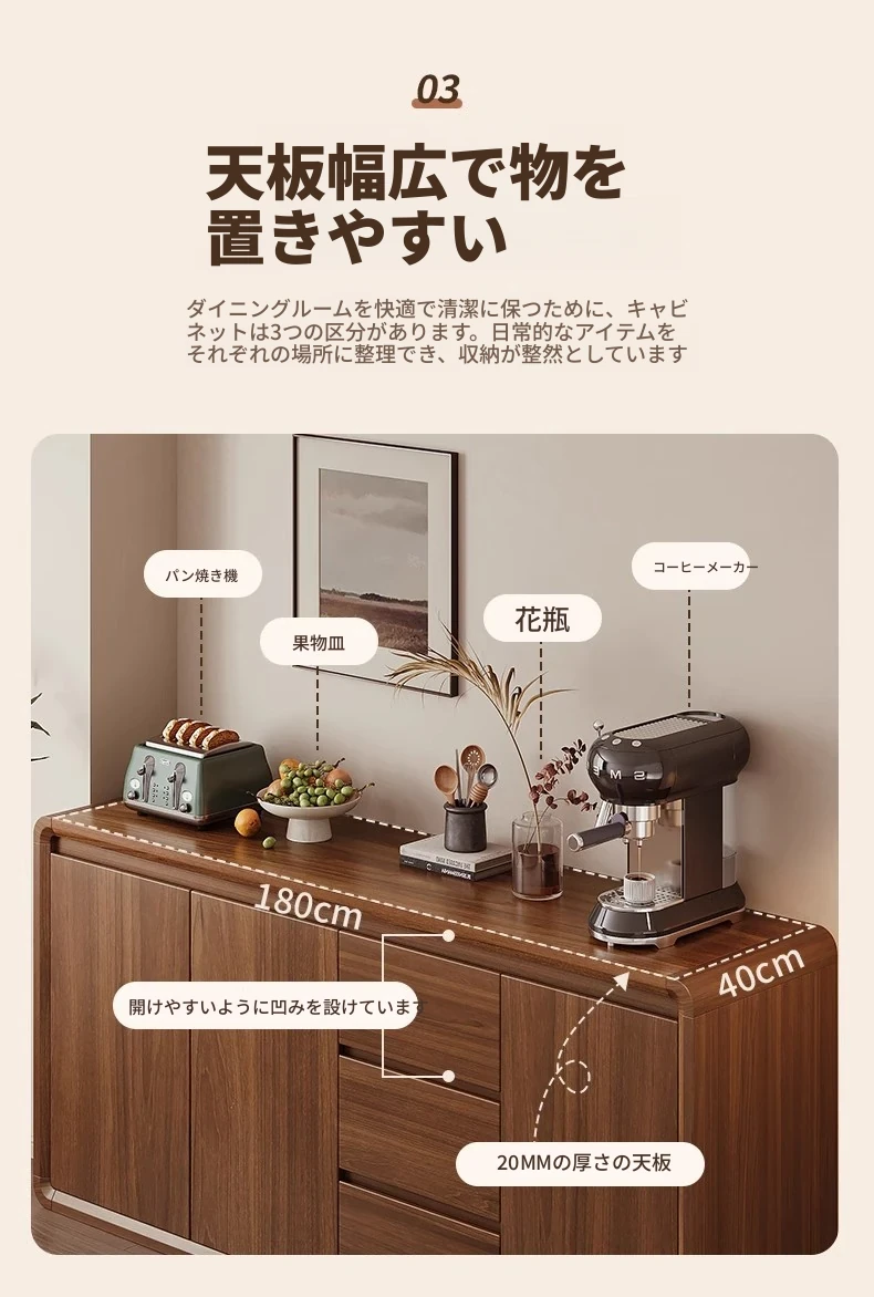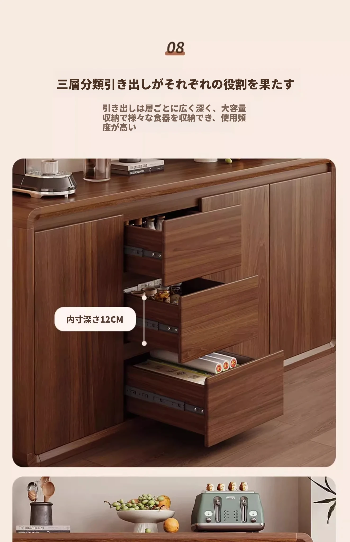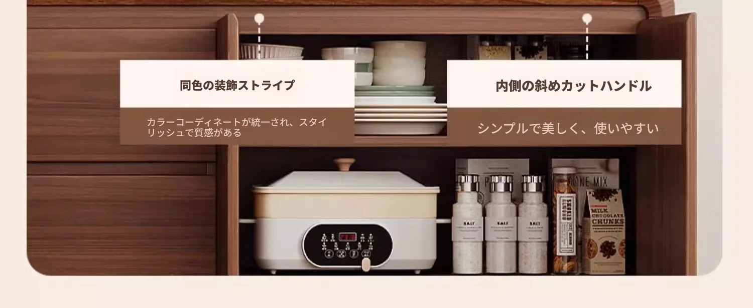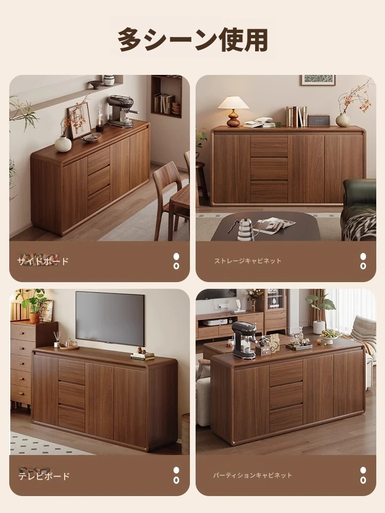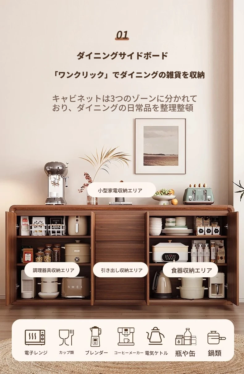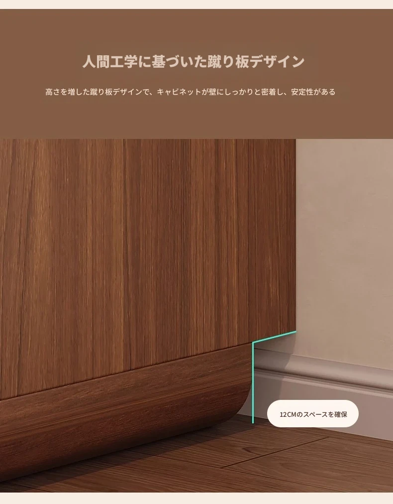 壁に寄せられる一体型収納キャビネット - 高品質の天然木製、スタイリッシュなデザインで、リビングの小物やティー用品をスマートに収納!おしゃれで機能的な収納スペースを実現し、家のインテリアを引き立てます。
