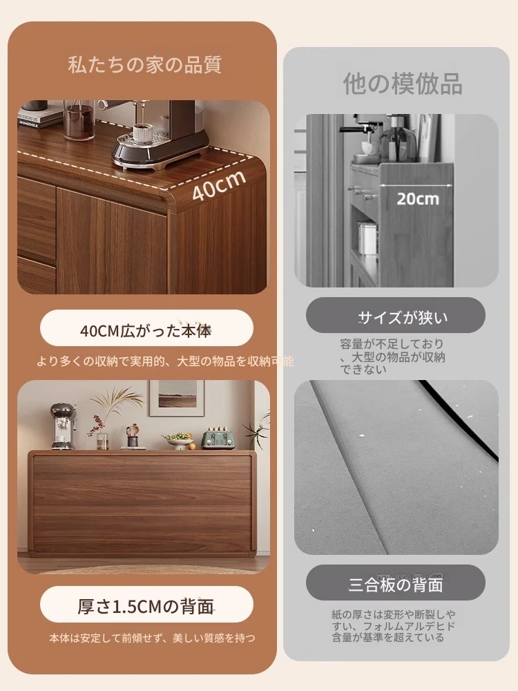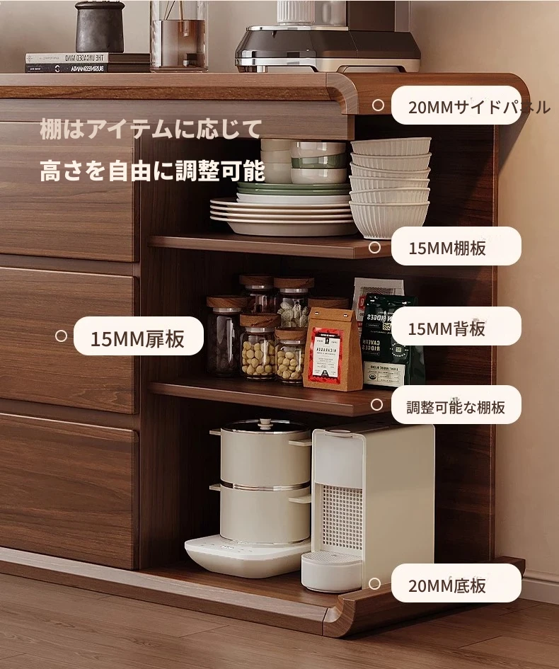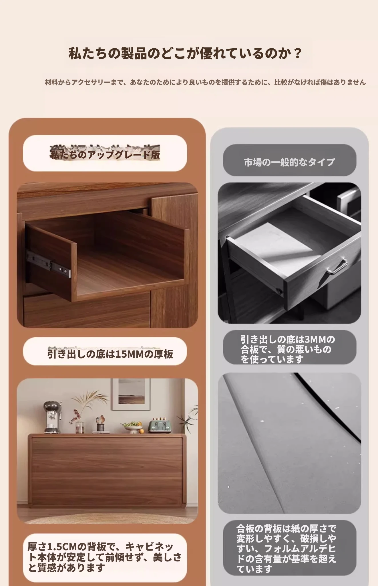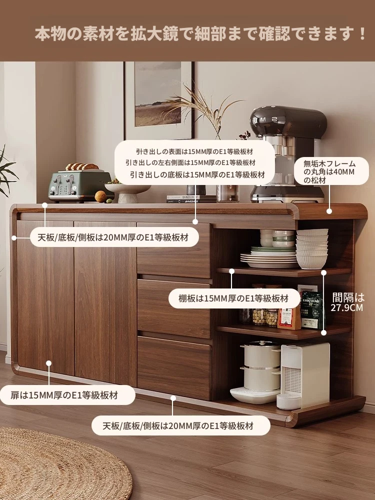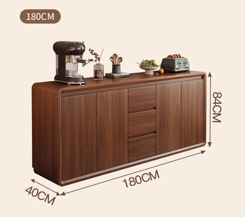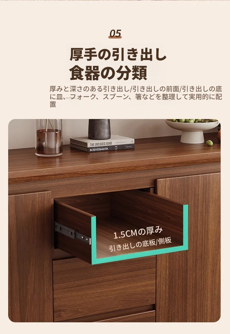 壁に寄せられる一体型収納キャビネット - 高品質の天然木製、スタイリッシュなデザインで、リビングの小物やティー用品をスマートに収納!おしゃれで機能的な収納スペースを実現し、家のインテリアを引き立てます。