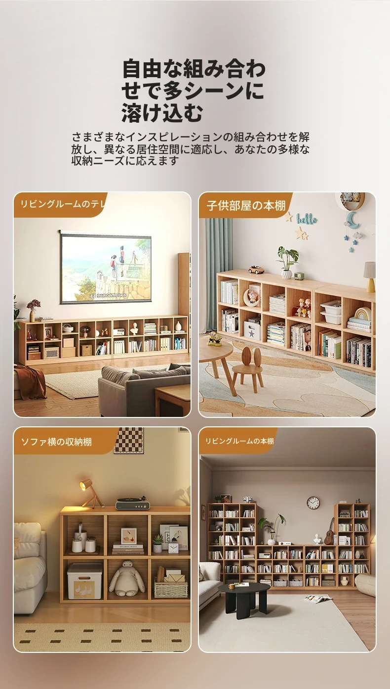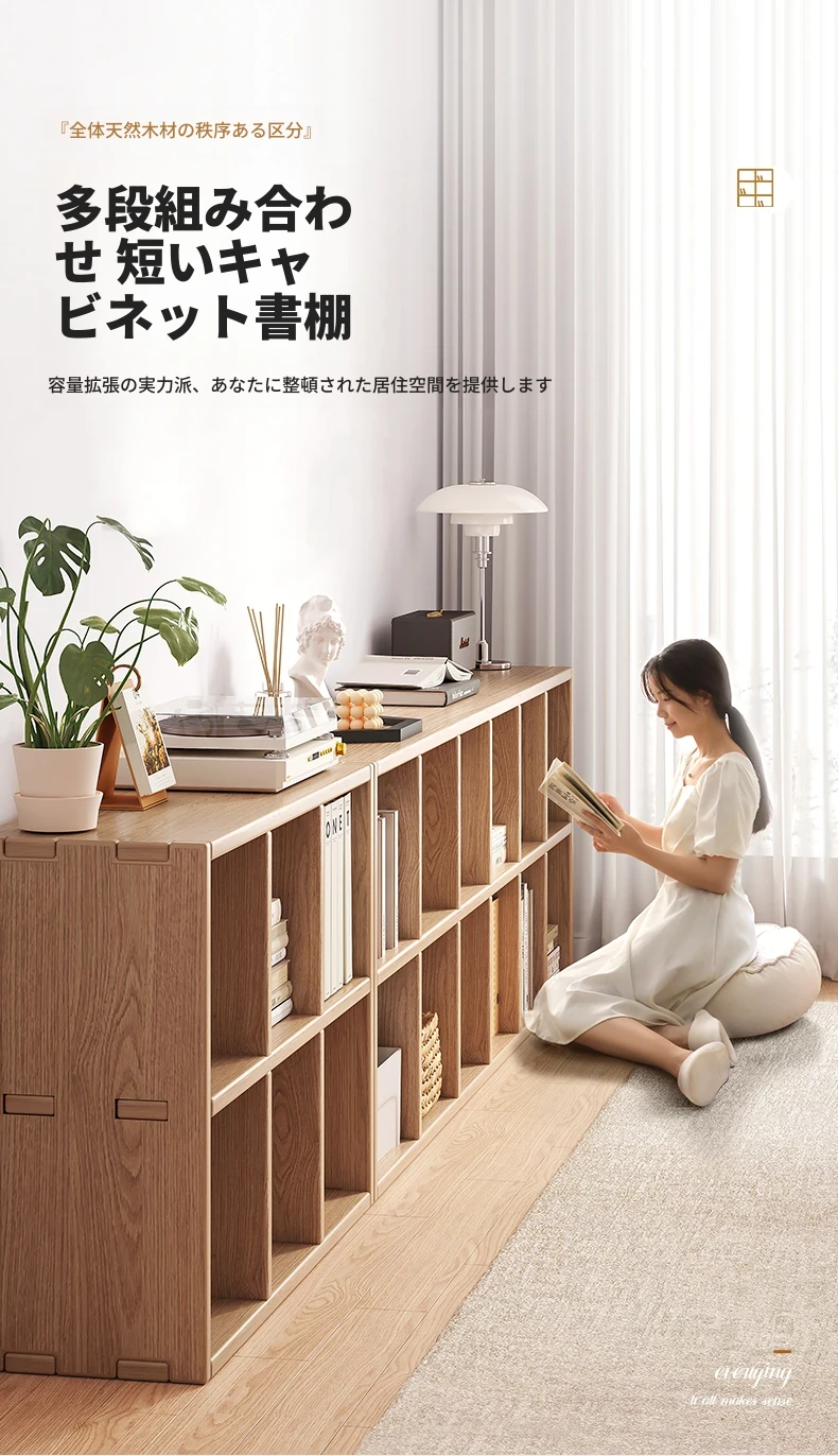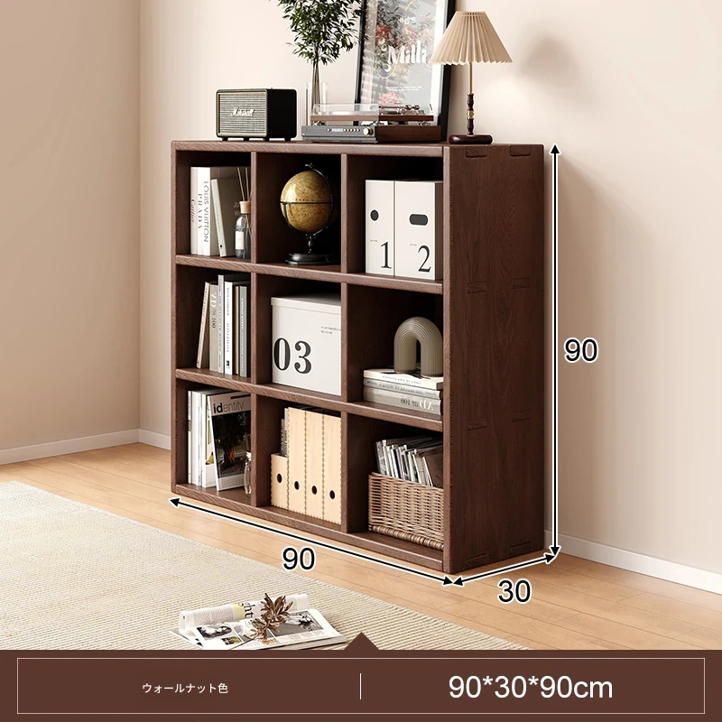 おしゃれで機能的な実木収納キャビネット!9つのグリッドデザインで、学生や家庭に最適な書棚・置き場所を提供します。スペースを有効活用し、整理整頓も簡単に!