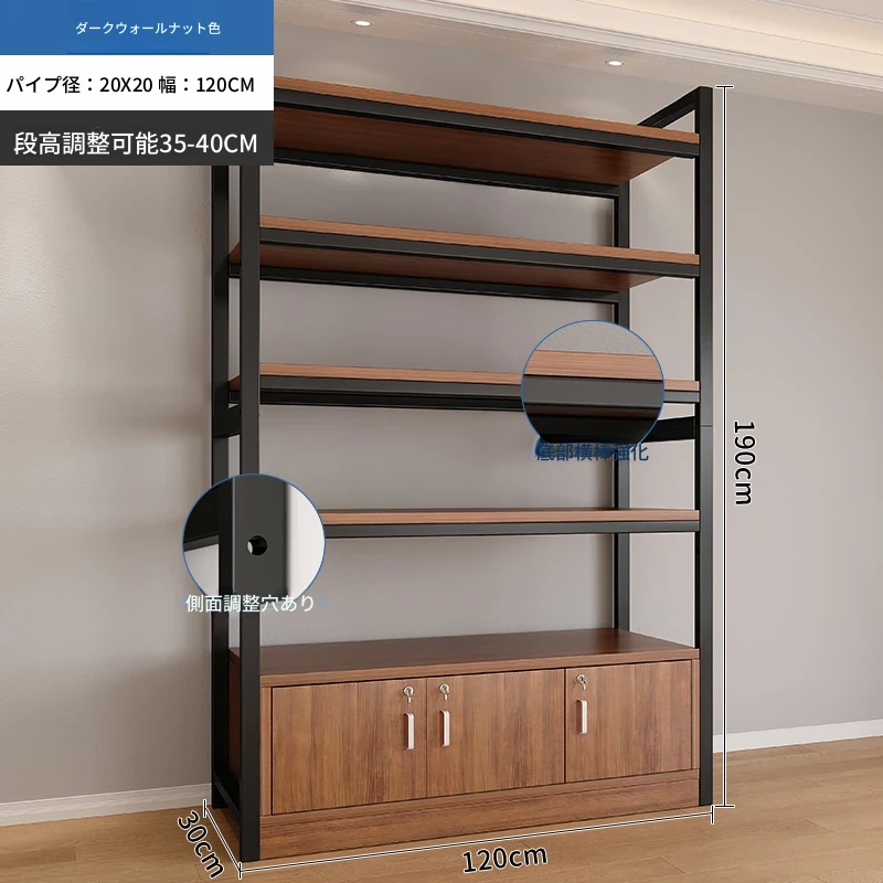 【35-40層高 ダブルボトム横棒】深胡桃+黒フレーム五層ラック120CM