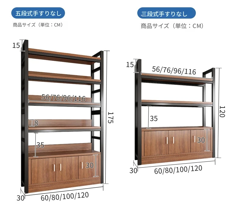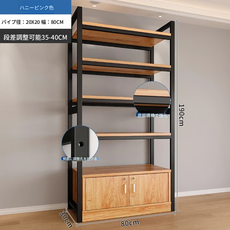 【35-40層高 ダブルボトム横棒】黄梨木+黒フレーム五層ラック80CM