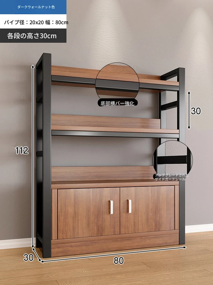 【35-40層高 ダブルボトム横棒】深胡桃+黒フレーム四層ラック80CM