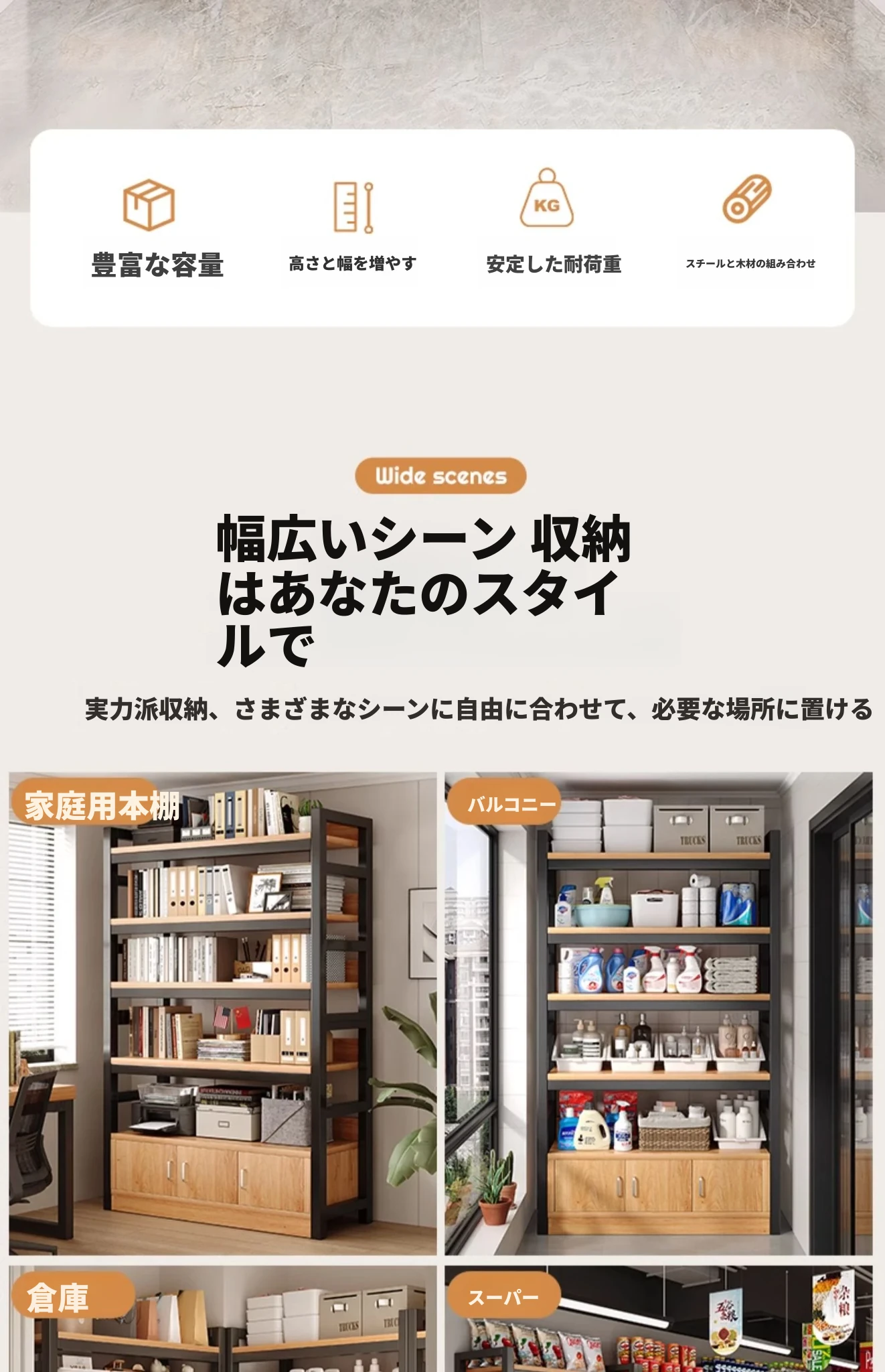 リビング用スチールウッド多層収納ラック - おしゃれな物品ディスプレイキャビネット、書棚、収納キャビネット、バルコニー用ストレージラックでスタイリッシュに整理整頓!