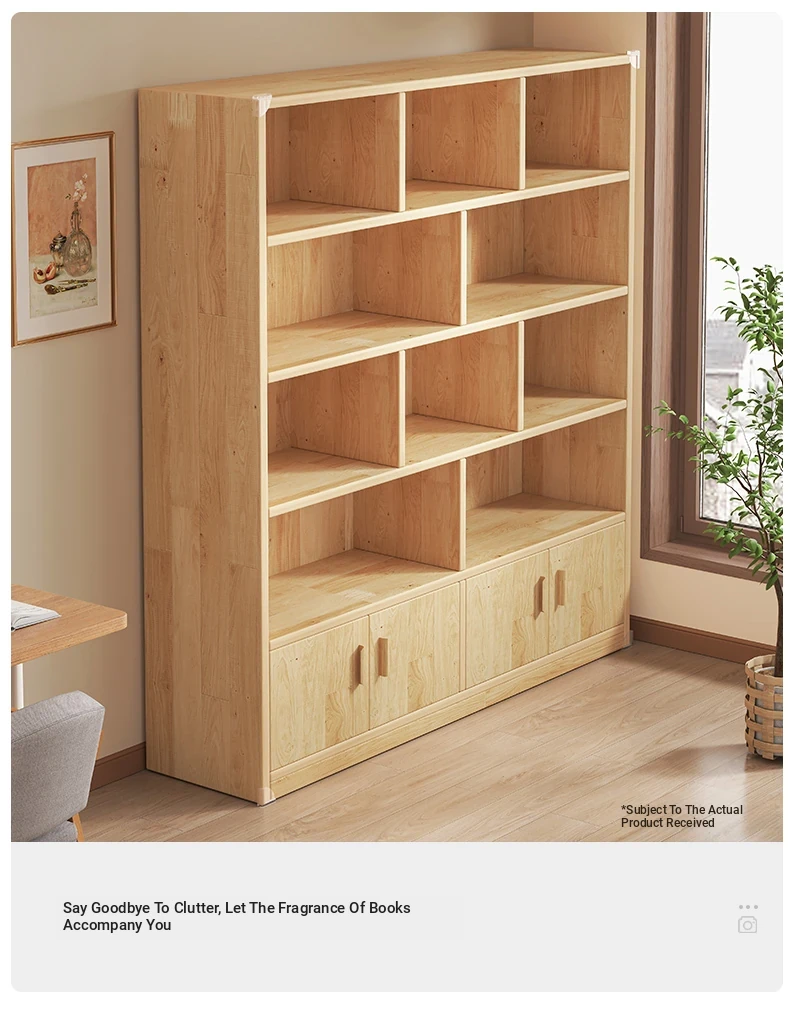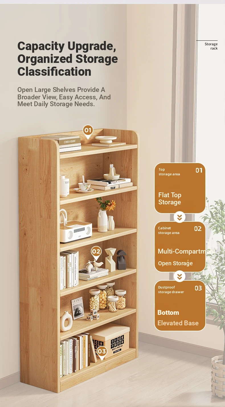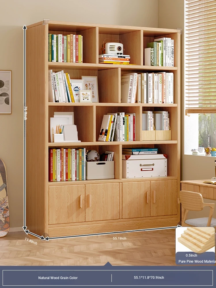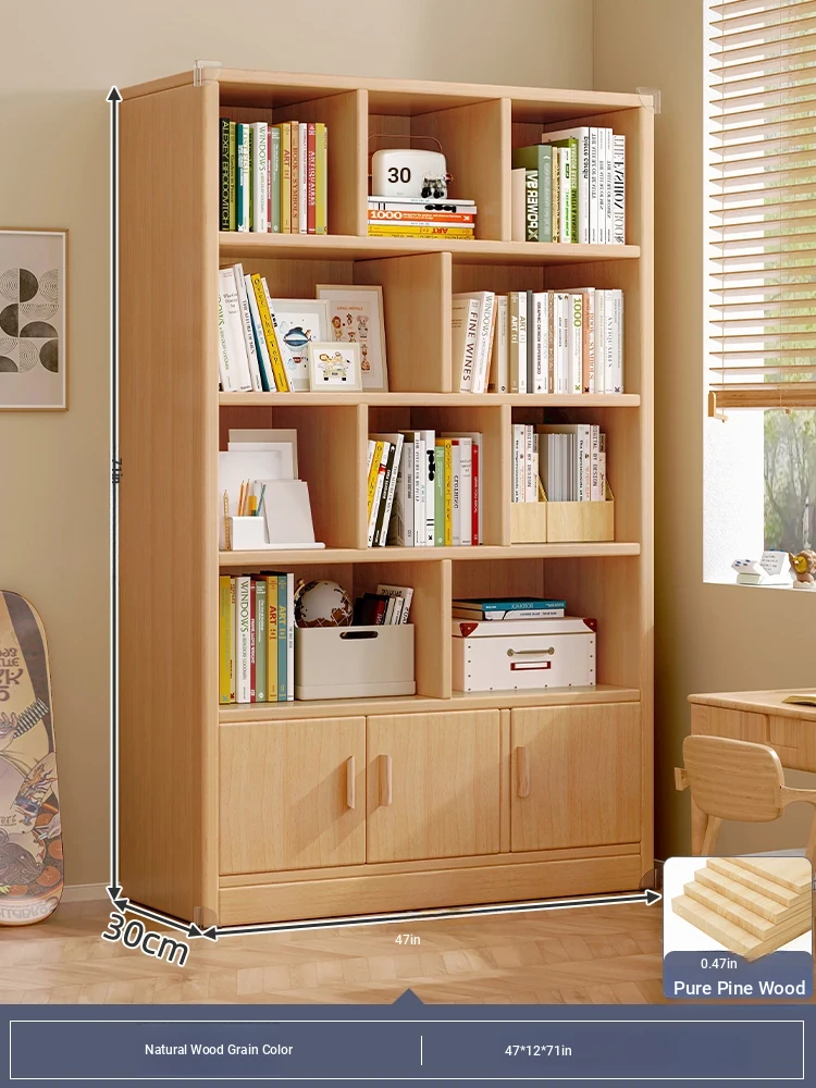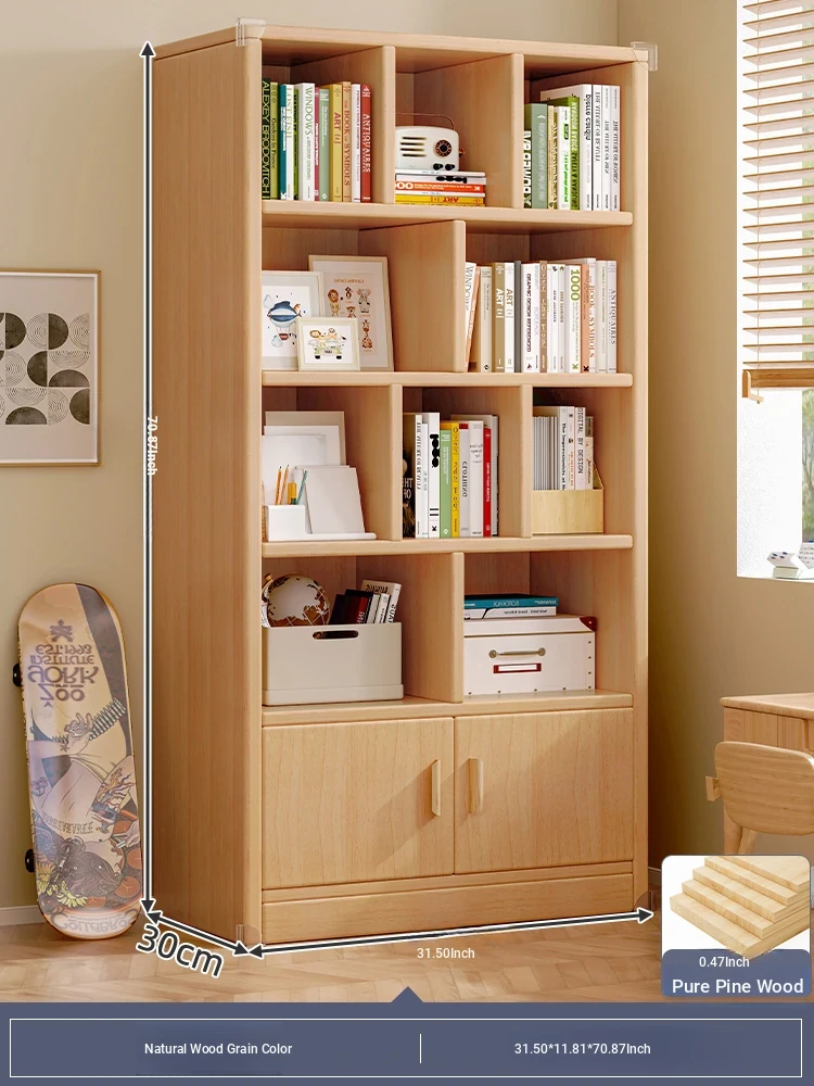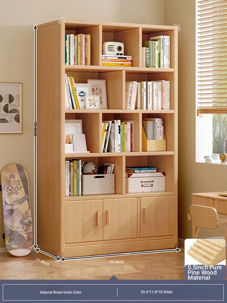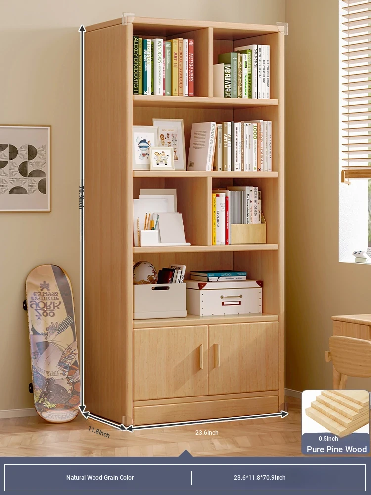 Stylish Wall-Mounted Solid Wood Bookshelf and Storage Cabinet - Compact Floor-Standing Organizer for Home Use, Perfect for Small Spaces and Efficient Storage Solutions