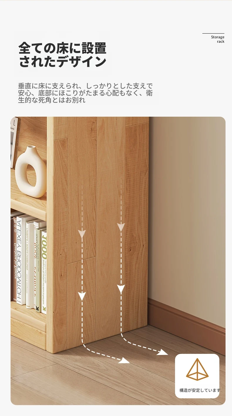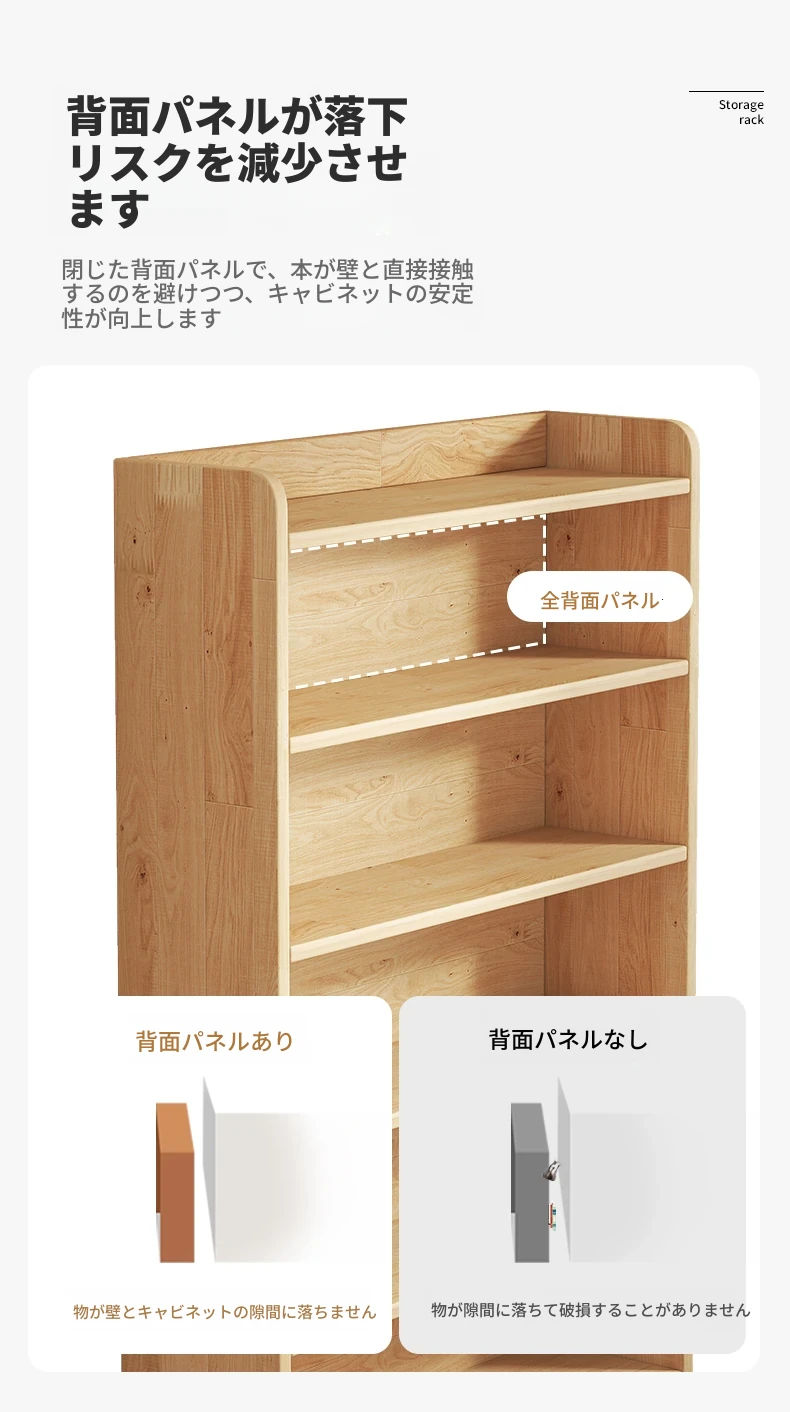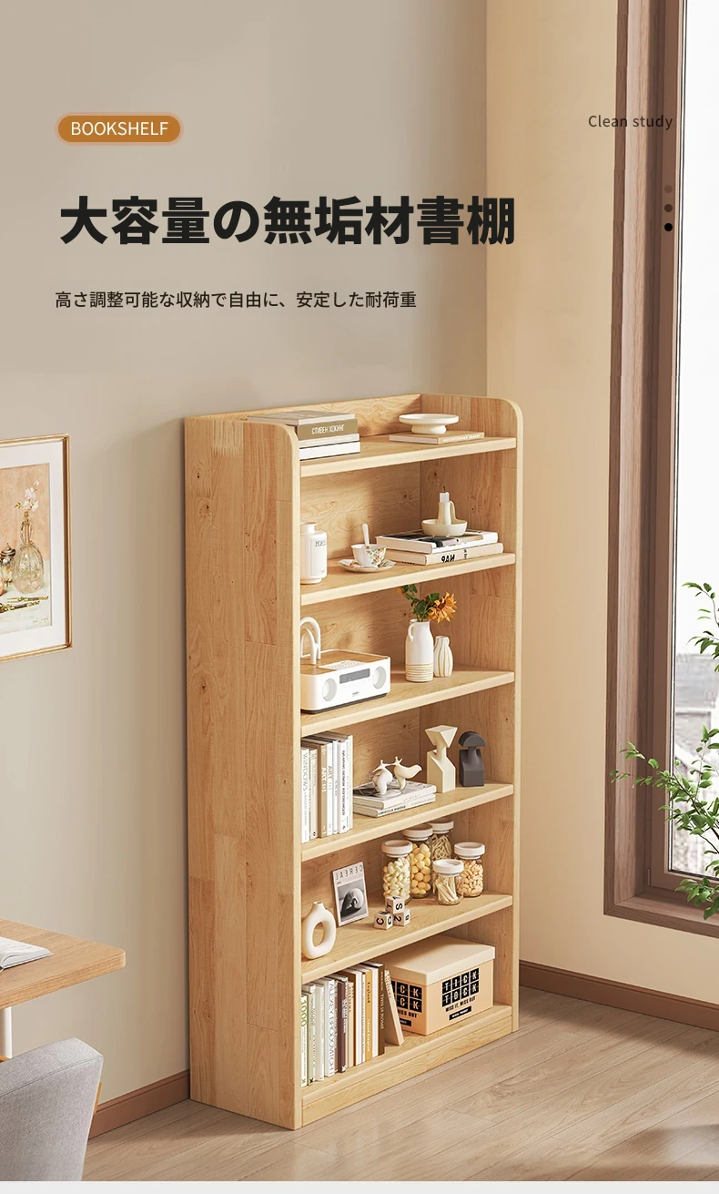 壁掛け対応!実用的な無垢材のブックシェルフ&ストレージキャビネット。省スペースの小型本棚で、家庭の収納に最適!おしゃれで機能的なデザインで、お部屋をスッキリ整理整頓!