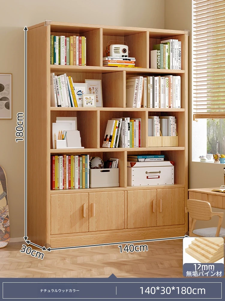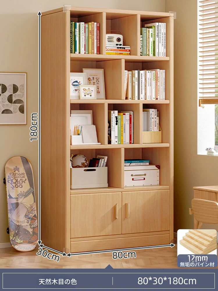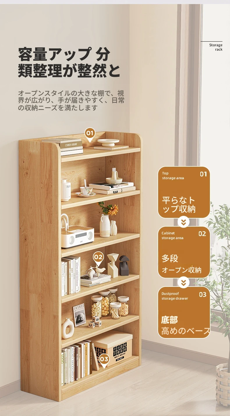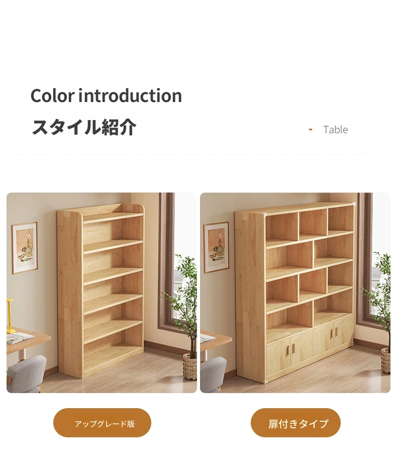 壁掛け対応!実用的な無垢材のブックシェルフ&ストレージキャビネット。省スペースの小型本棚で、家庭の収納に最適!おしゃれで機能的なデザインで、お部屋をスッキリ整理整頓!