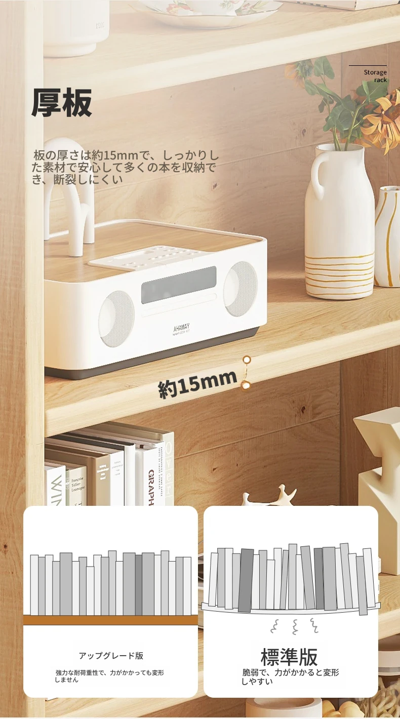 【アップグレード版厚手15MM】4層83*24*106CM ⭐100%輸入無塗装パイン材