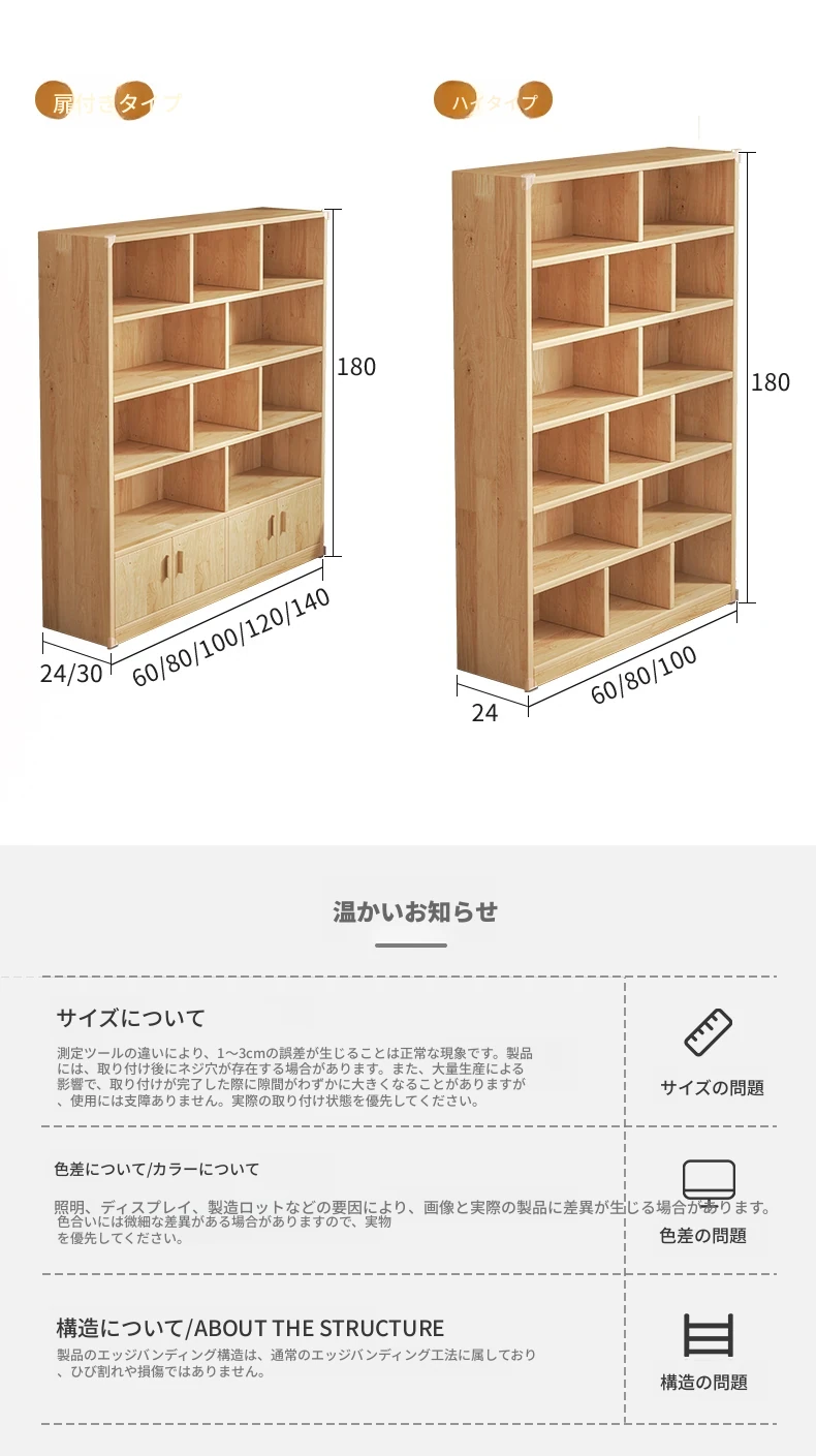 【アップグレード版厚手15MM】4層63*24*106CM ⭐100%輸入無塗装パイン材