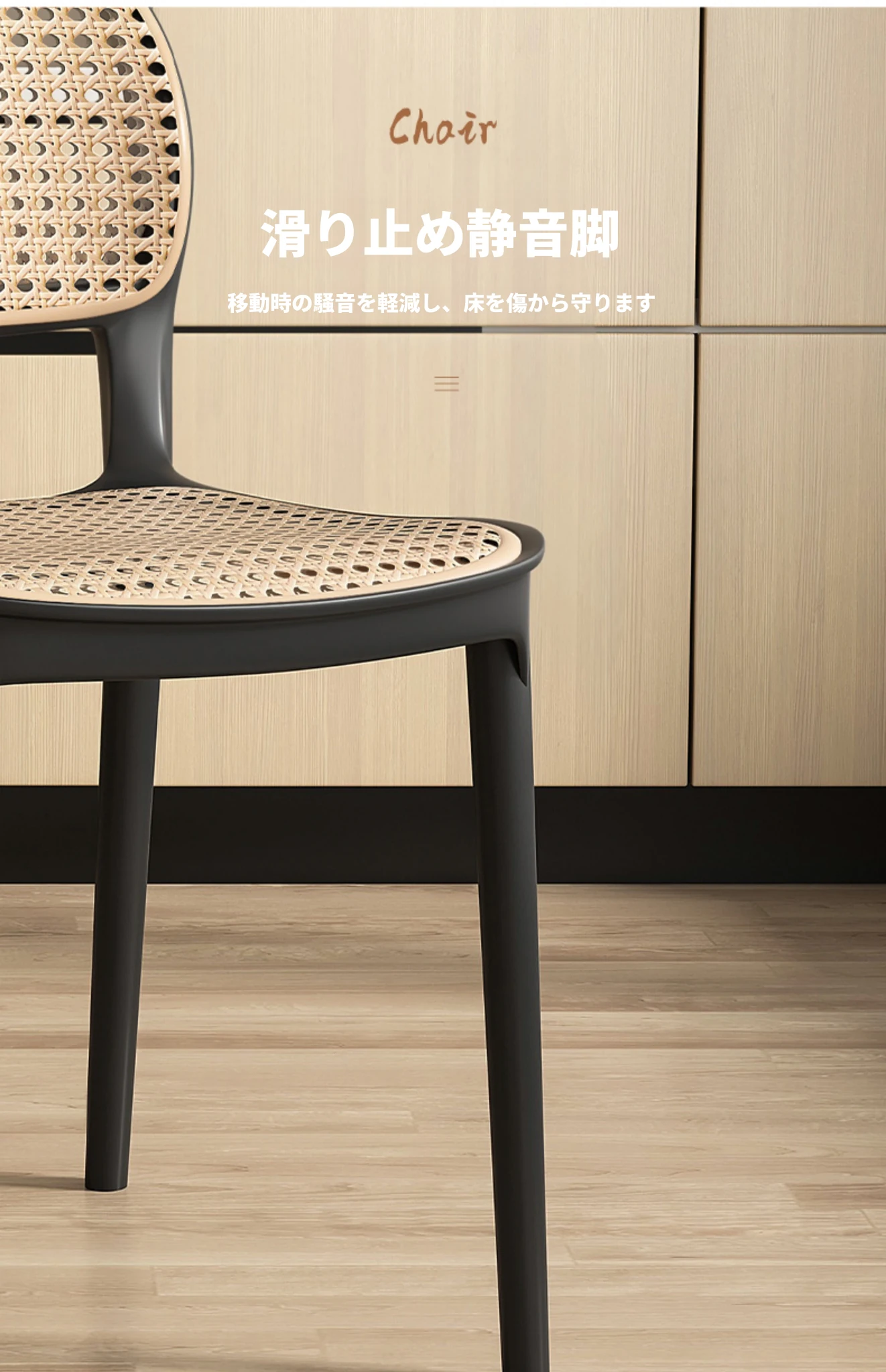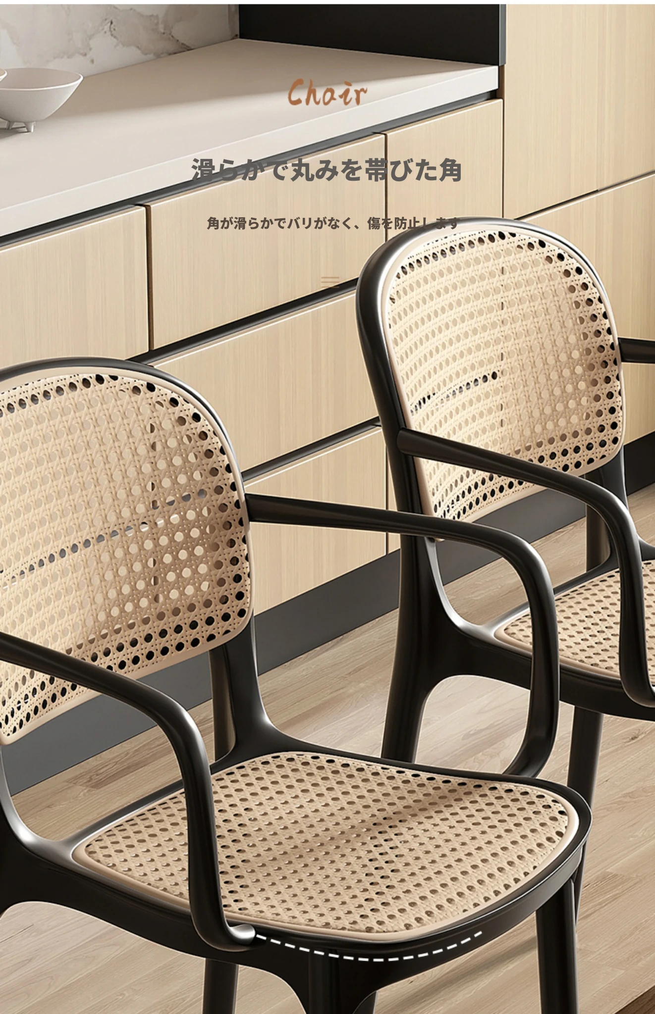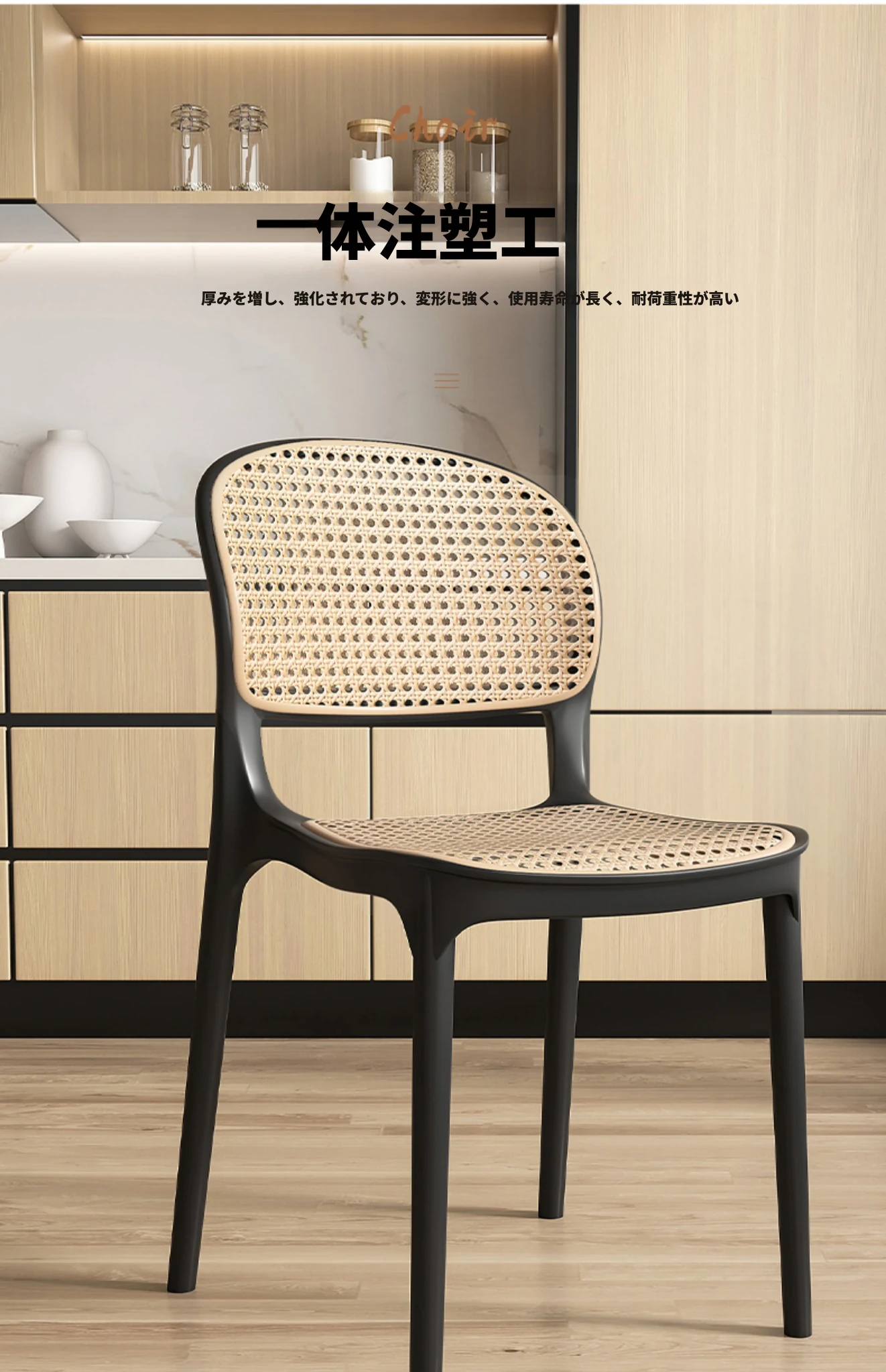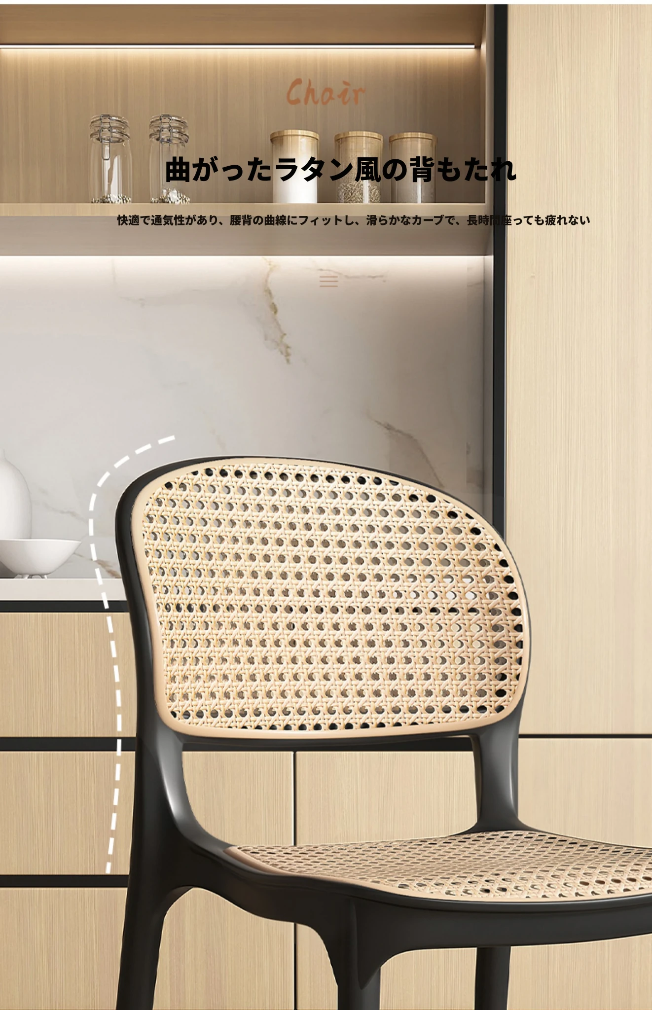 厚手付きプラスチックチェア|家庭用・スタッキング可能|北欧風ラタンデザイン|アウトドアや大人数の食事に最適なダイニングチェア!快適な座り心地で、あなたの生活空間に彩りを加えます!