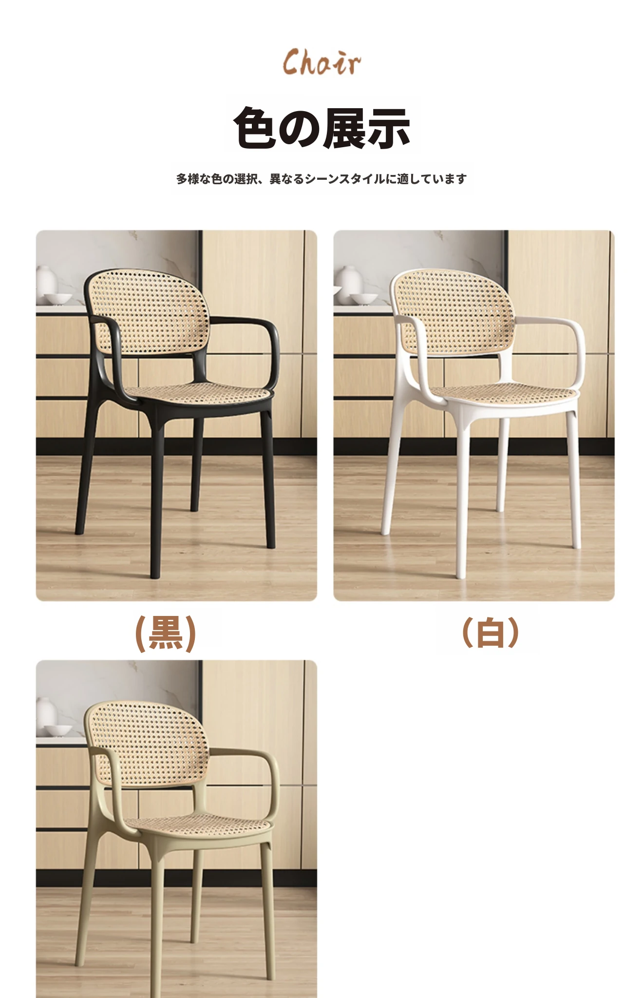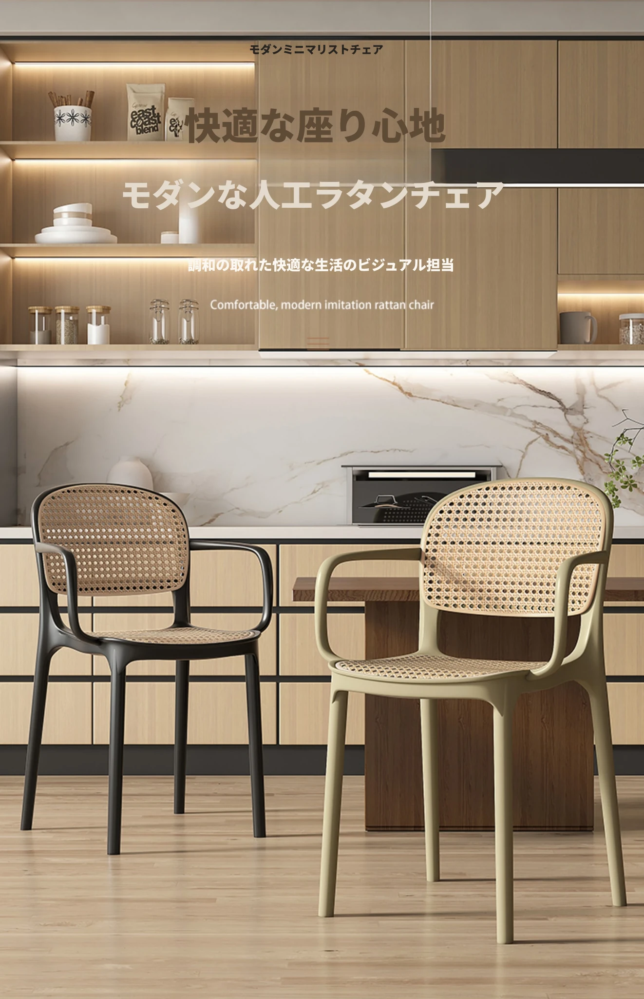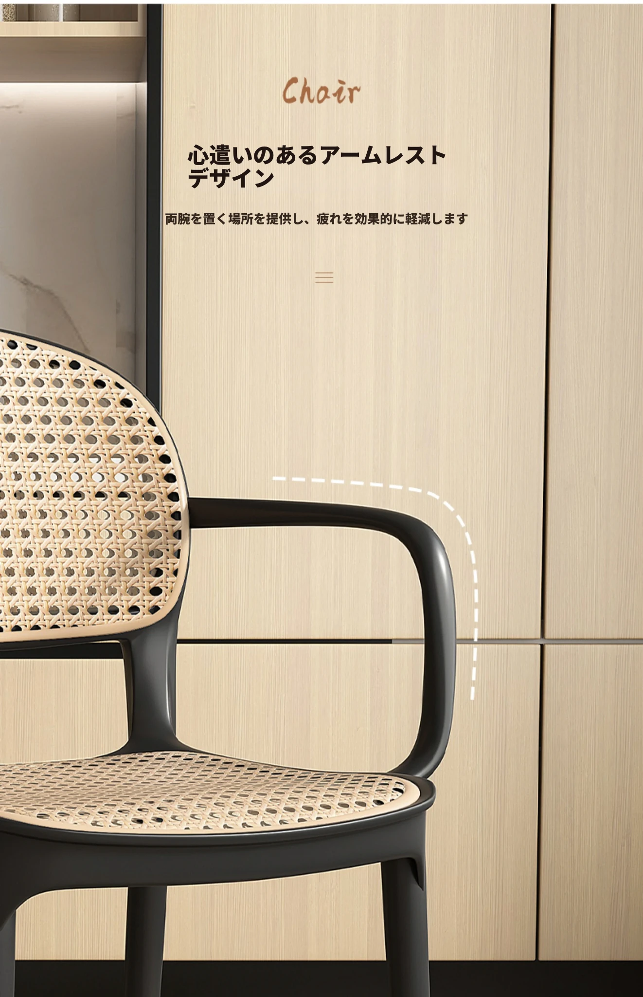 厚手付きプラスチックチェア|家庭用・スタッキング可能|北欧風ラタンデザイン|アウトドアや大人数の食事に最適なダイニングチェア!快適な座り心地で、あなたの生活空間に彩りを加えます!