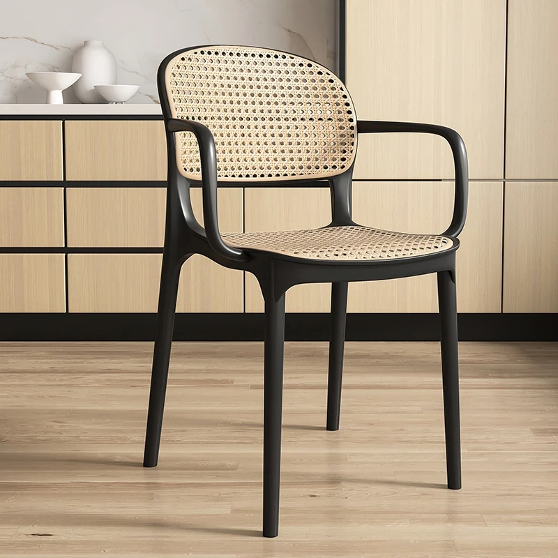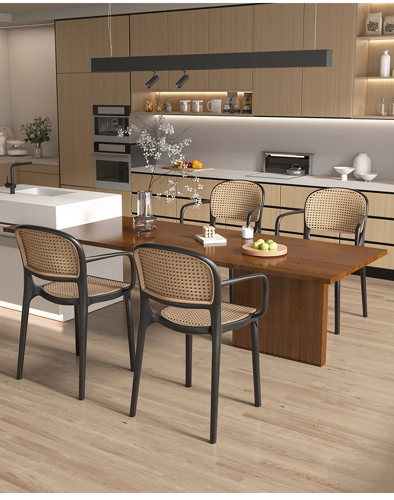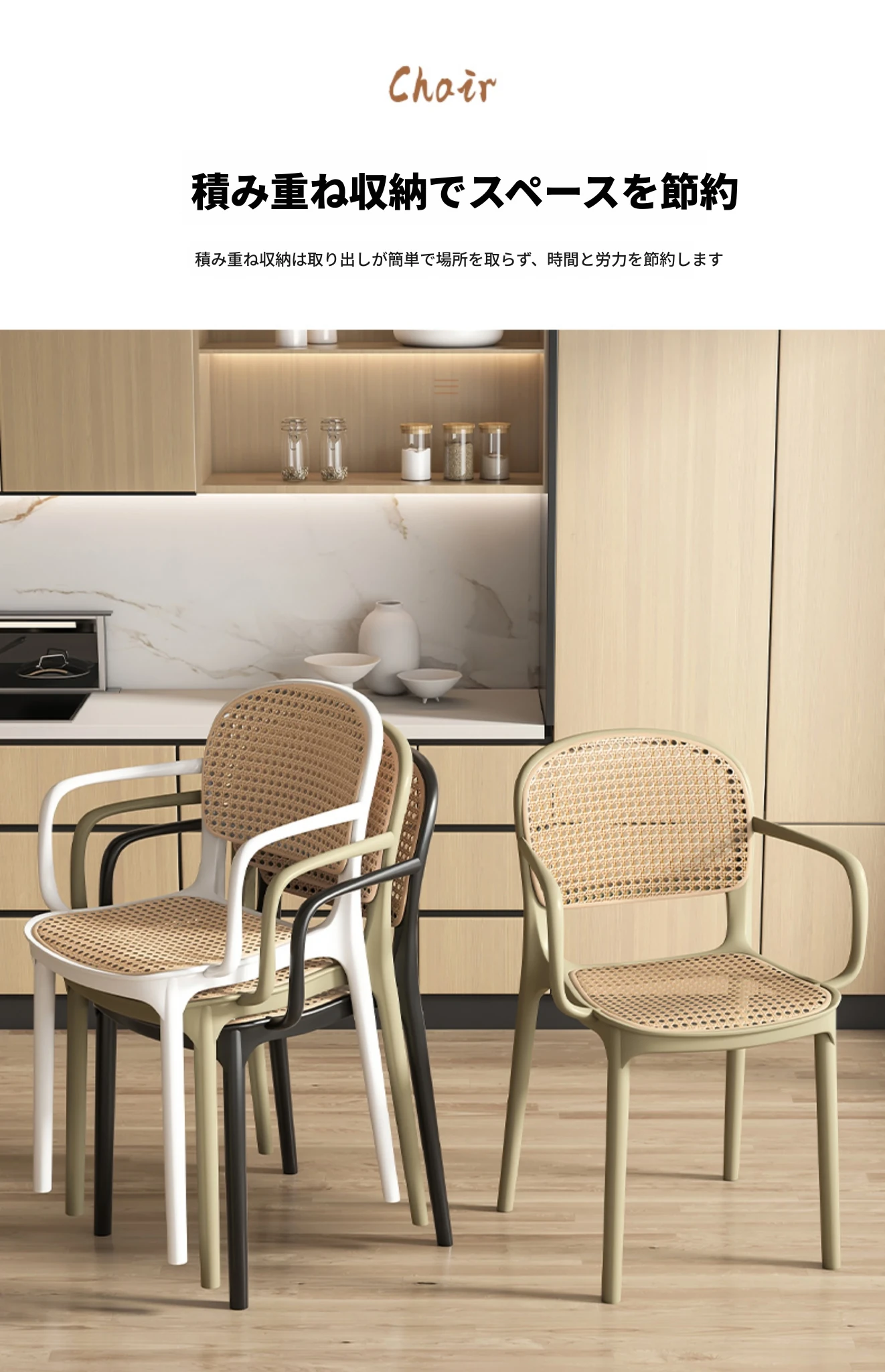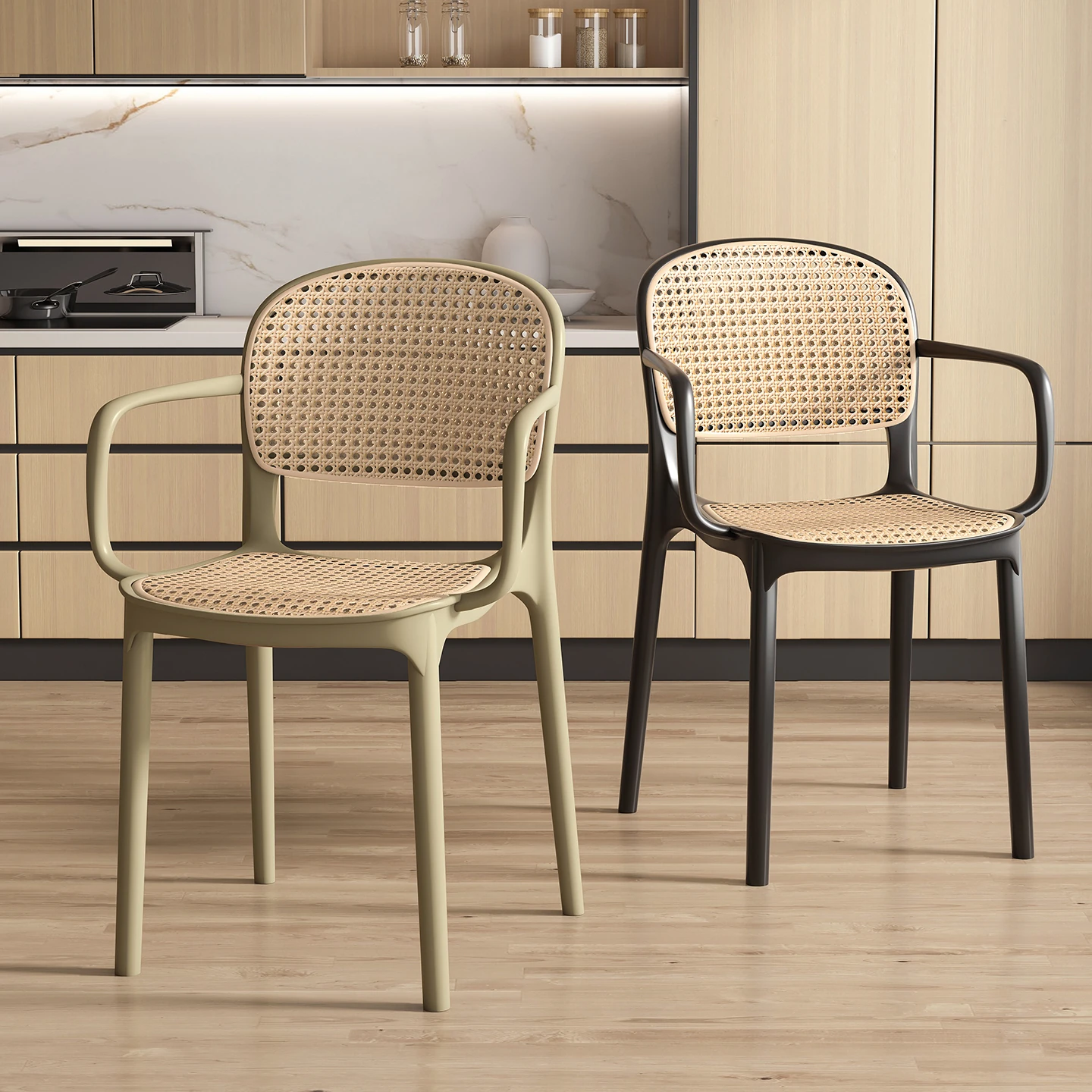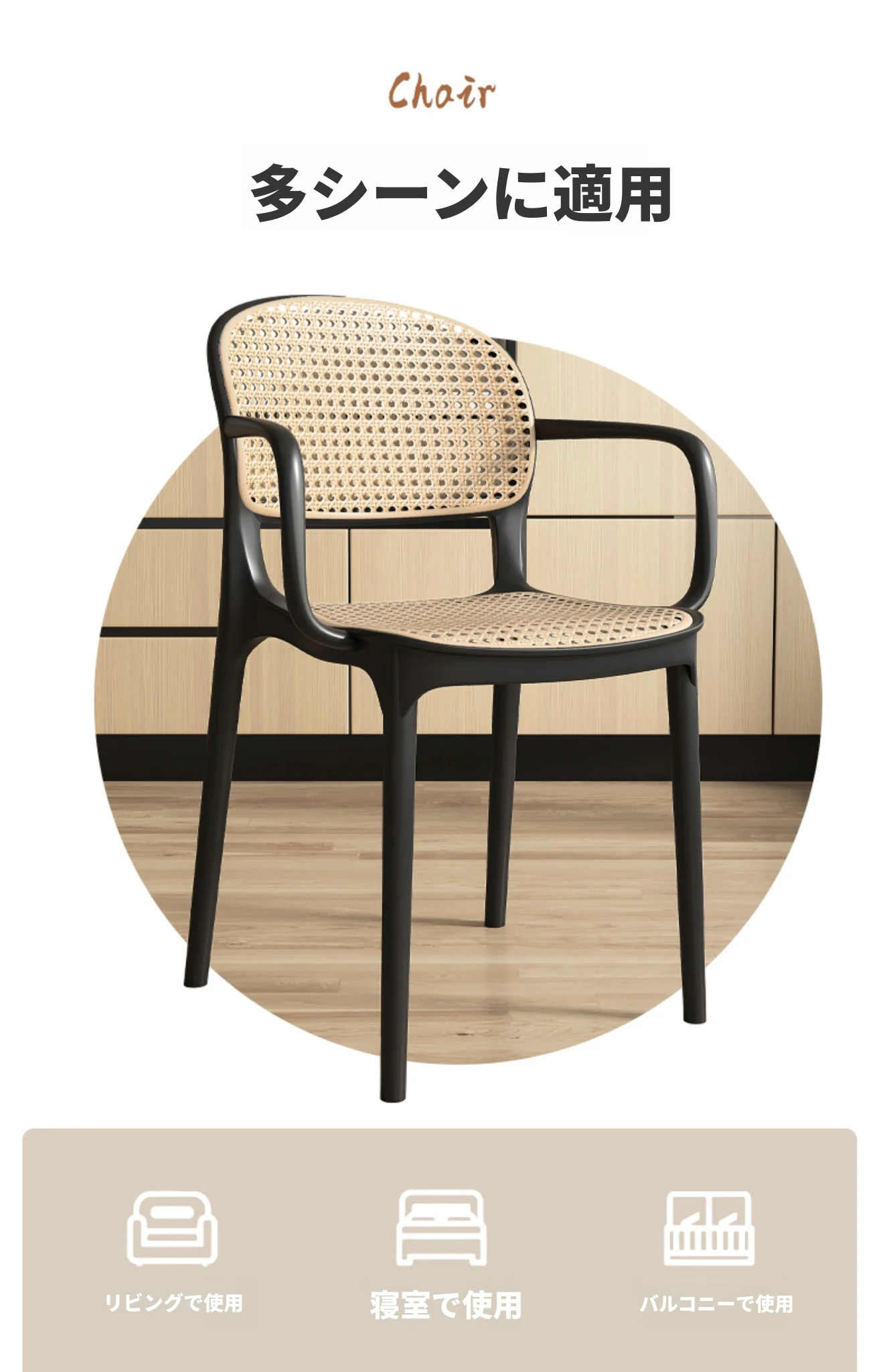 厚手付きプラスチックチェア|家庭用・スタッキング可能|北欧風ラタンデザイン|アウトドアや大人数の食事に最適なダイニングチェア!快適な座り心地で、あなたの生活空間に彩りを加えます!