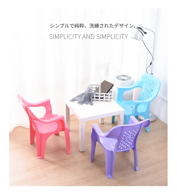 厚手すり付きプラスチックチェア|家庭用・屋外・ビーチでのリラックスに最適!シンプルなデザインでオフィスや打ち合わせにもぴったり!耐久性抜群、快適な座り心地を提供します。