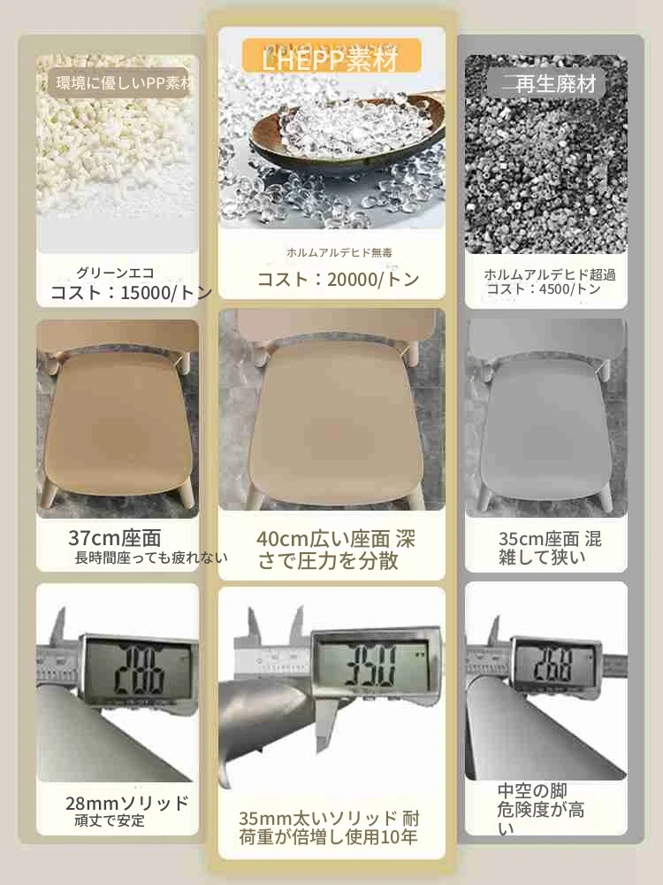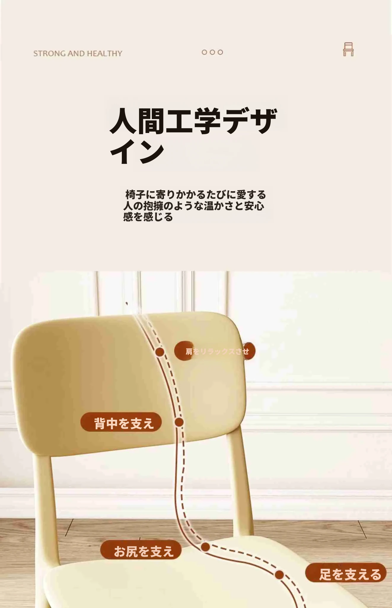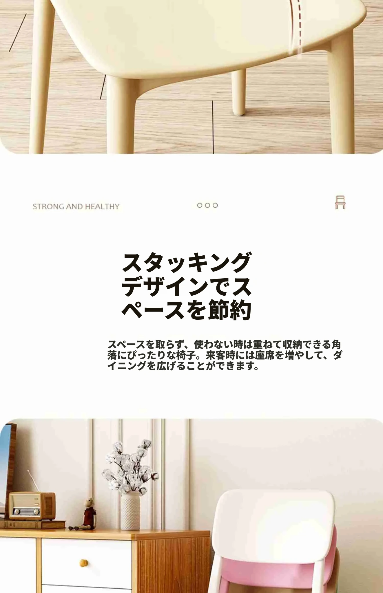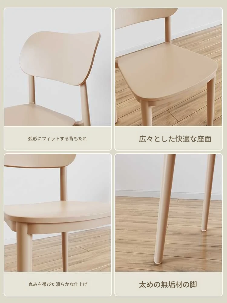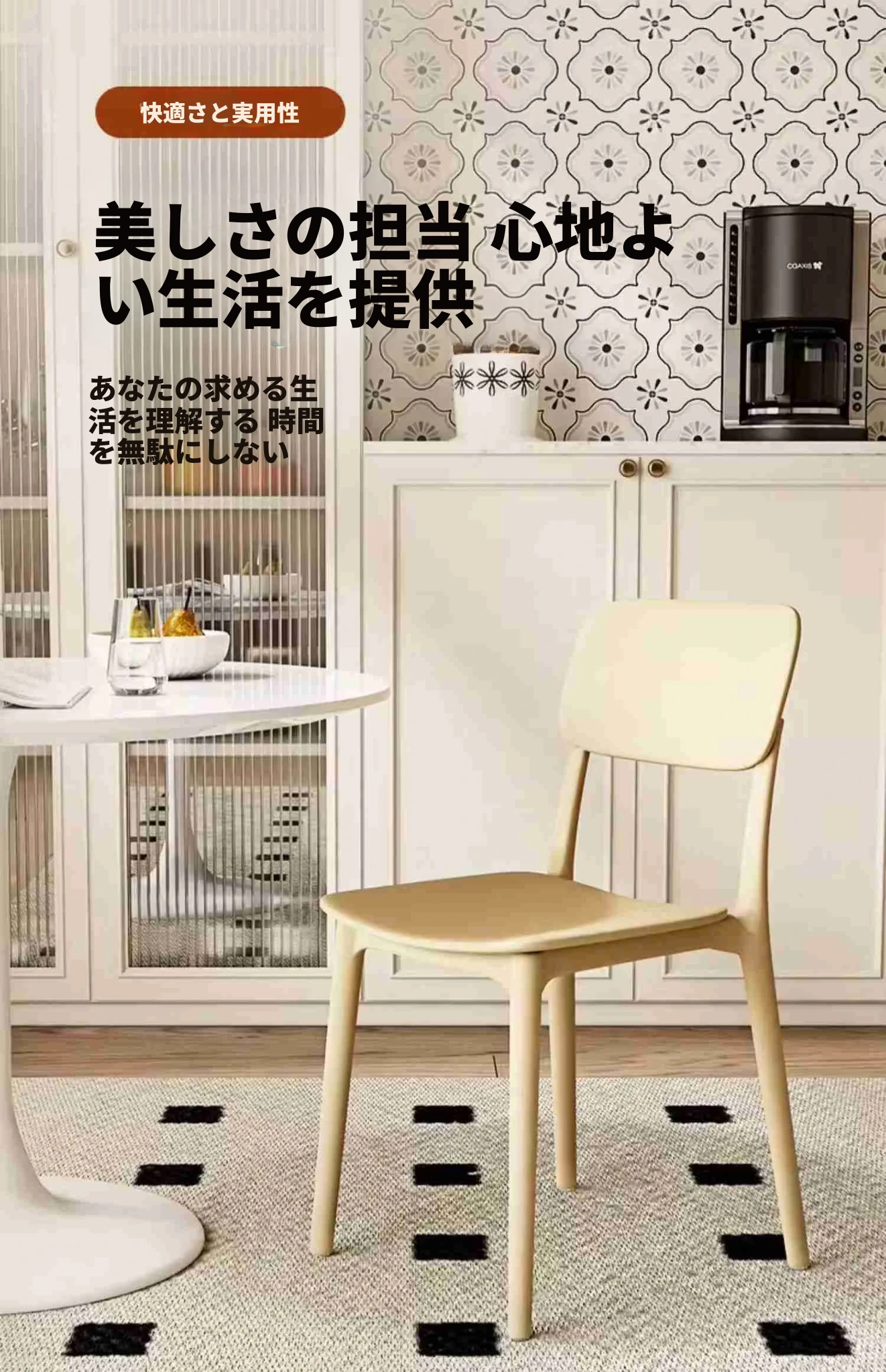 厚手のプラスチック製チェア|快適な座り心地|北欧スタイルのシンプルデザイン|バルコニーやダイニングに最適|長時間の使用も安心!