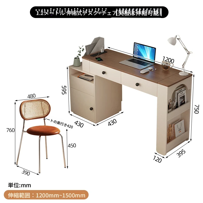 1.2メートル伸縮式デスク+チェア【ENF級全多層無垢材+拡張可能なデスクトップ】