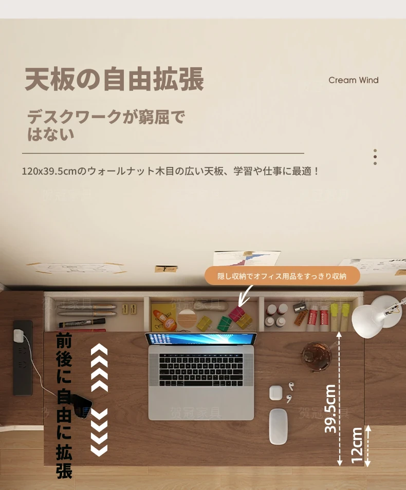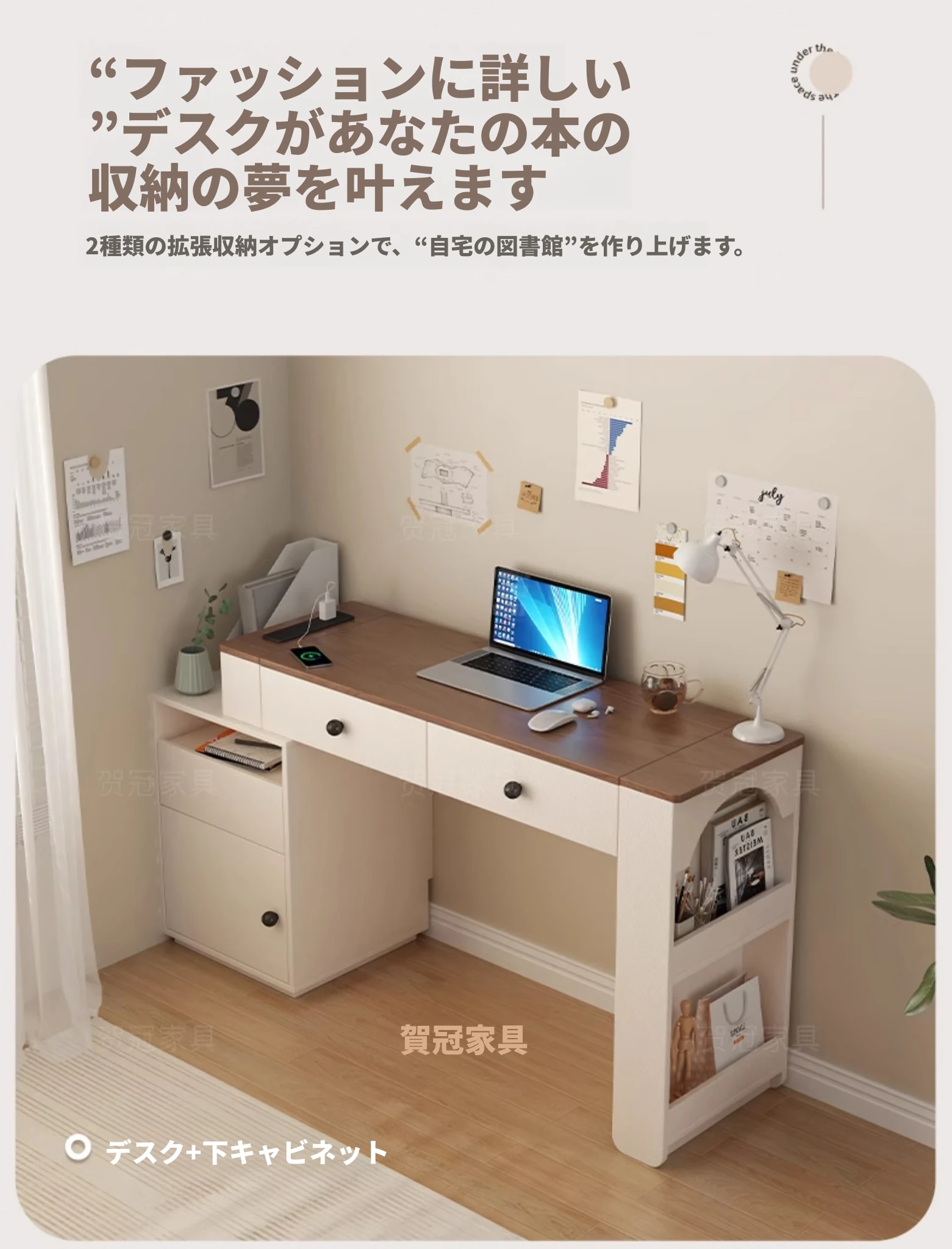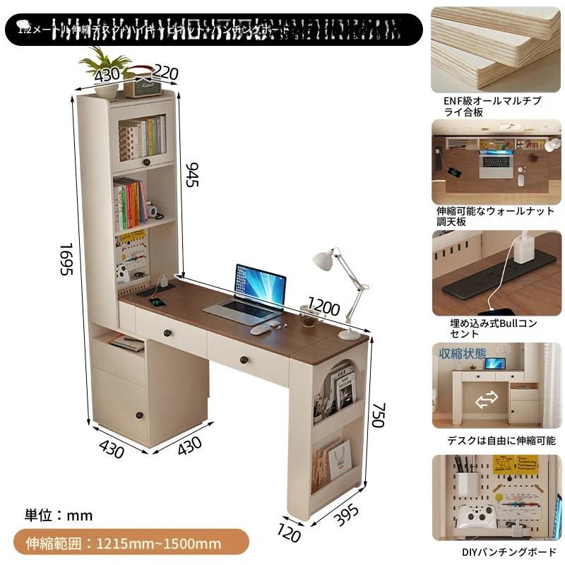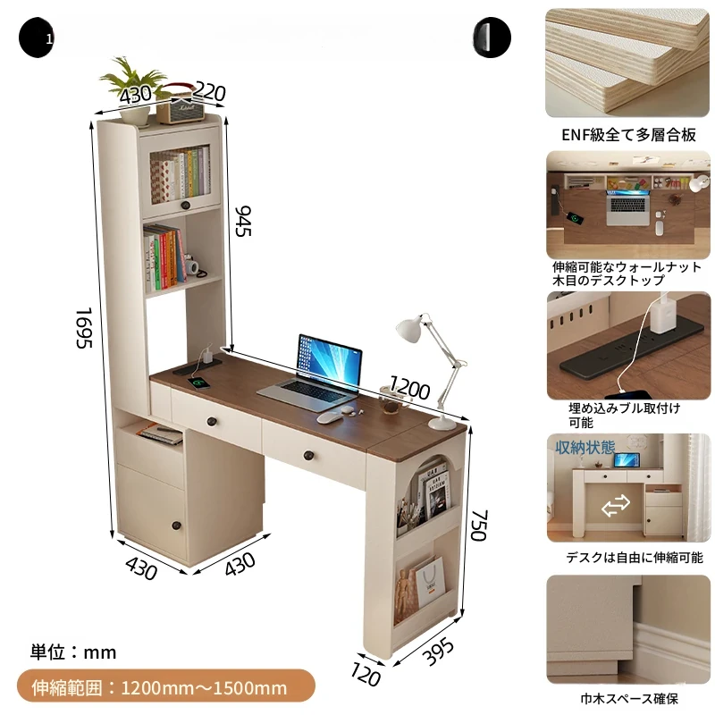 1.2メートル伸縮式デスク+ハイキャビネット【ENF級全多層無垢材+拡張可能なデスクトップ】