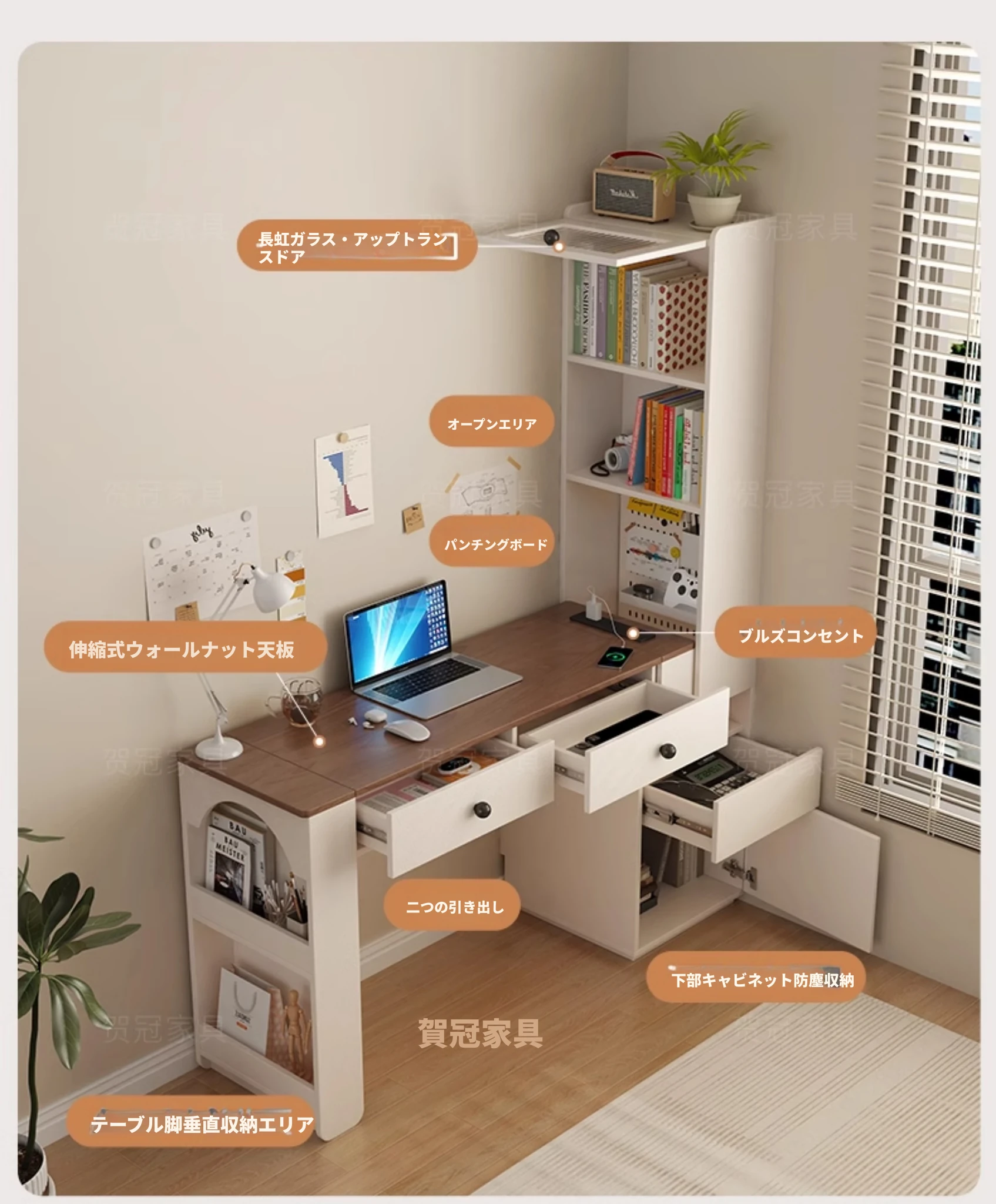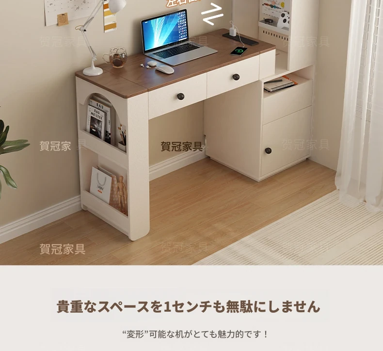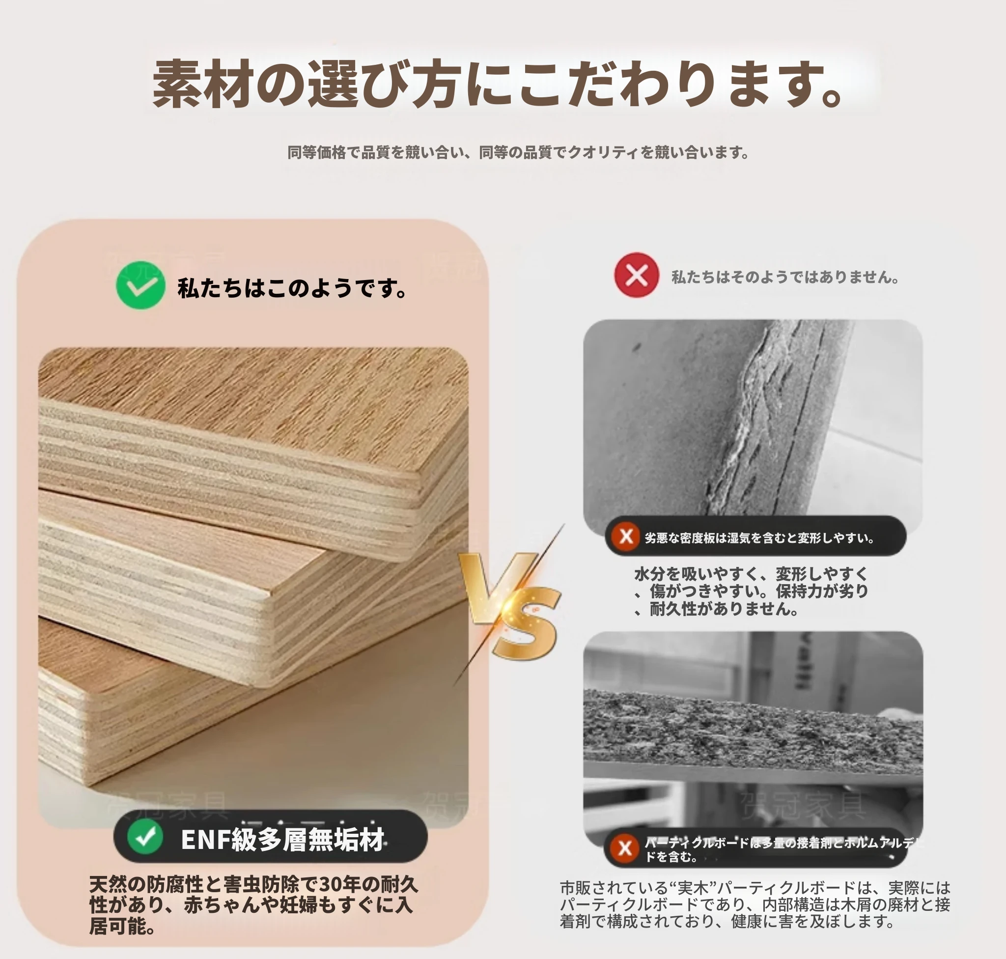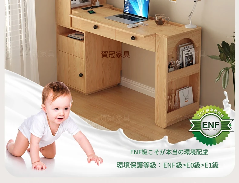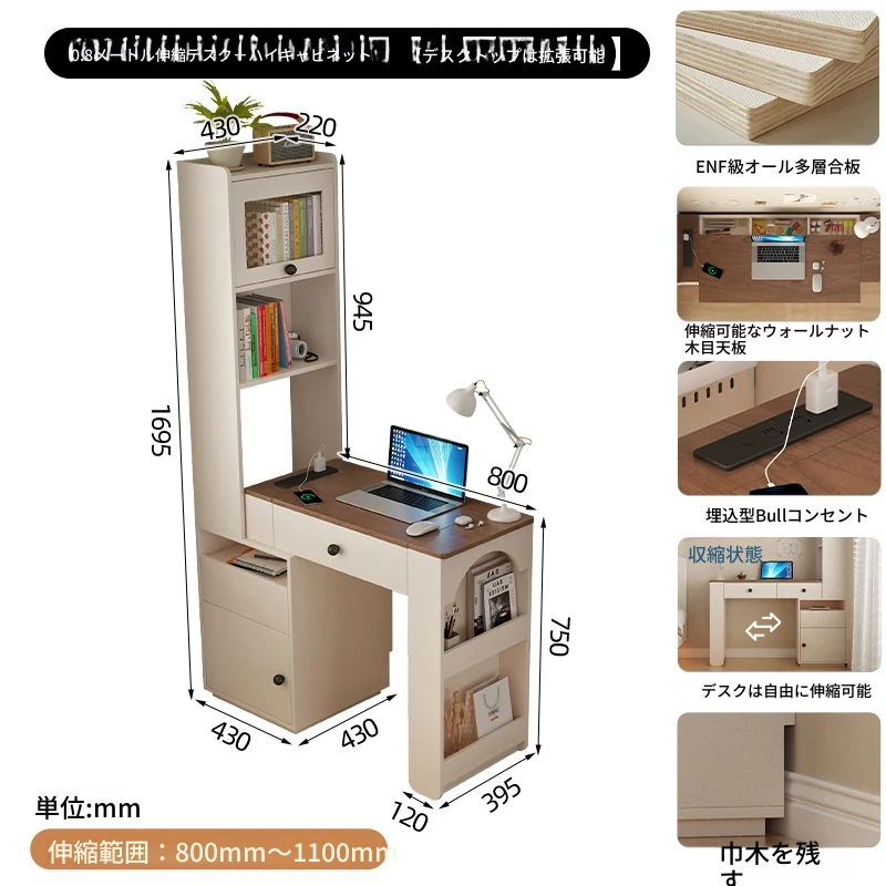 0.8メートル伸縮式デスク+ハイキャビネット【ENF級全多層無垢材+拡張可能なデスクトップ】