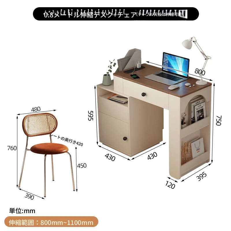 0.8メートル伸縮式デスク+チェア【ENF級全多層無垢材+拡張可能なデスクトップ】