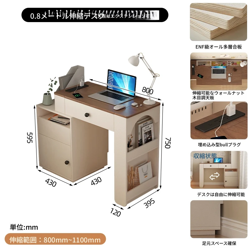 0.8メートル伸縮式デスク【ENF級全多層無垢材+拡張可能なデスクトップ】