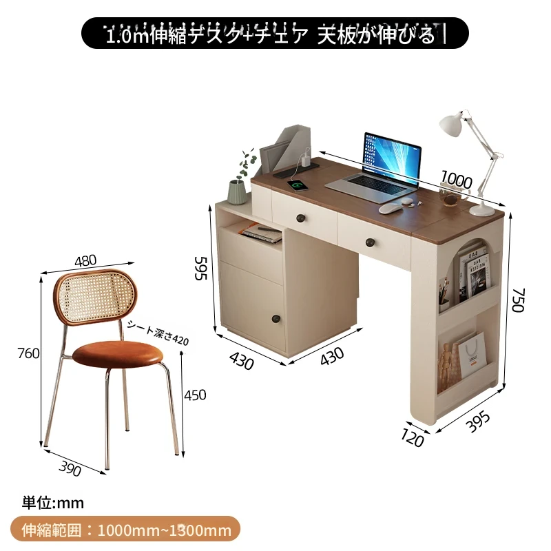 1.0メートル伸縮式デスク+チェア【ENF級全多層無垢材+拡張可能なデスクトップ】