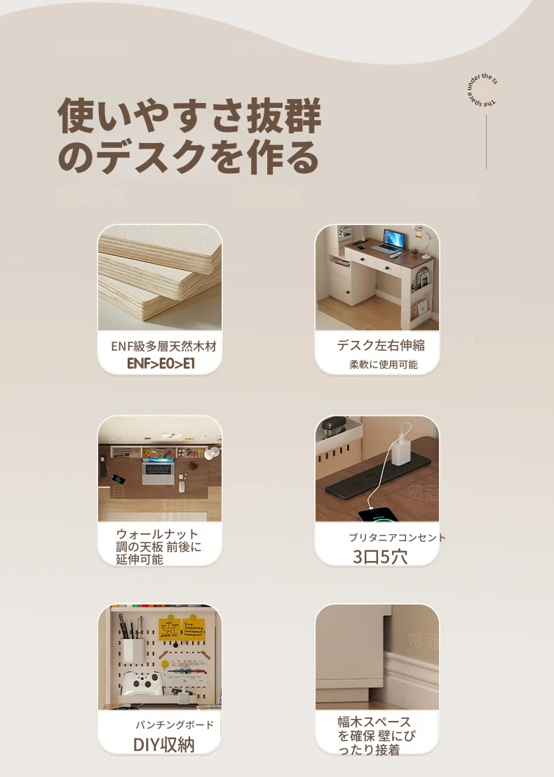 1.0メートル伸縮式デスク+ハイキャビネット+ペグボード+チェア【ENF級全多層無垢材+拡張可能なデスクトップ】