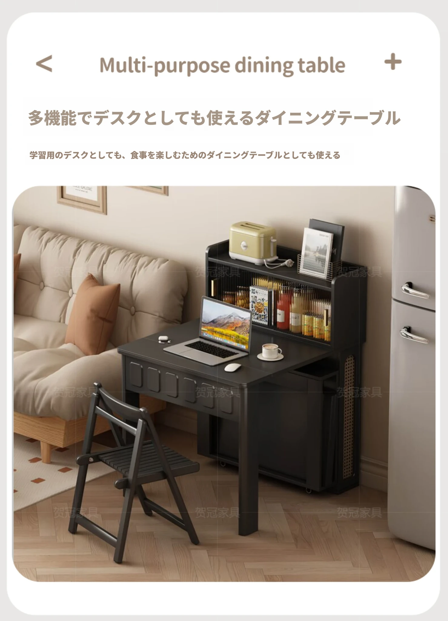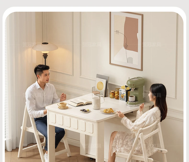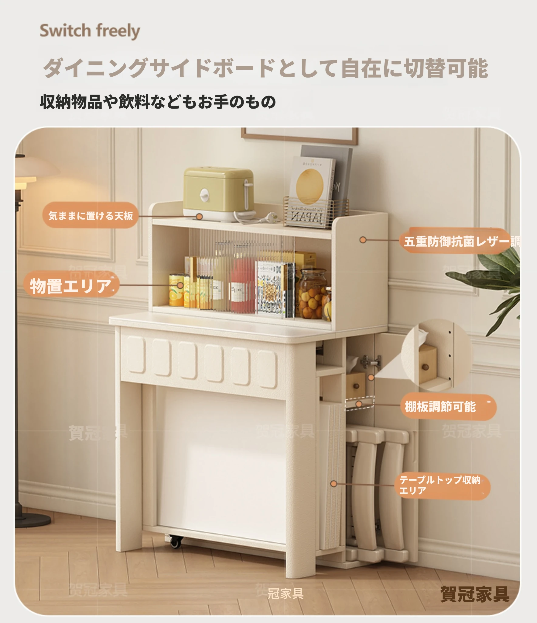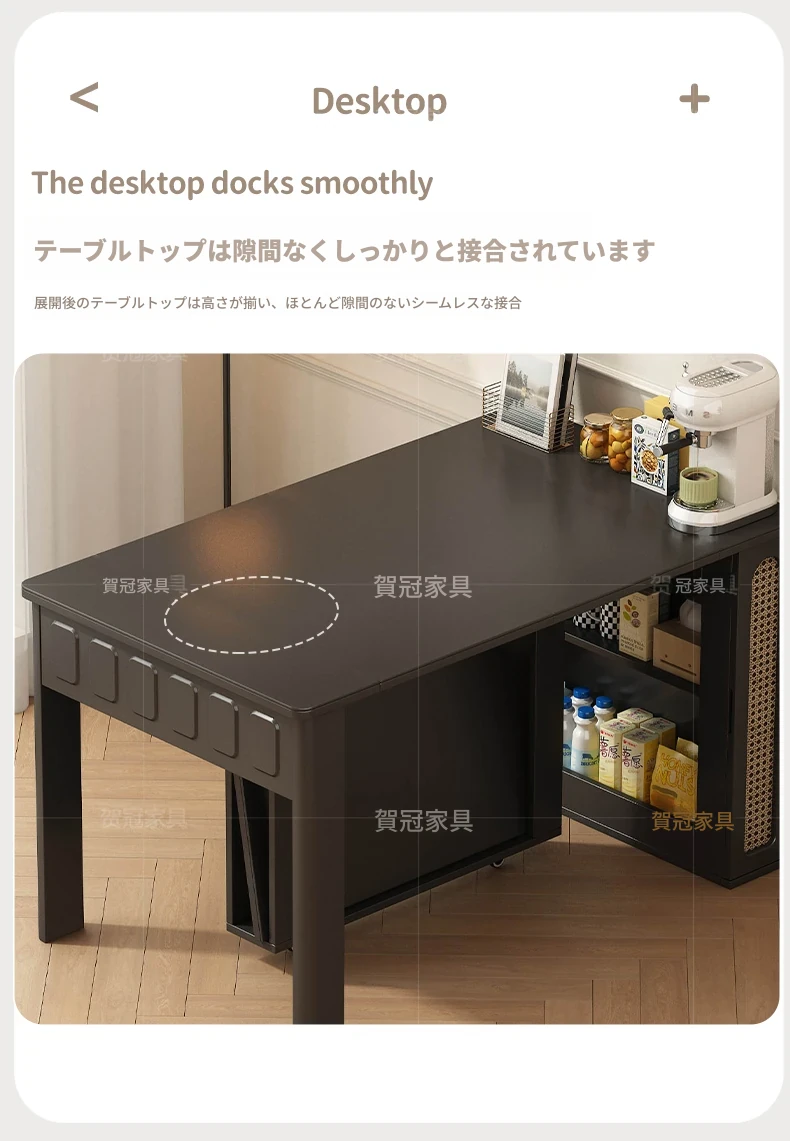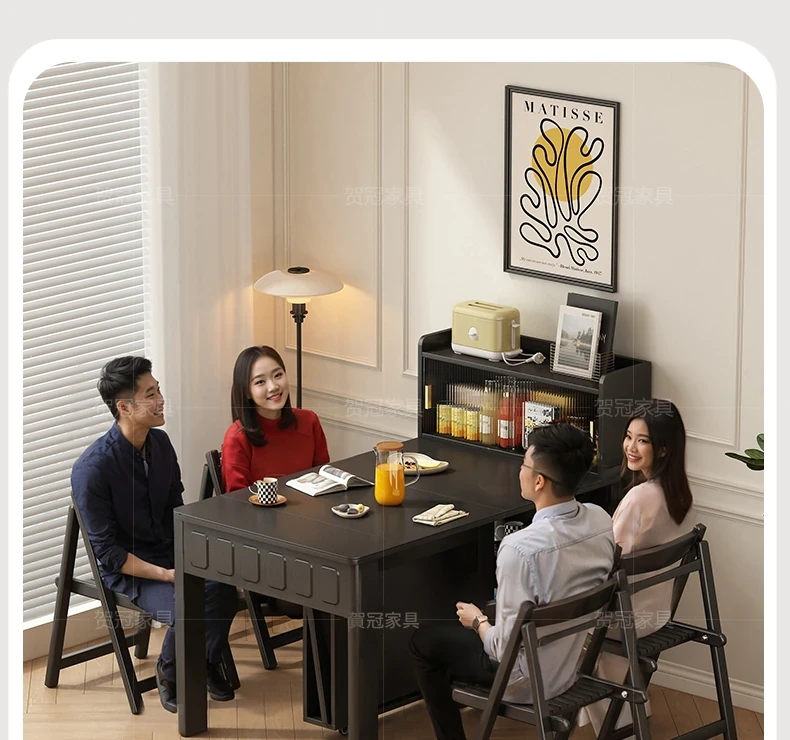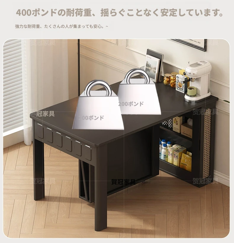 70*150cm+防塵キャビネット+折りたたみ椅子*4【レザー/隠せるダイニングチェア*2】