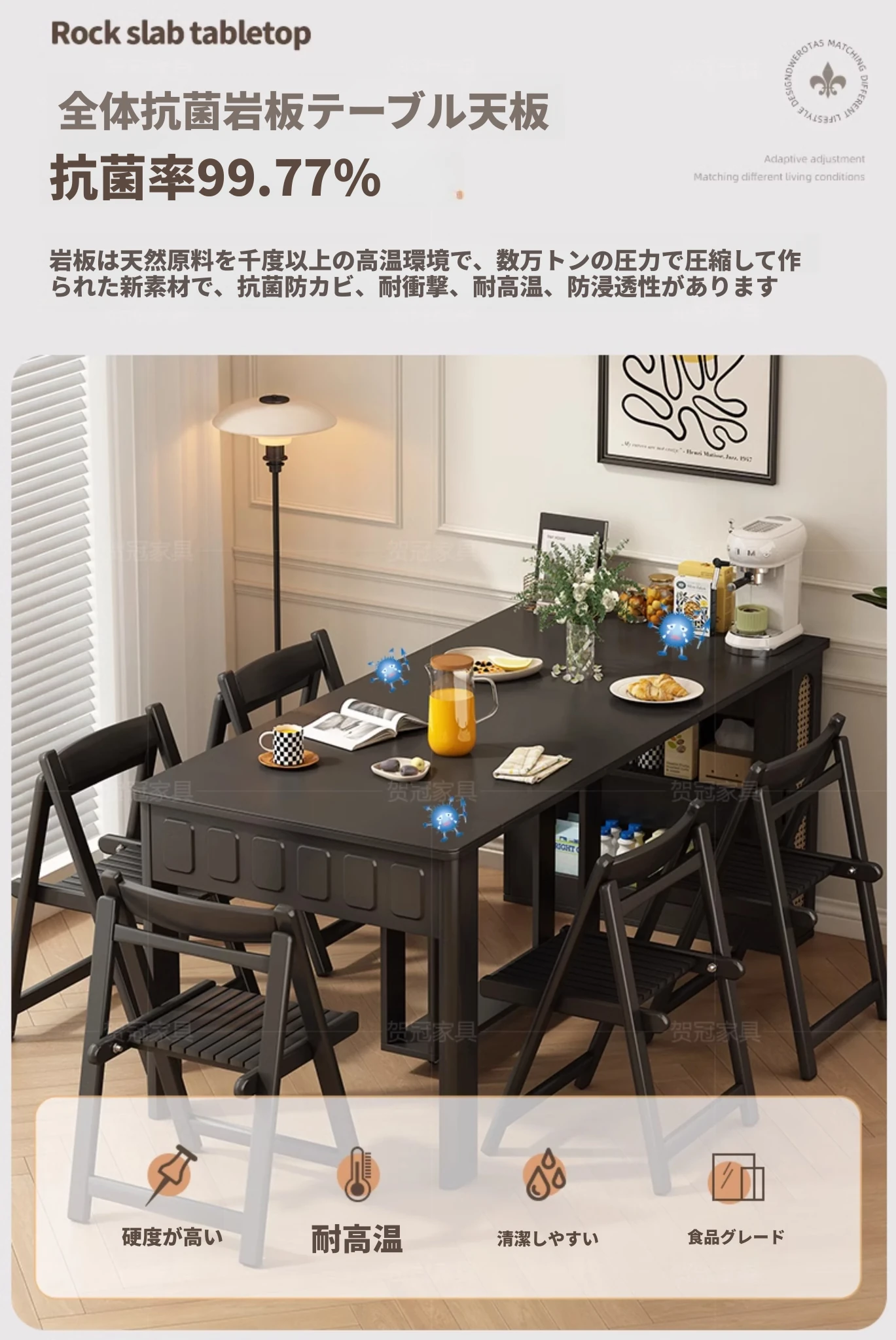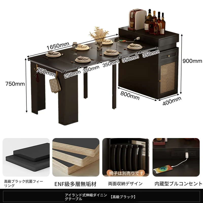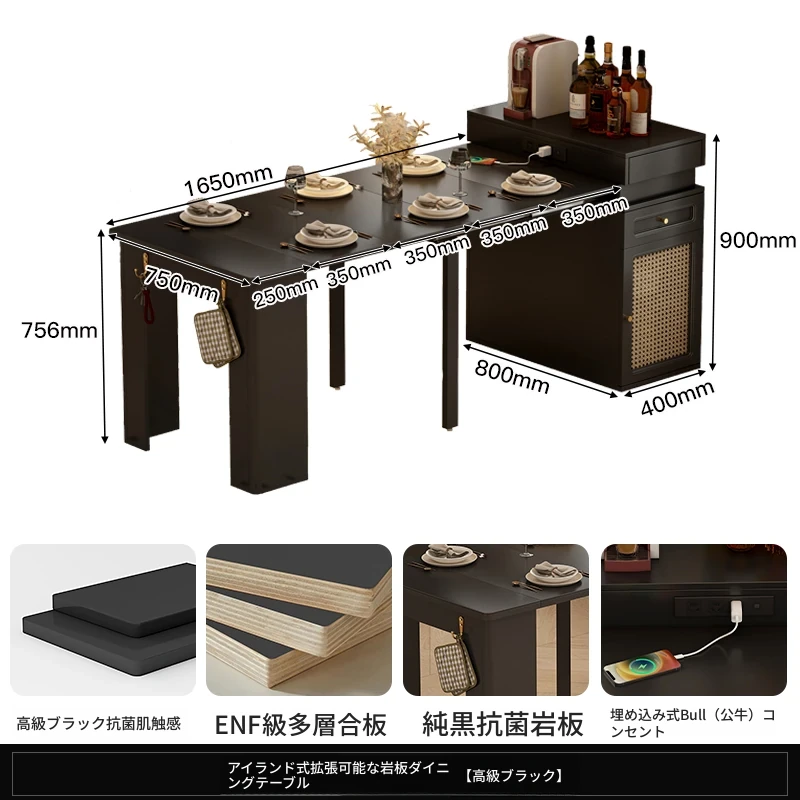 小型アイランドダイニングテーブル【抗菌岩板+五重防護抗菌ブラック】