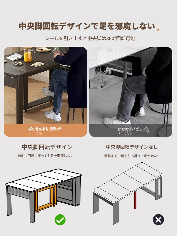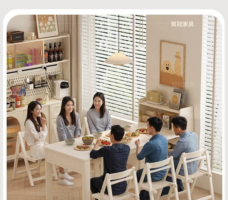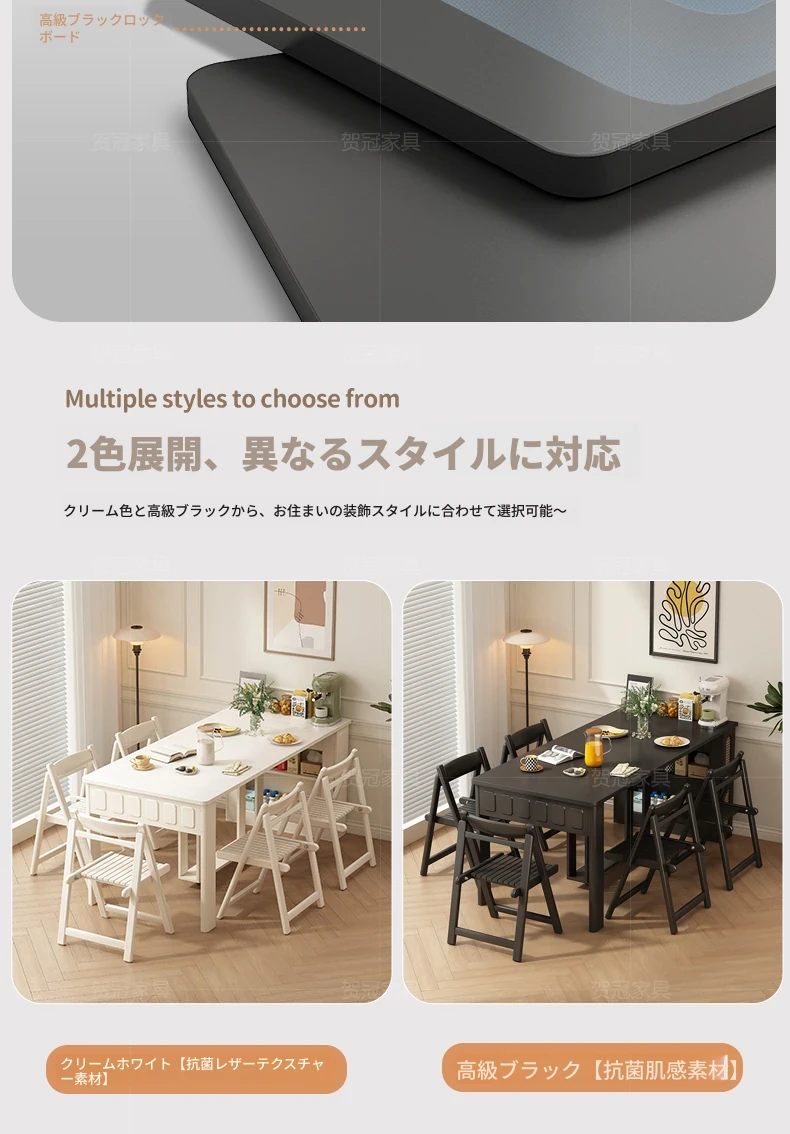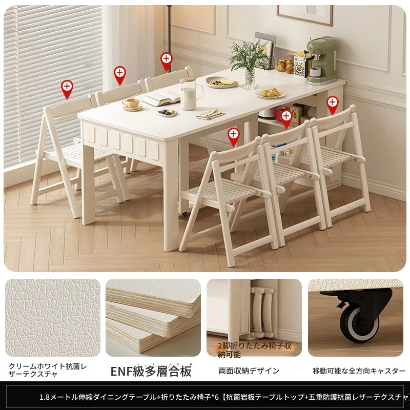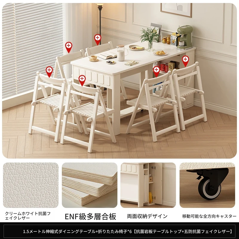 70*150cm+防塵キャビネット+折りたたみ椅子*6【レザー/隠せるダイニングチェア*2】
