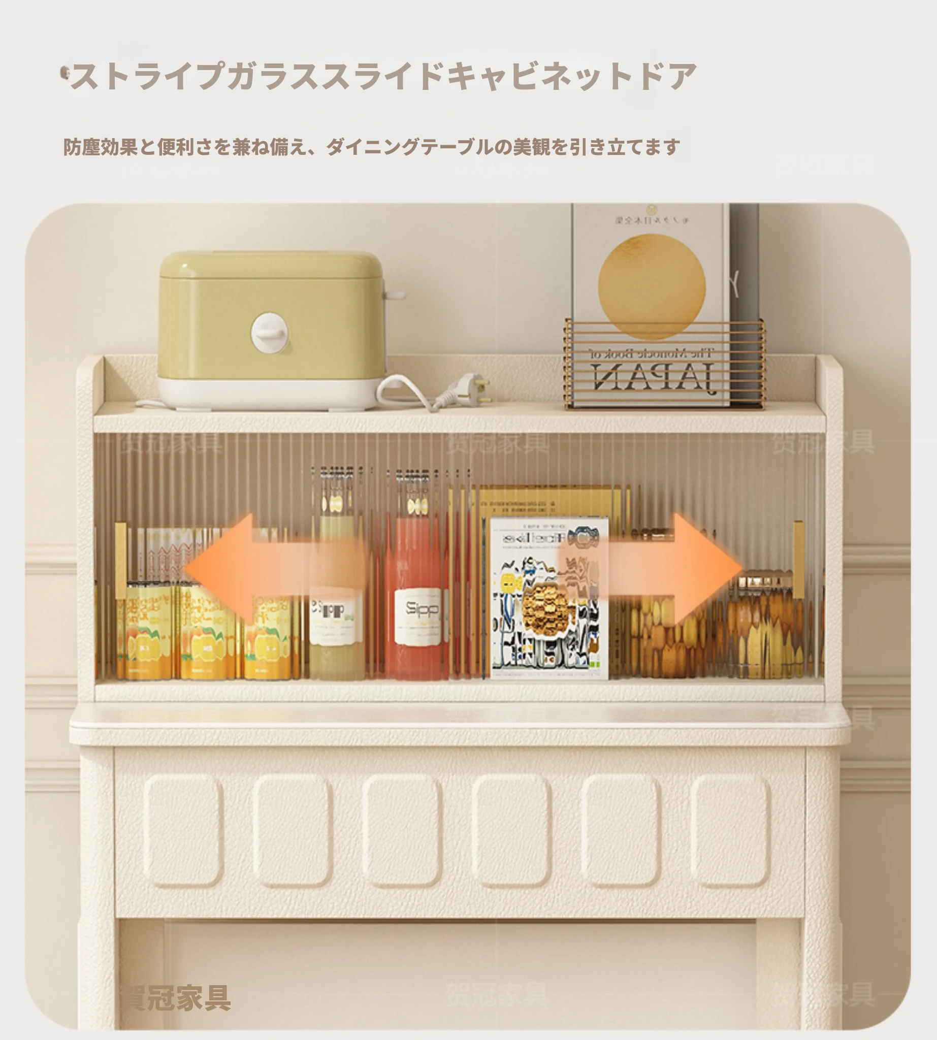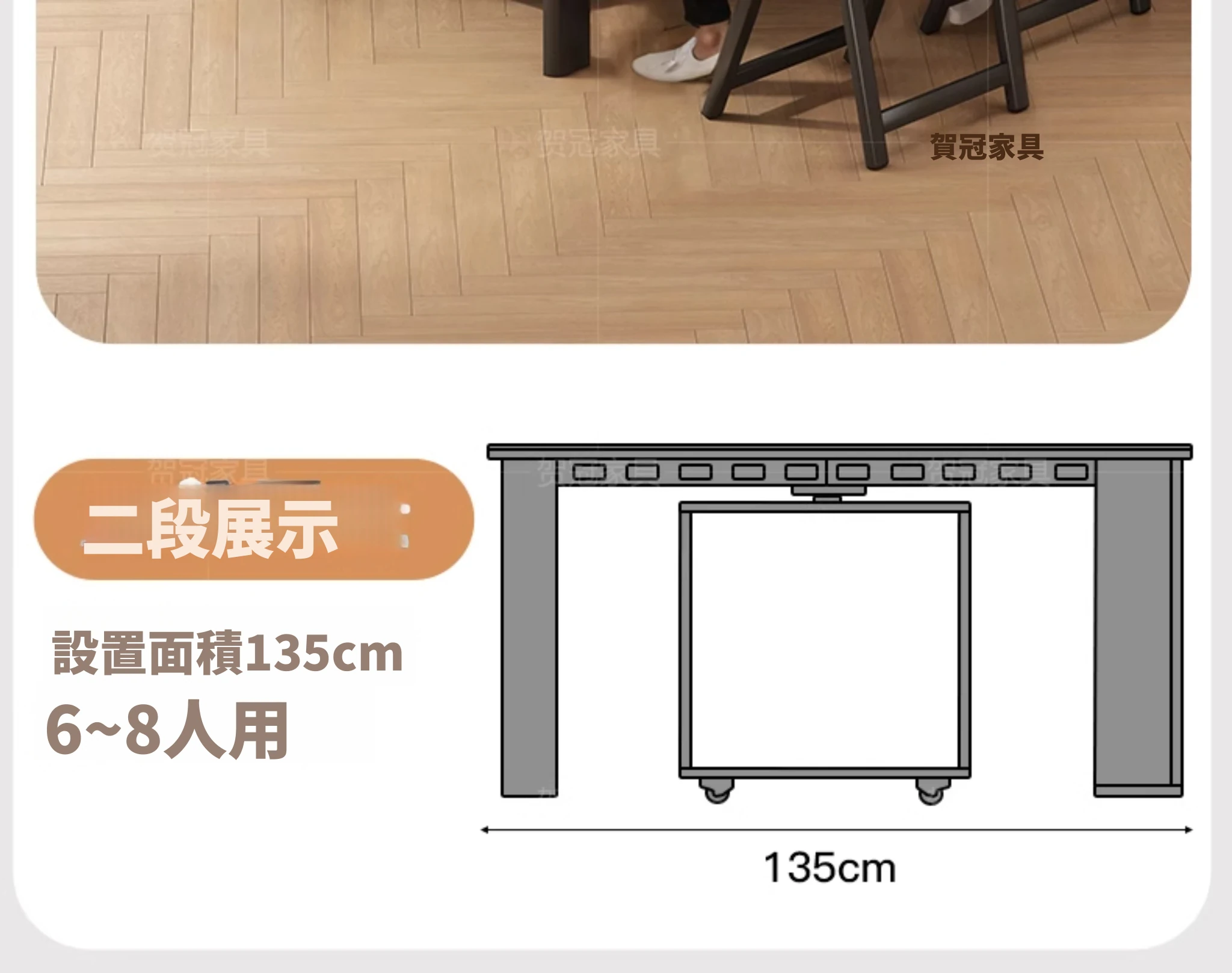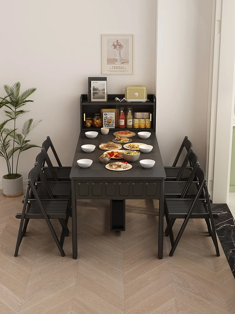 70*150cm+防塵キャビネット+折りたたみ椅子*6【レザー/隠せるダイニングチェア*2】