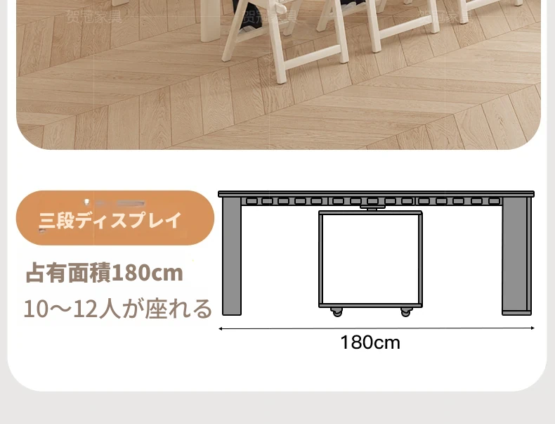 800+180cm+折りたたみ椅子*4【レザー/隠せるダイニングチェア*2】