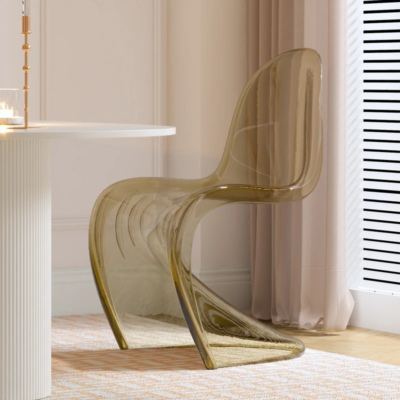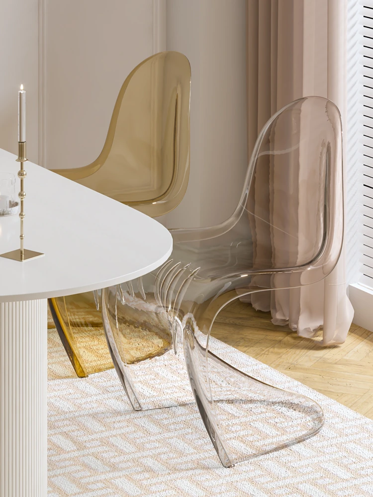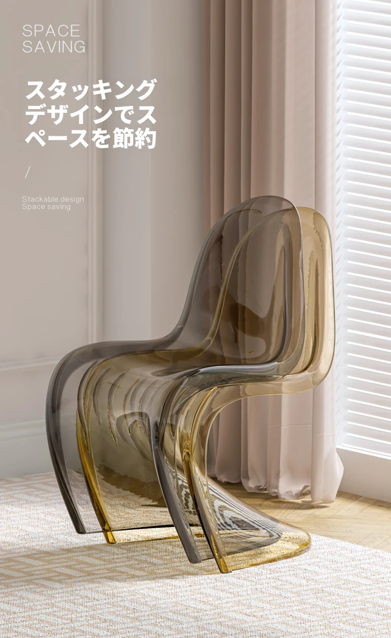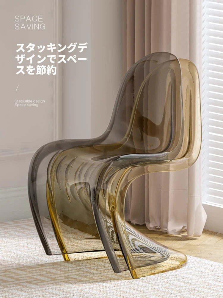 アクリル透明パントンチェア|北欧スタイルの家庭用スタッキングプラスチックダイニングチェア|服飾店の撮影やメイクアップに最適な背もたれ付きチェア【おしゃれで実用的】