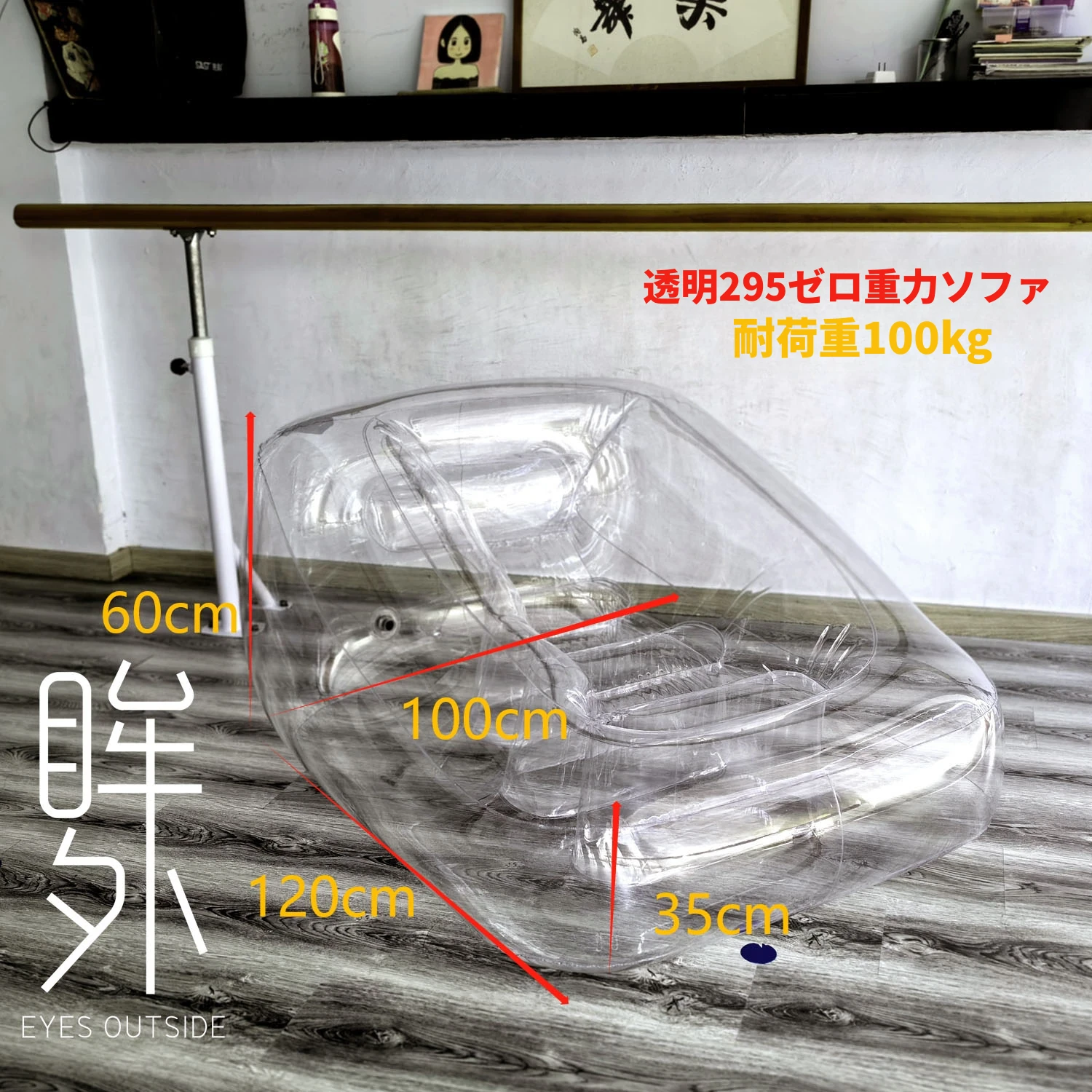 透明295超大型ソファ、電動ポンプ付き 120*100*35cm