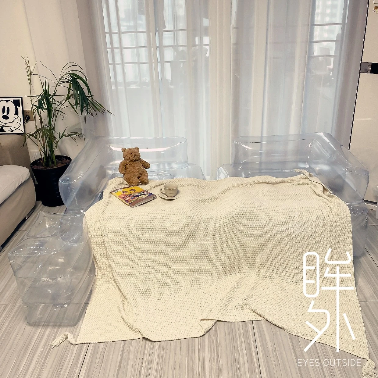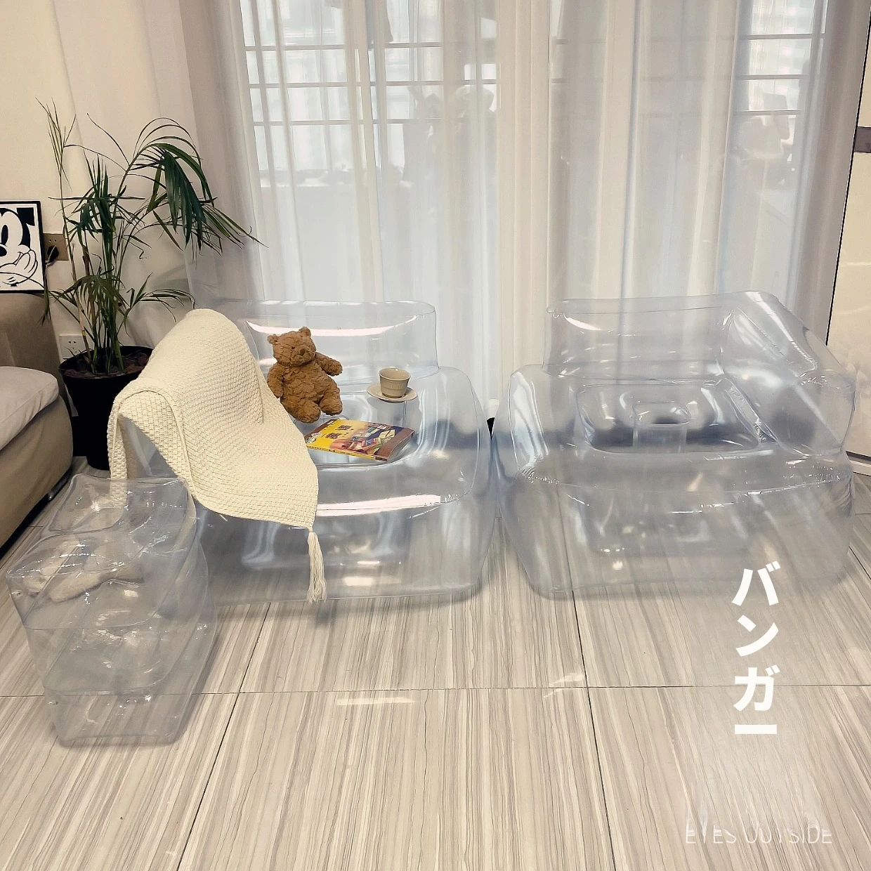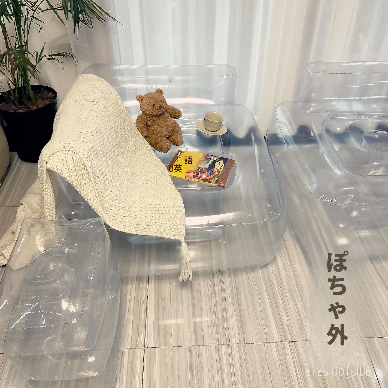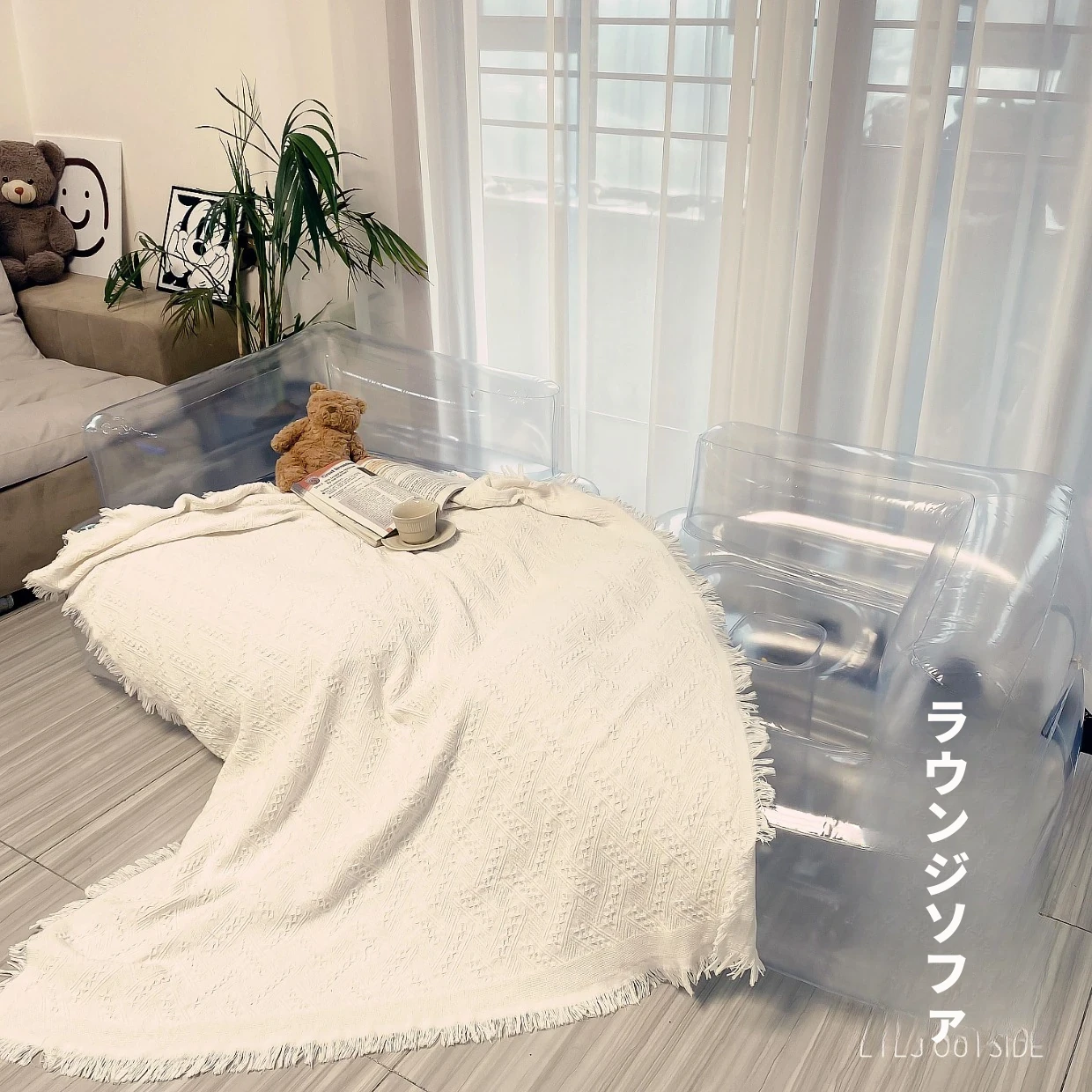 透明220スクエアソファ、足踏みポンプ付き 85*85*35 耐荷重90kg