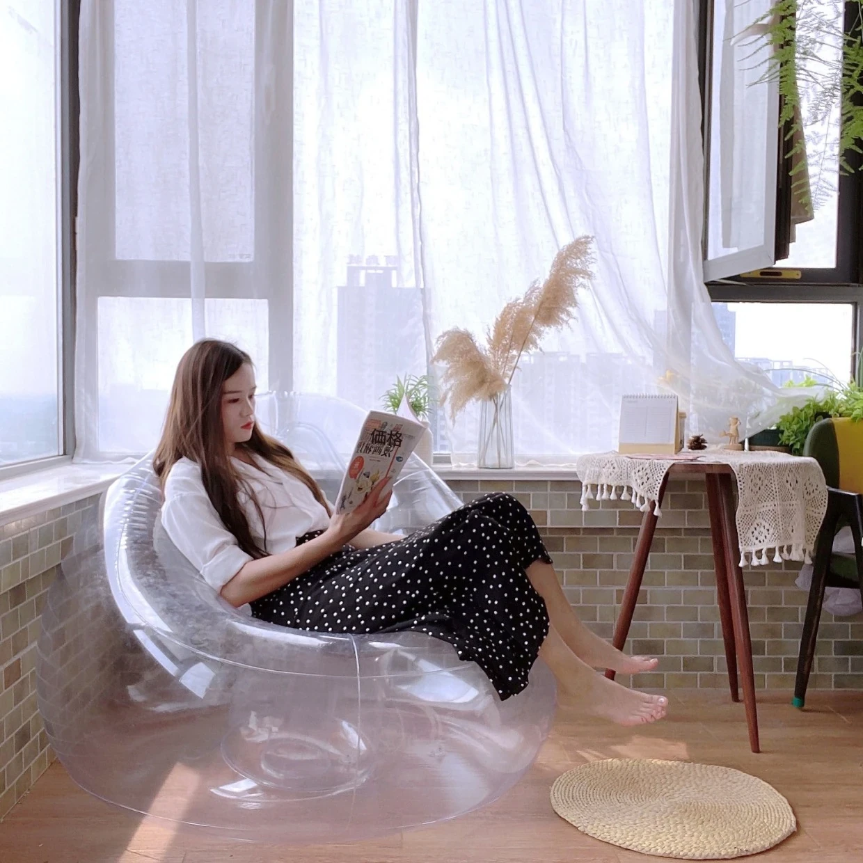 人気のキャンプ・ピクニック用!透明なインフレータブルソファー・リクライニングチェア、1人用のクリエイティブなフォトプロップ。メーカー直販でお得!