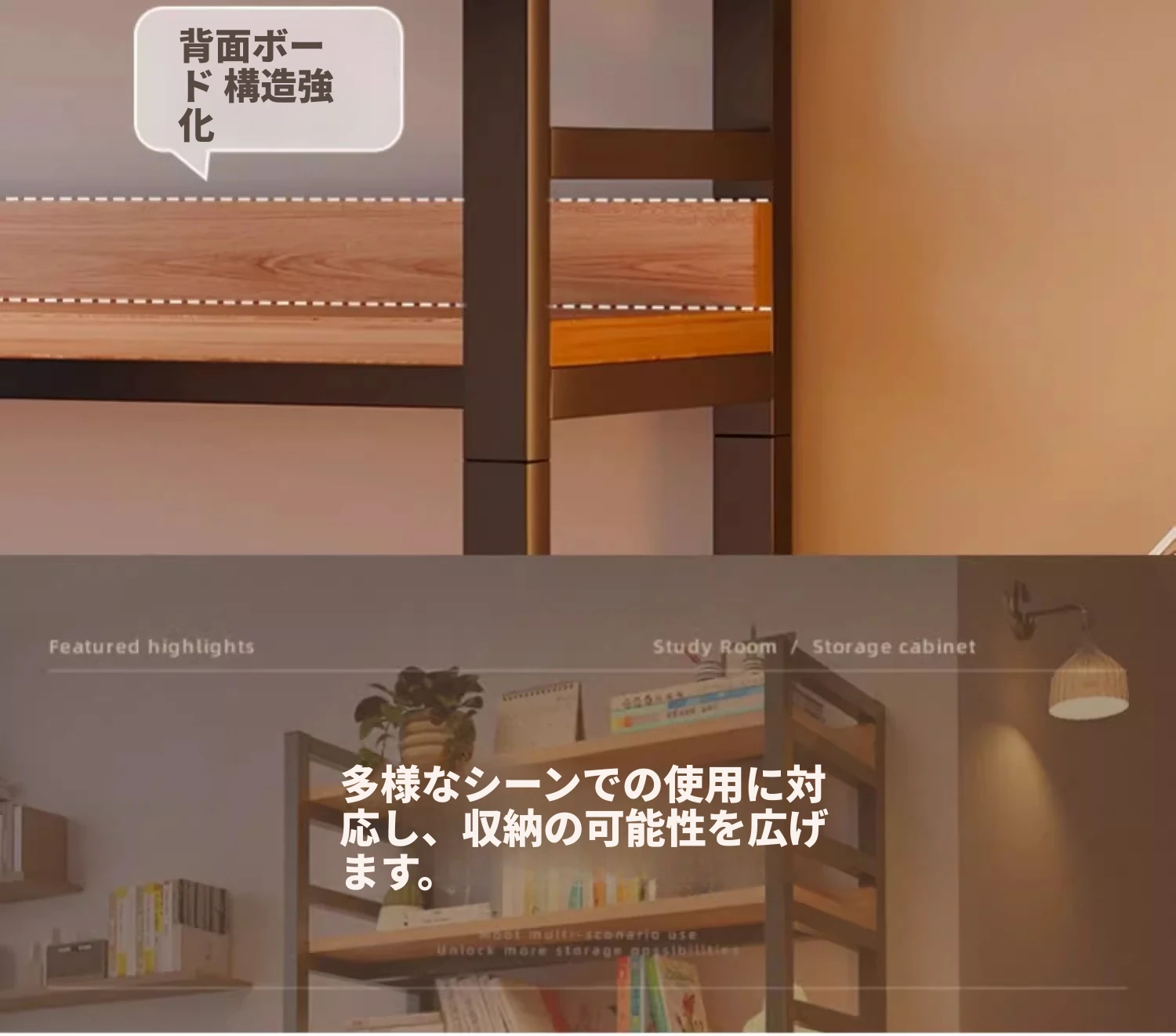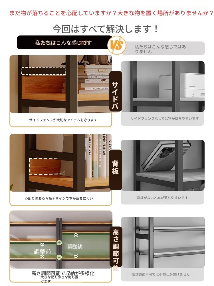 【落下防止 アップグレードサイドボード+背板】【階高調整可能 大きな物品も収納可】