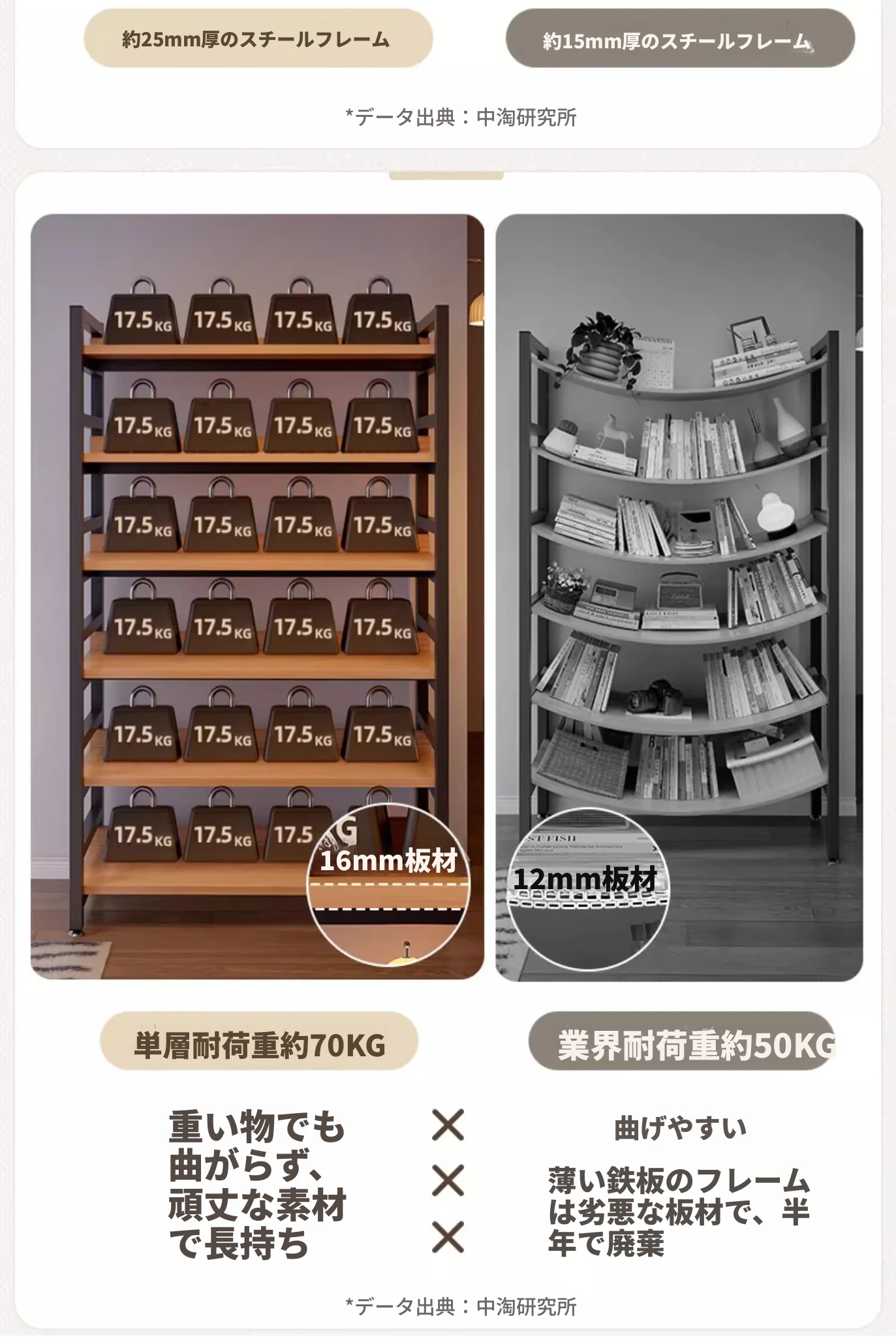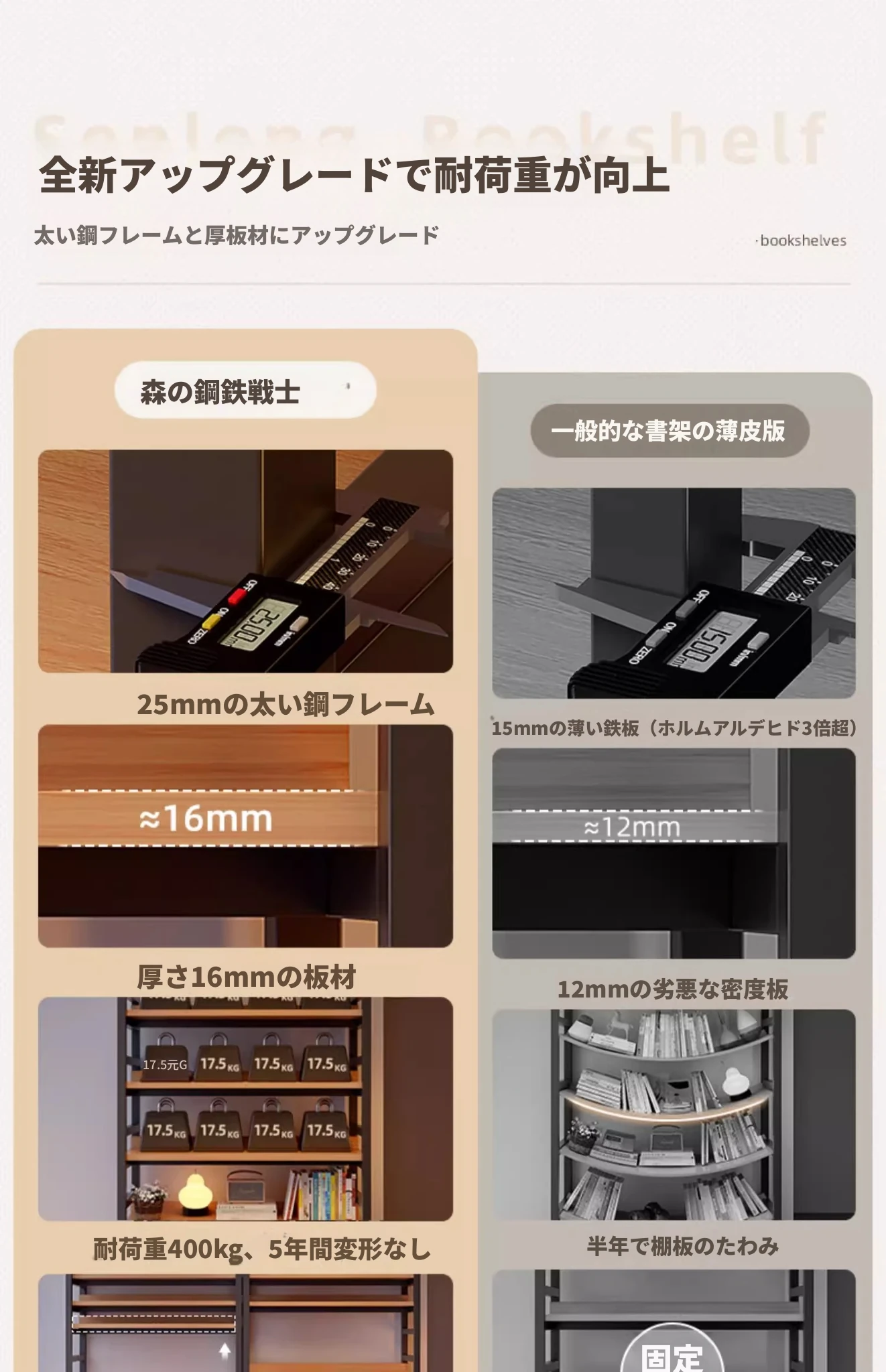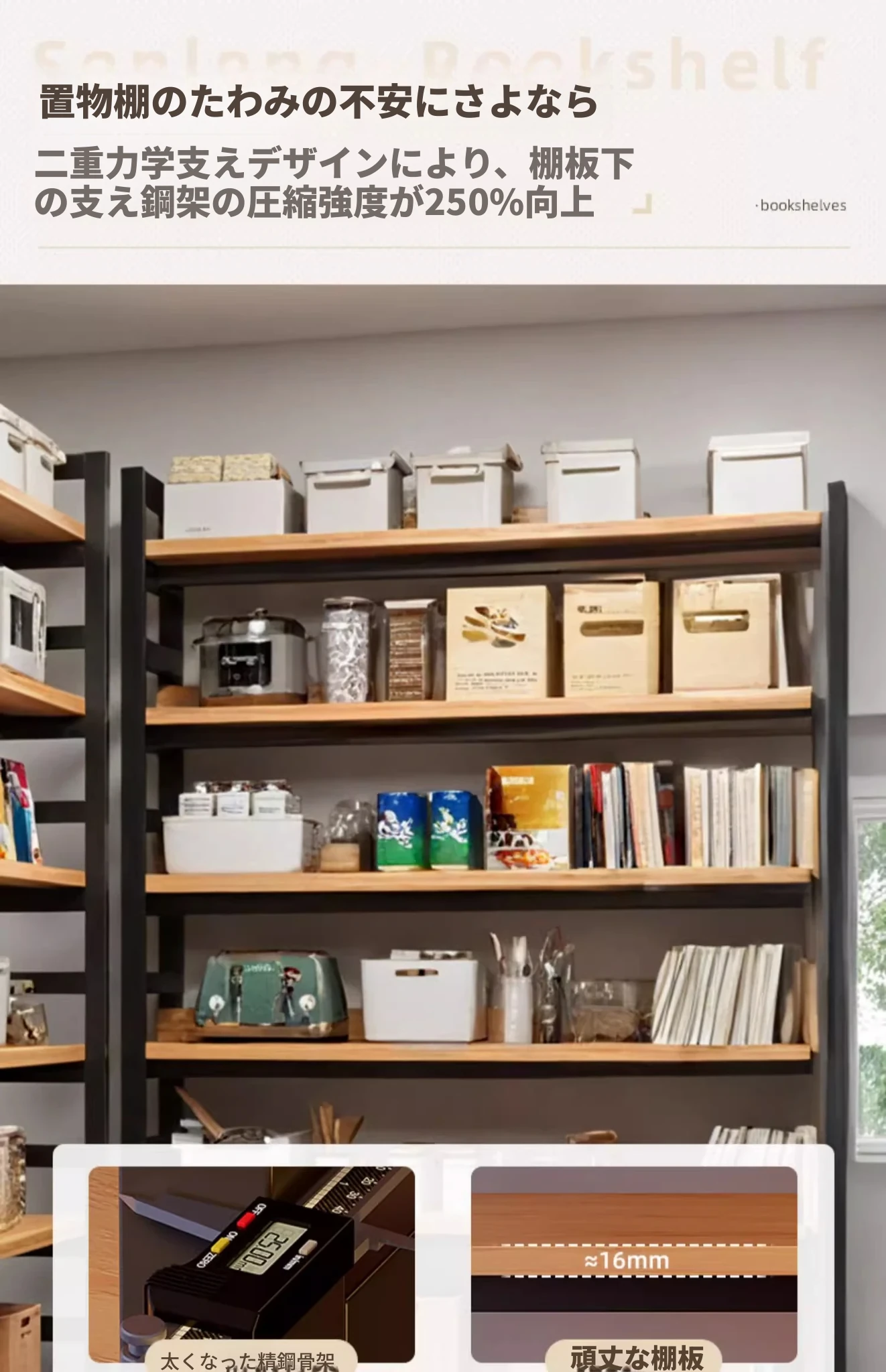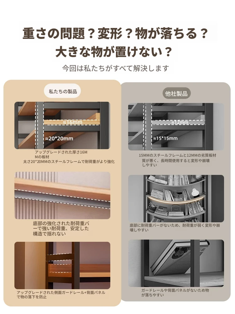 【全新重磅アップグレード16MM板材+底部太い横棒】【単段耐荷重40kg】
