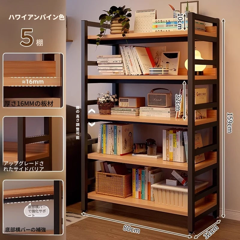 【送料無料】ハワイアンパインの五段【長さ80*幅32*高さ159】太い20管 階高調整可能