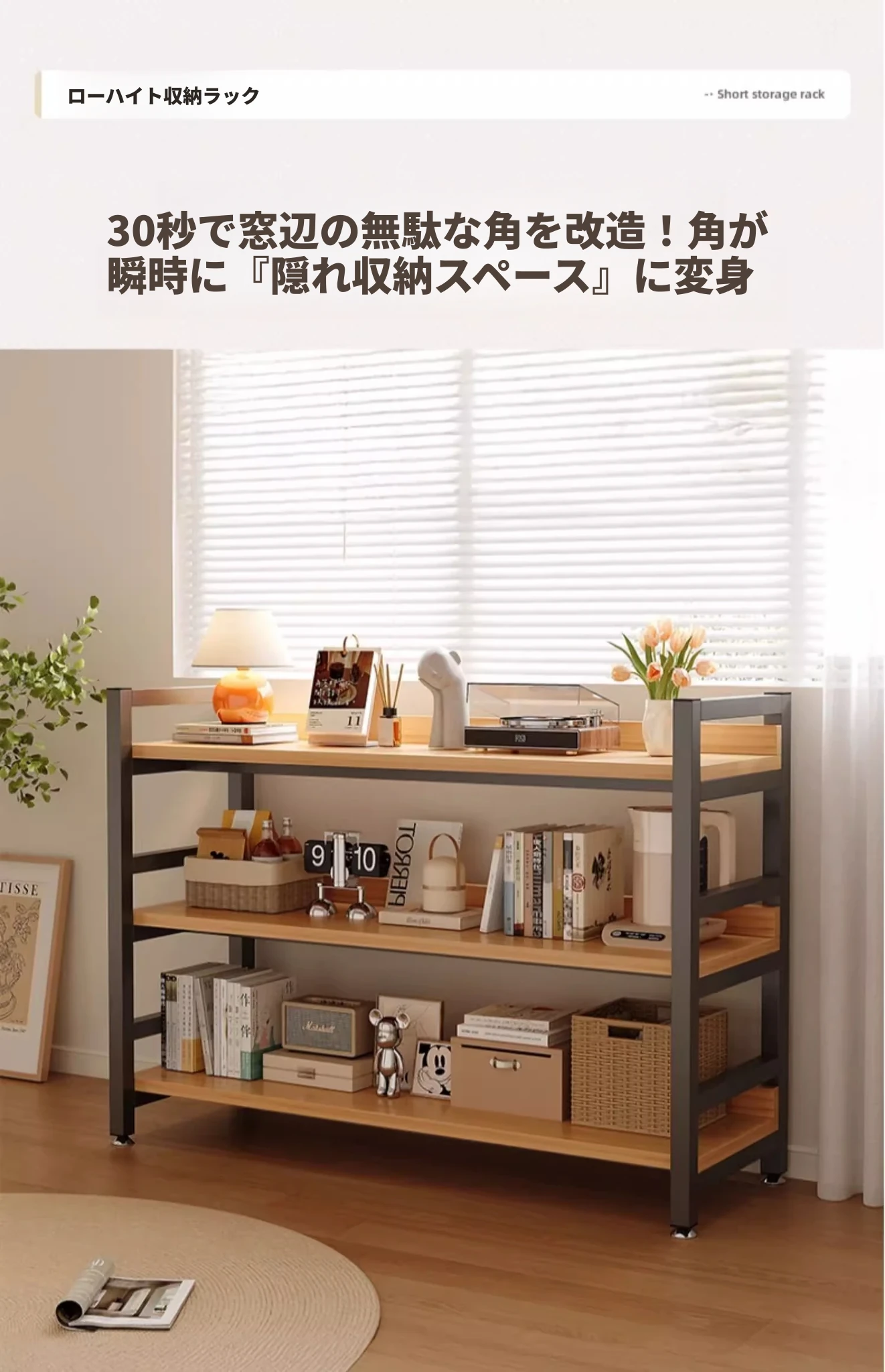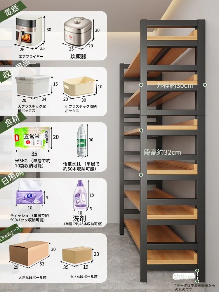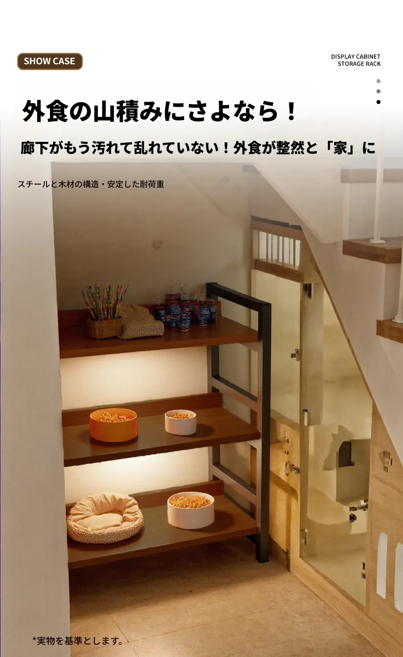 階段下用の多段収納ラック|狭いスペースを有効活用!家庭用の隙間収納に最適なディスプレイシェルフ|コンパクトでスタイリッシュなデザインで、お部屋をすっきり整頓!